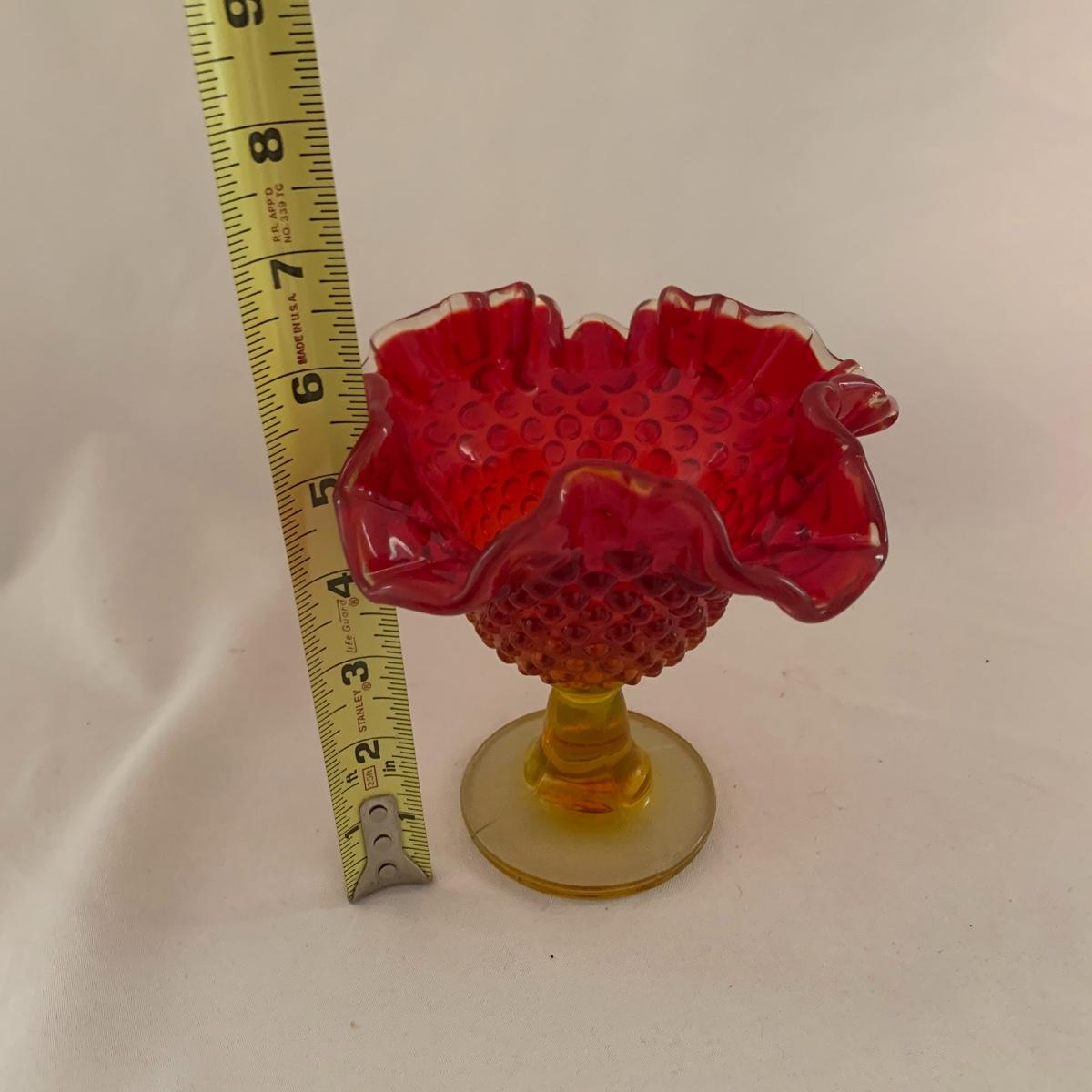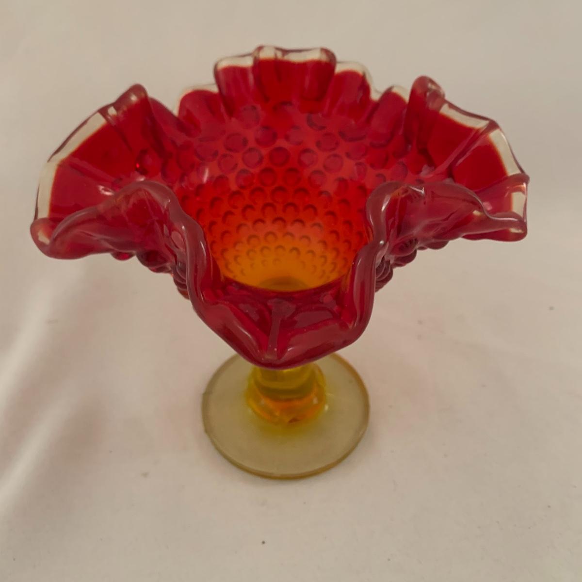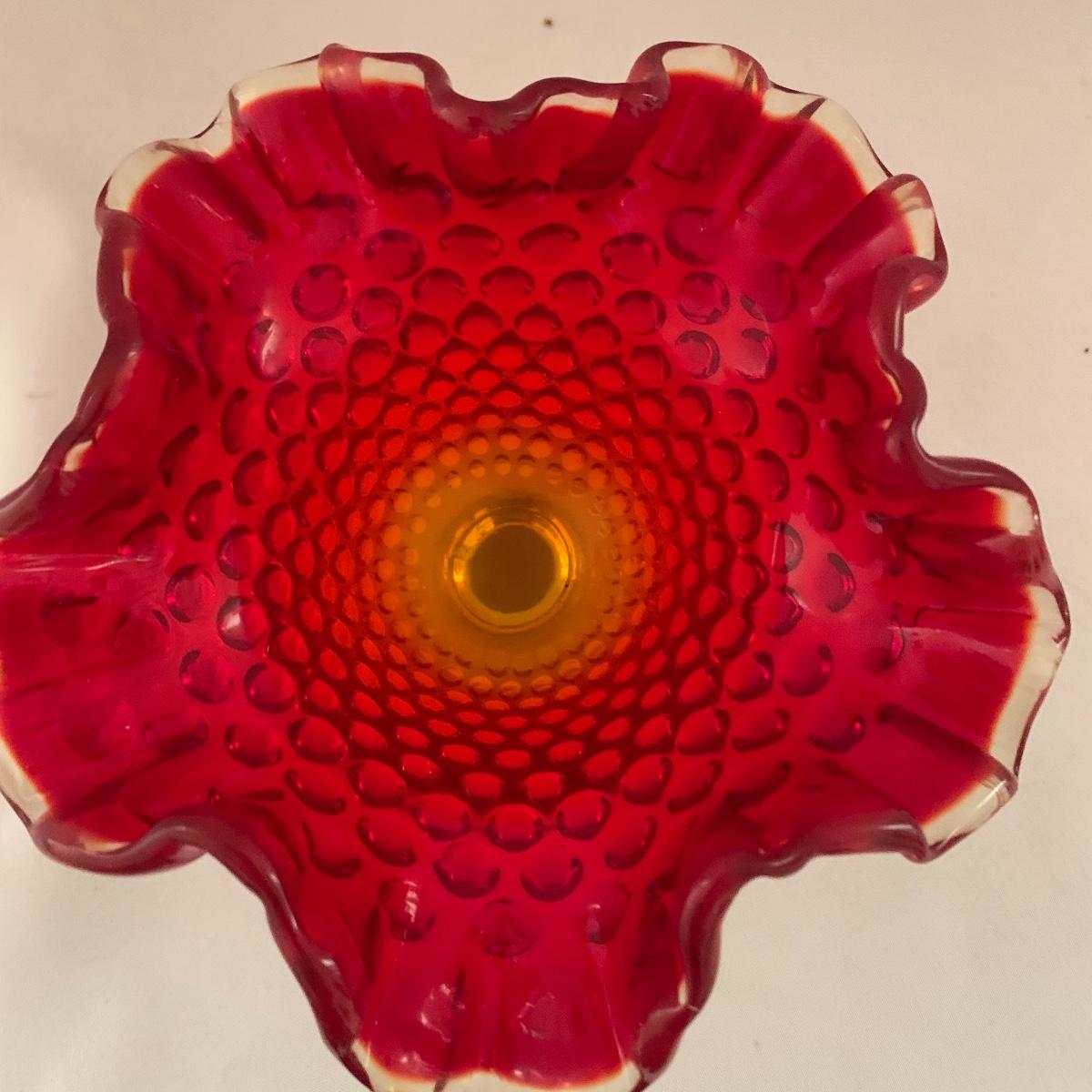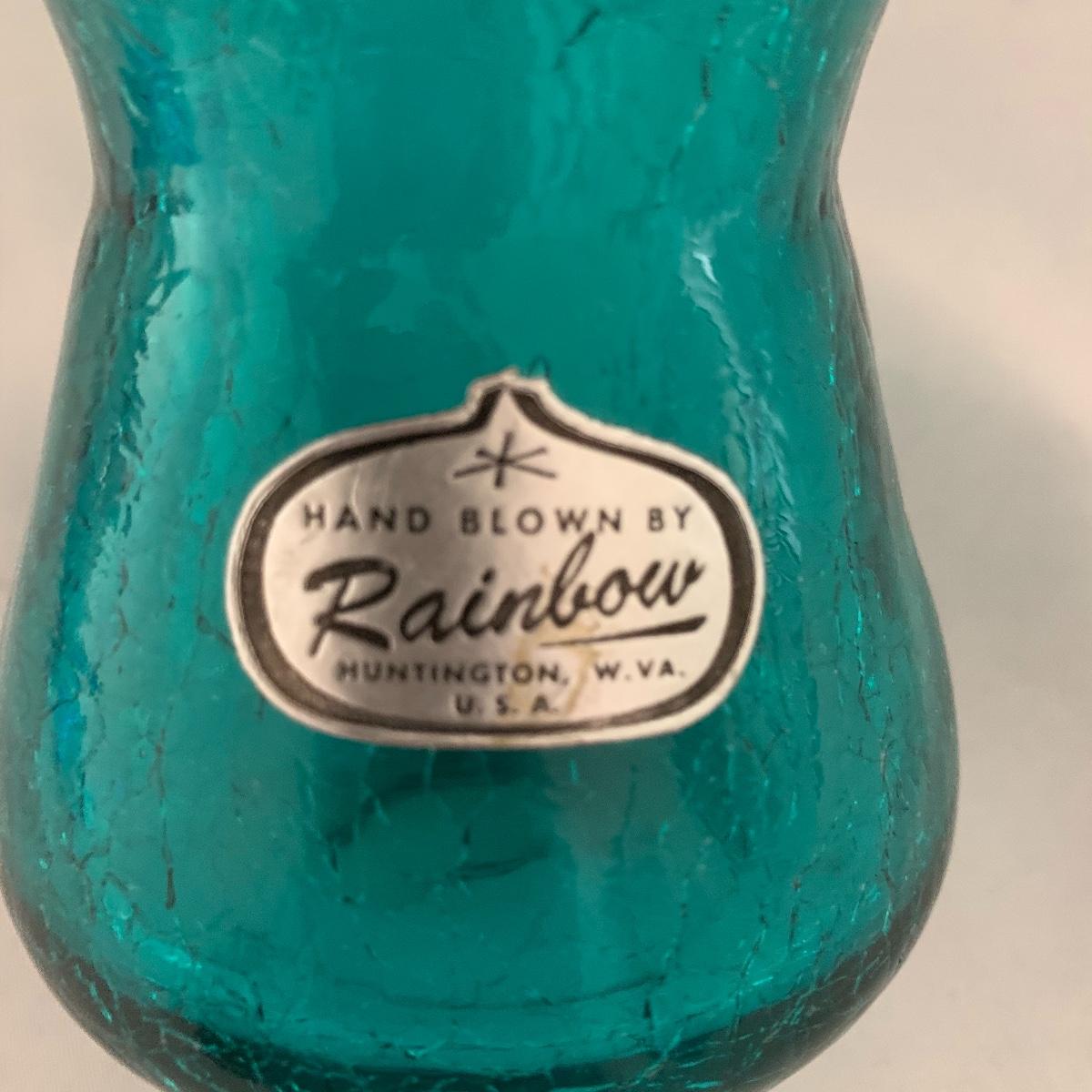 Bring a splash of color to your home with this group of beautiful glass pieces. This lot includes two candy dishes, one is clear with white trim, and the other is a gorgeous deep red. There are also three bowls, two blue and one pretty pink. Next is a turquoise vase hand made by Rainbow of West Virginia. Last are two adorable little glass birds that are both signed. The red one says Ron Ray 1993 and the blue is signed Leonard 1996. See pics for sizes. All theses pieces are in great condition. Shipping available