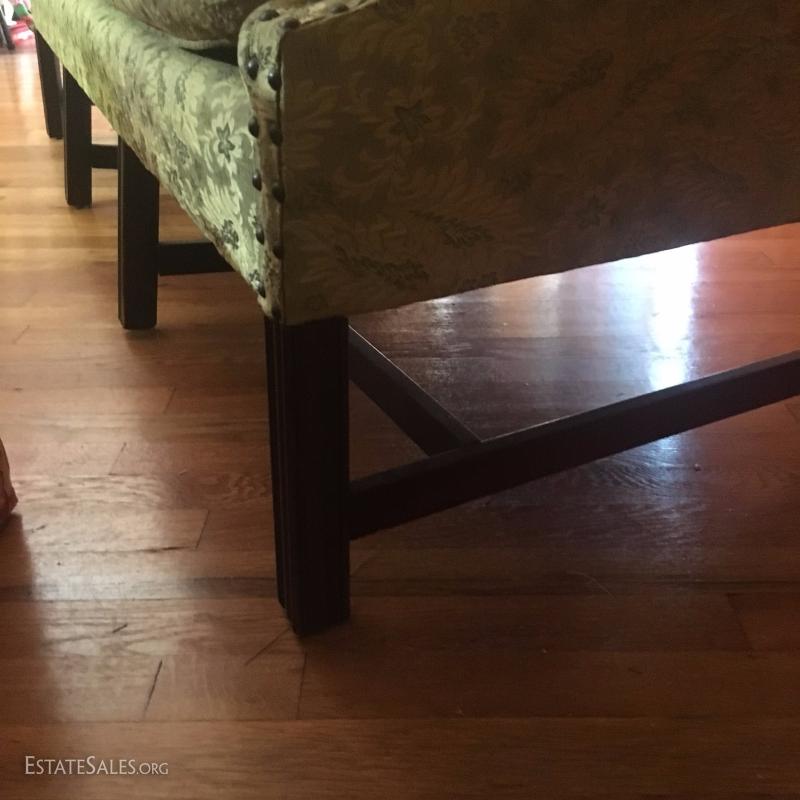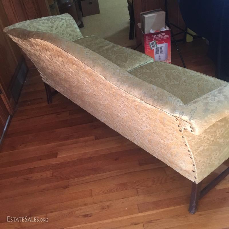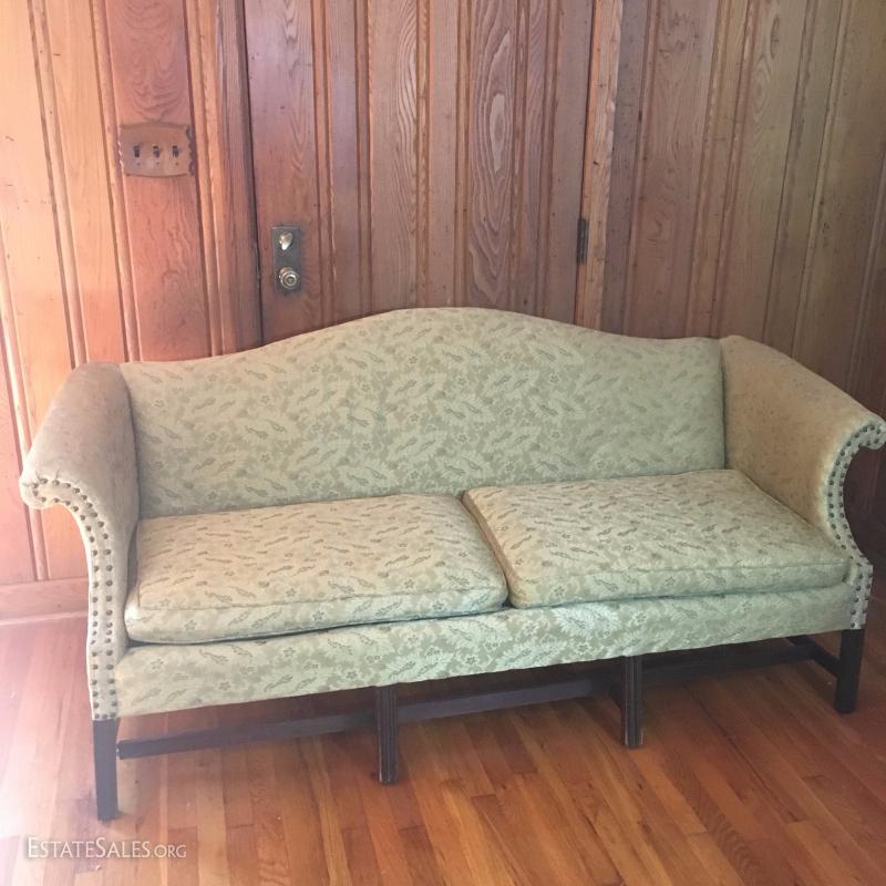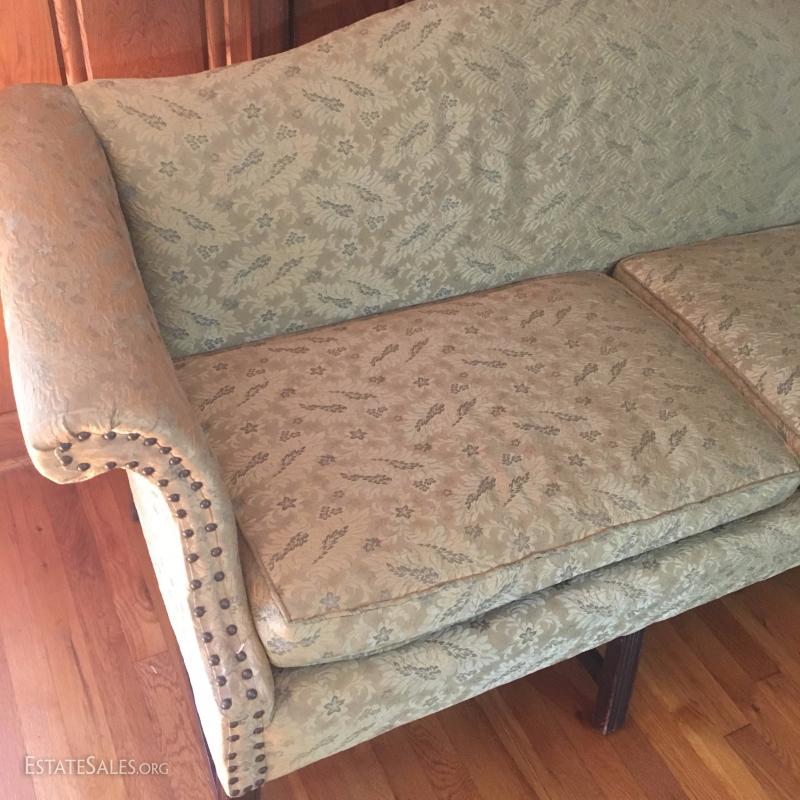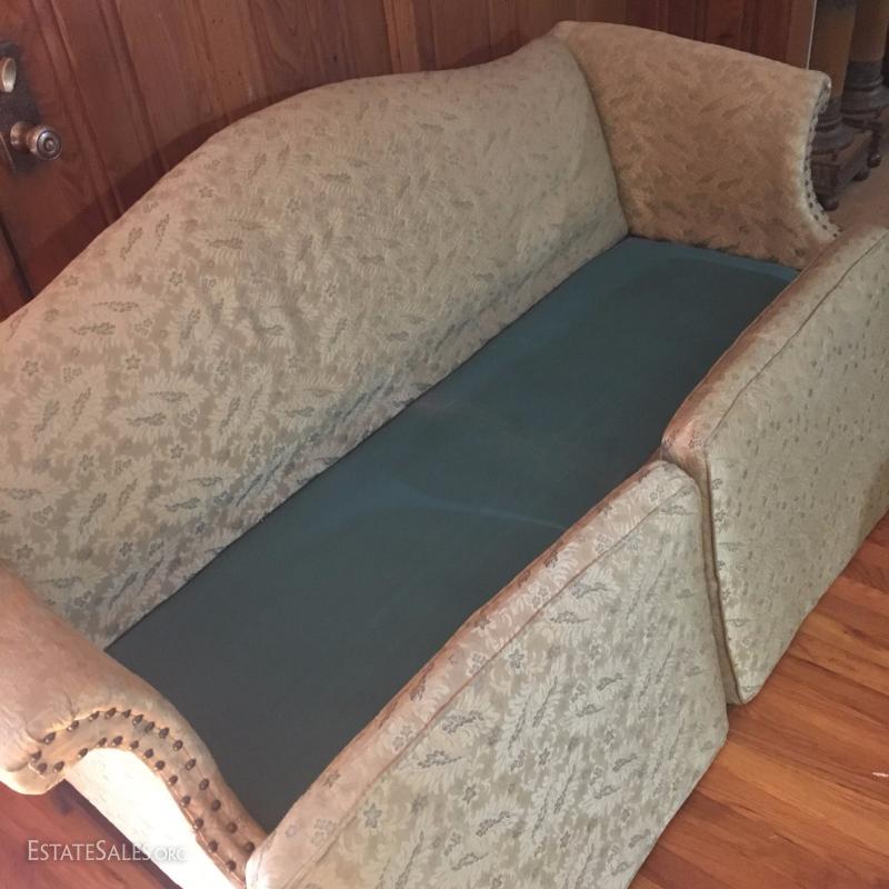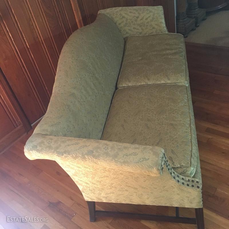 Camelback Sofa in citrin greenish yellow color. Color may not covey in photos! 78"l x 32"w x 34"h. May need slight repair to base to make sturdier.