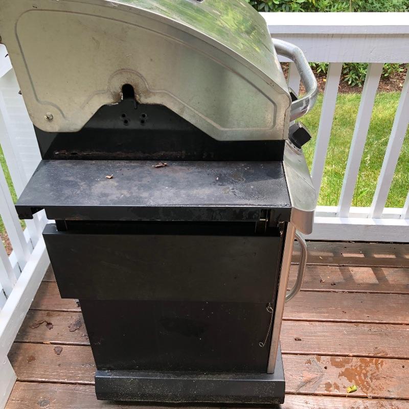 Have you been in search for a modestly sized, shiny grill, then look no further! This grill comes with a fabric covering to prevent from weathering and rust, and it comes with some tongs as well. It has seen some wear and tear, but if you know your way around a grill then you shouldn’t have too much trouble! The grill measures 31x25x45 inches. Local pickup only.