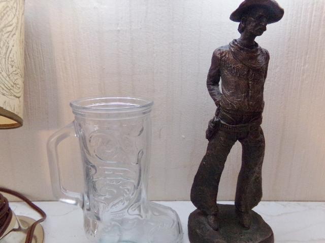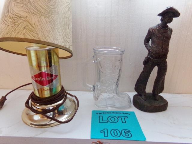LOT 106  MICHAEL GARMAN COWBOY STATUE & BEER CAN LAMP