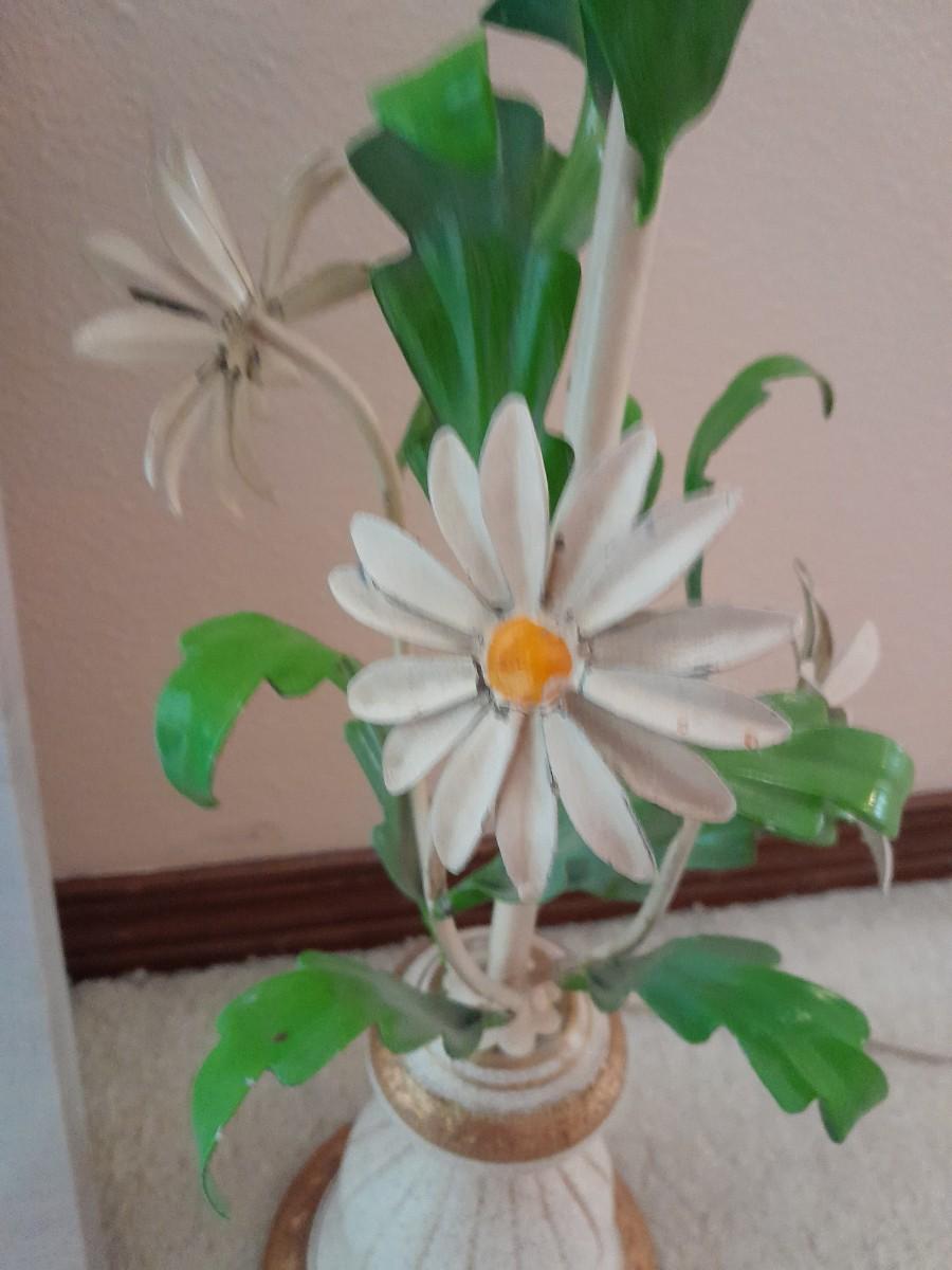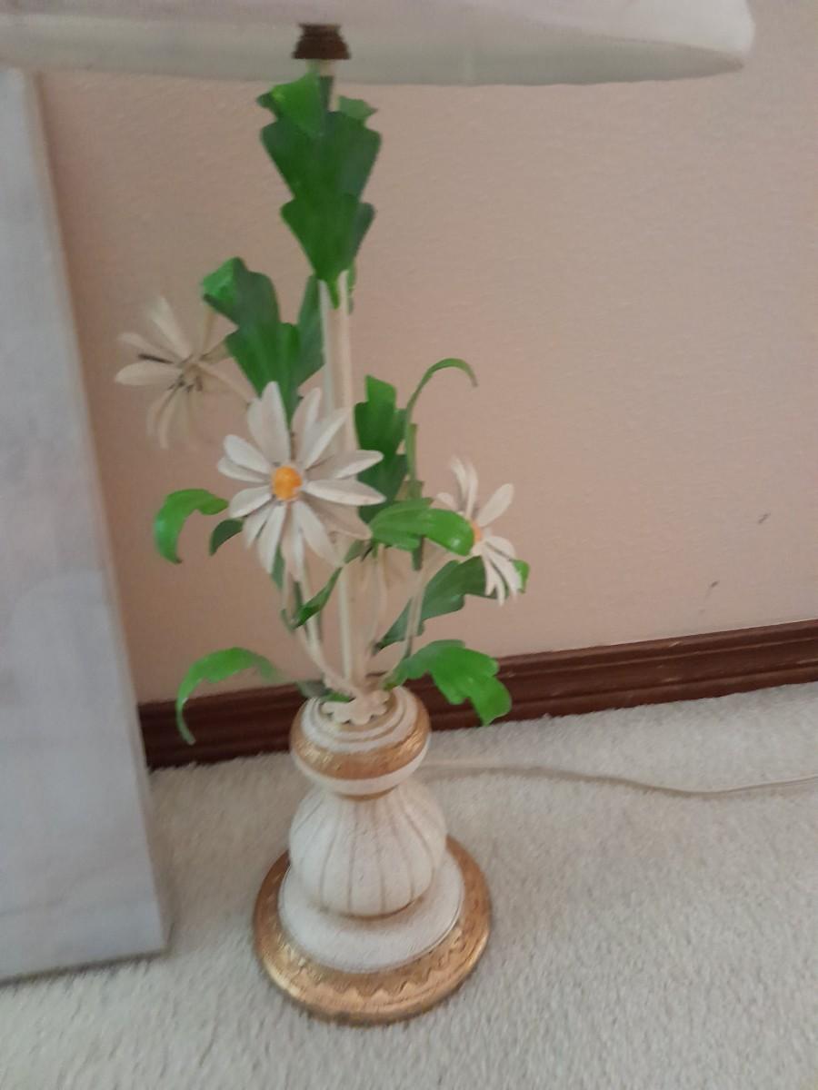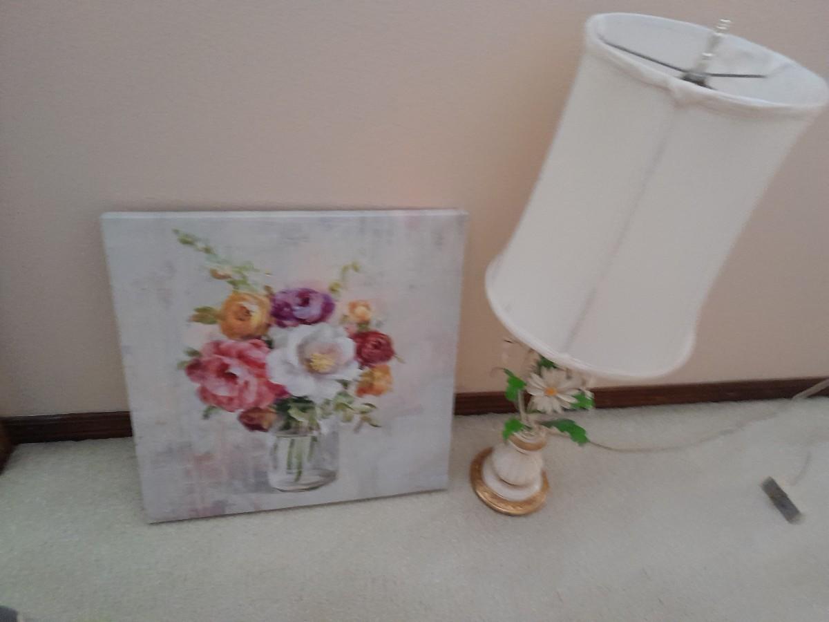 28" DAISY FLORAL ART LAMP (damaged shade) AND CANVAS BOUQUET ART