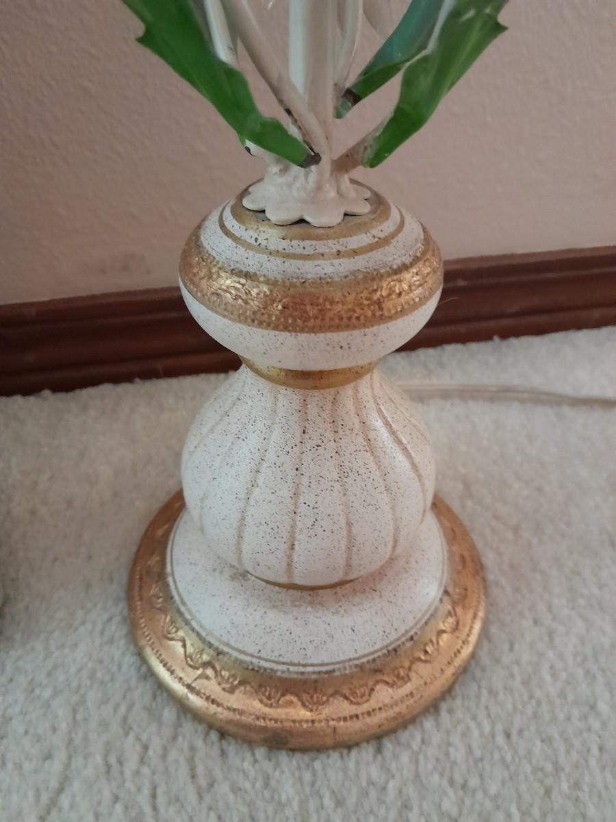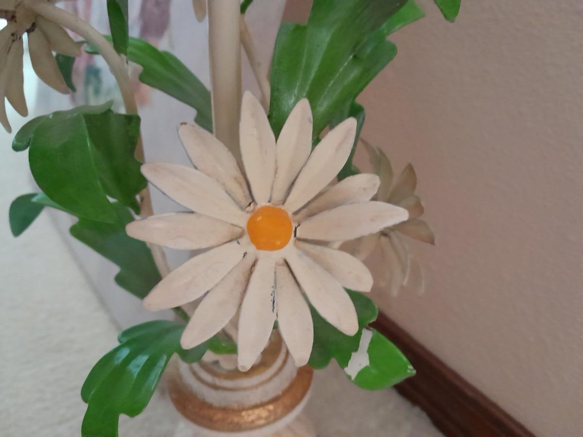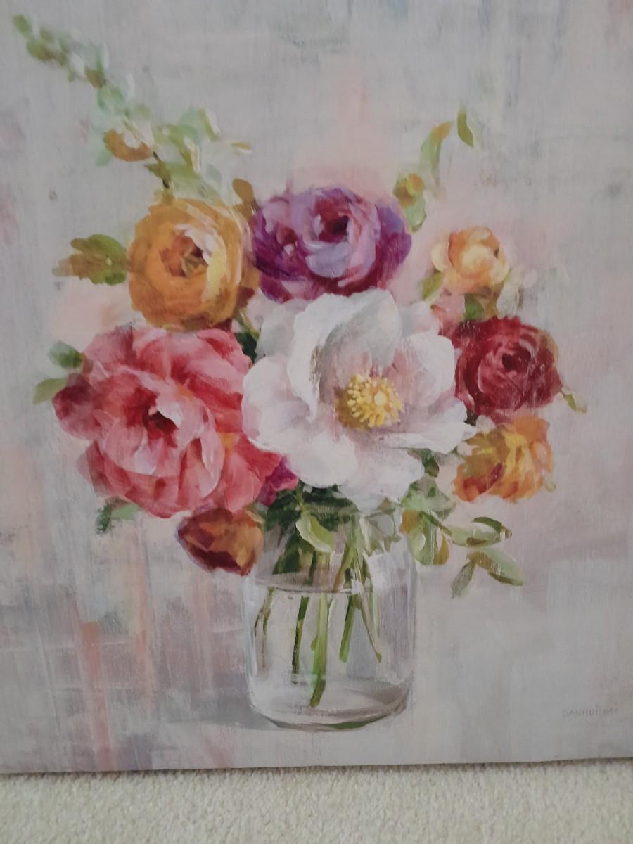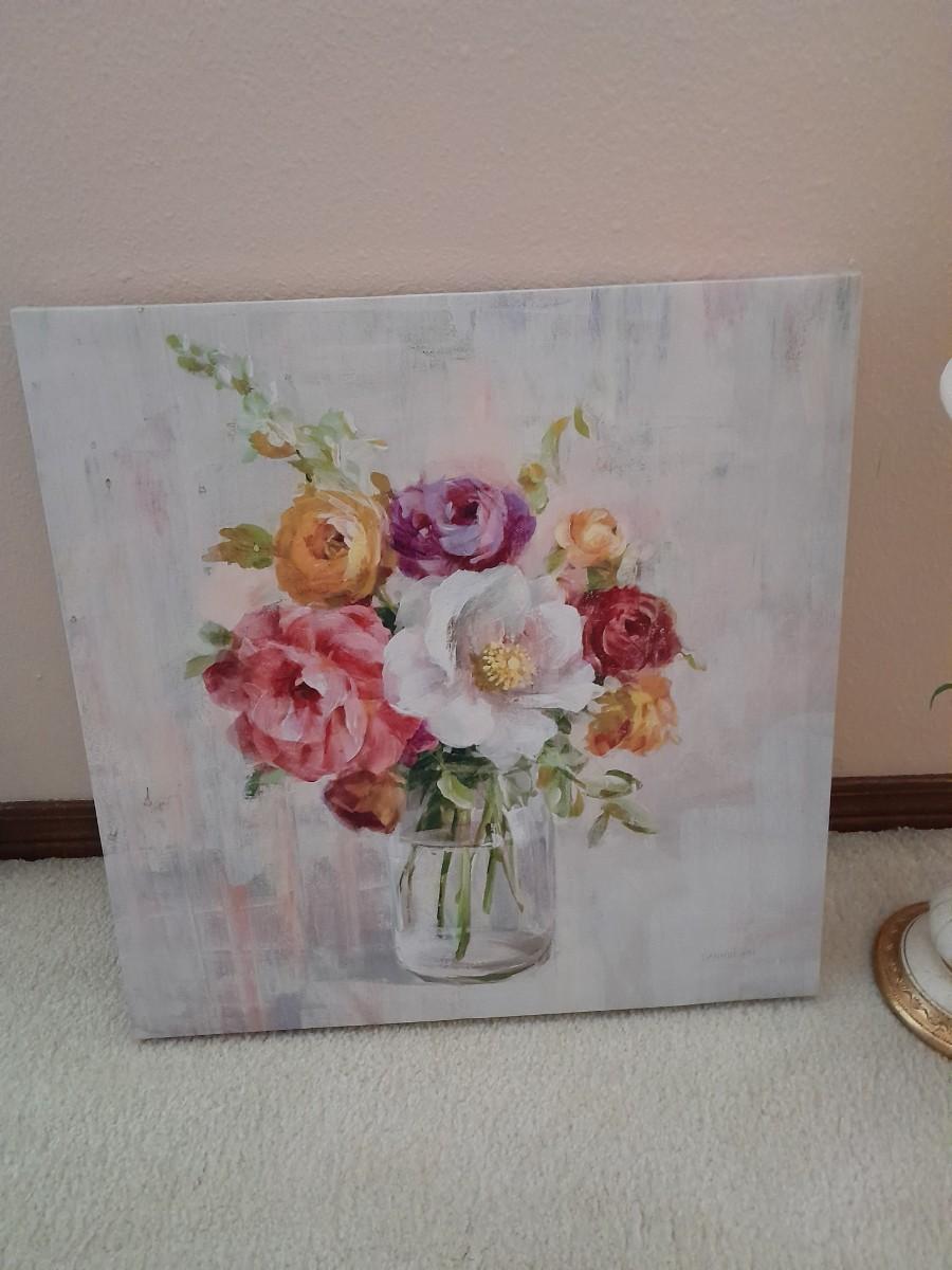 28" DAISY FLORAL ART LAMP (damaged shade) AND CANVAS BOUQUET ART