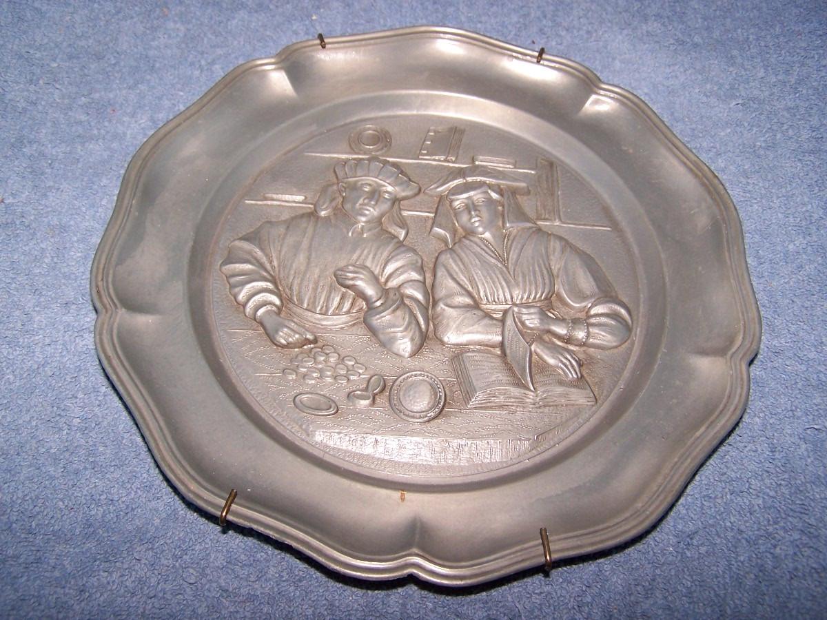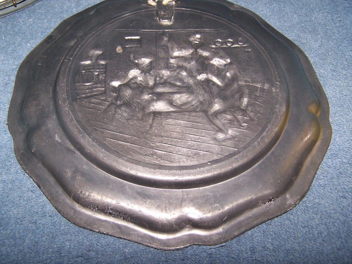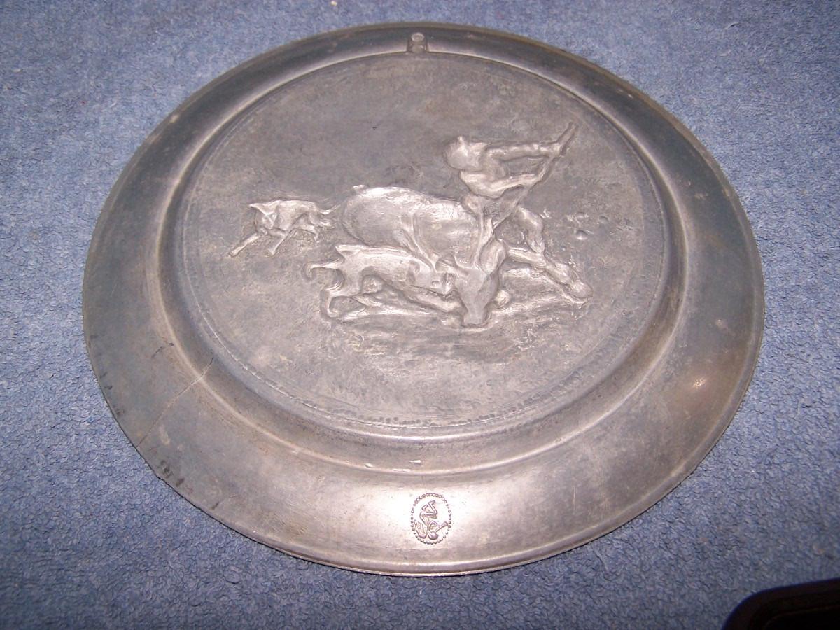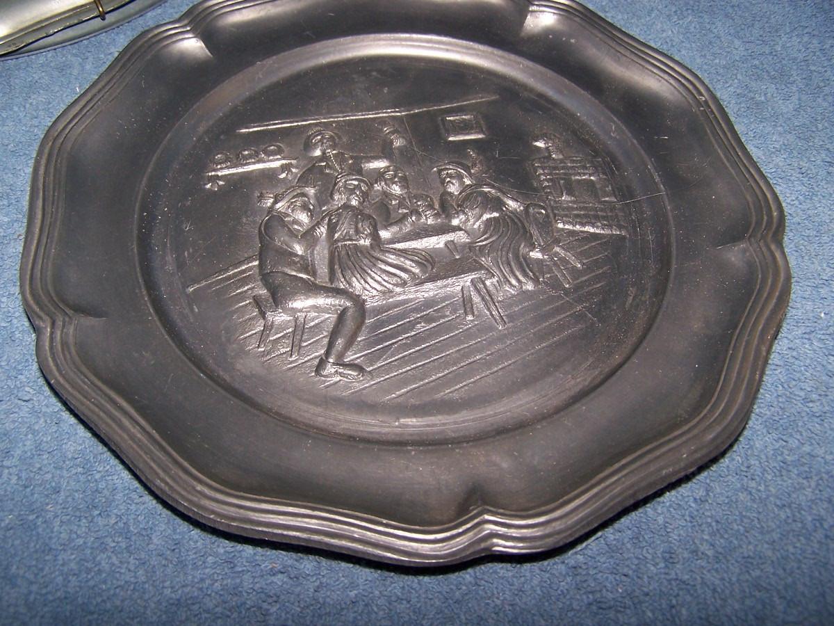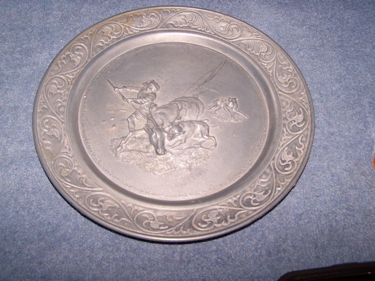 LOT 106 FANCY VINTAGE EMBOSSED PEWTER PLATES