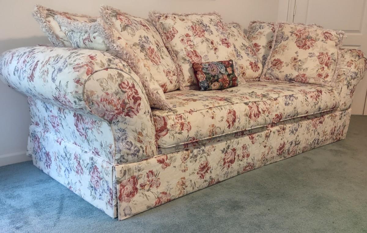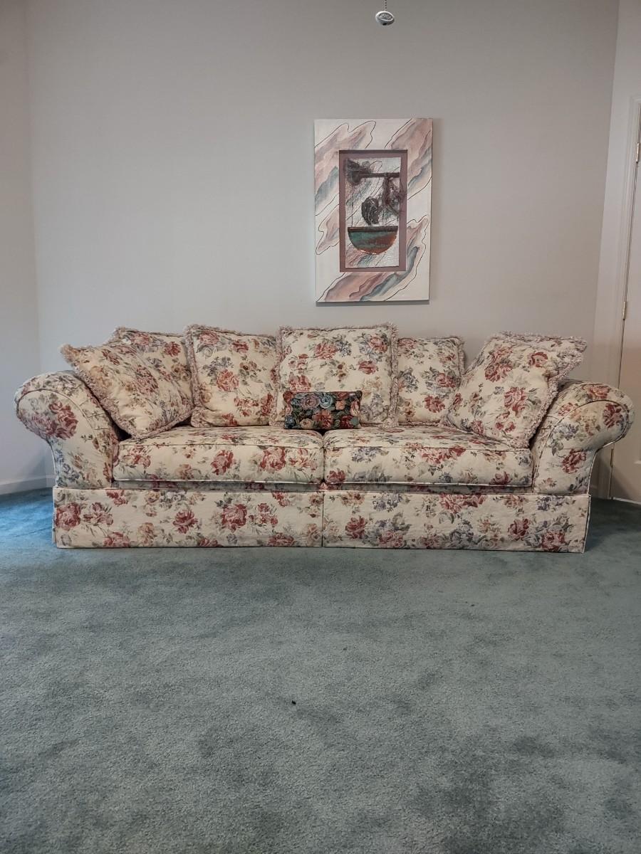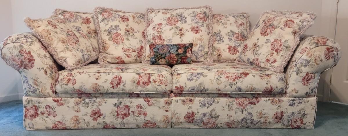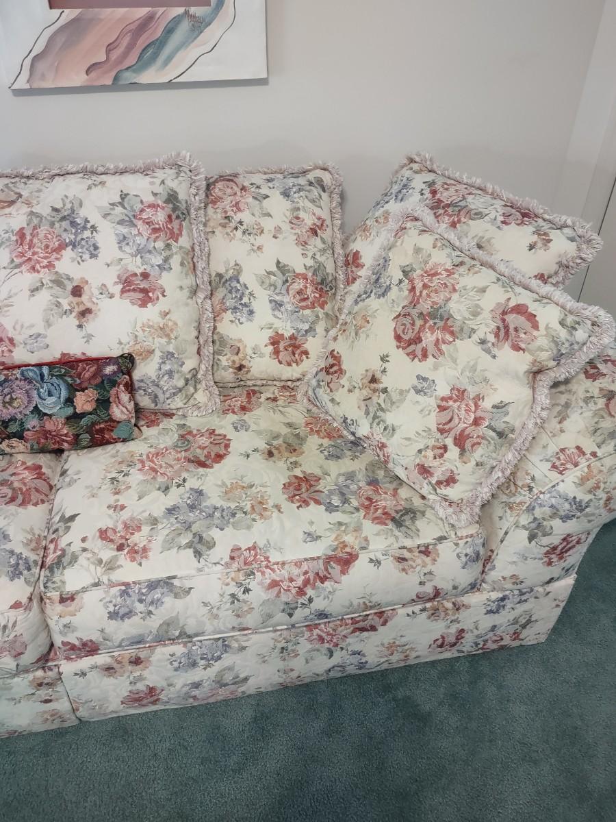 Floral Couch Very Clean & In Good Condition 98×39×28 Photo Not Included In This Lot. Please see all pictures as they are the best representation of the items. The pictures show condition, measurements if taken, and what is included in the lot. Due to the large amount that we photograph and the time frame, we are not always able to take measurements. All items unless noted, are pre-owned and have been used. If you purchased furniture, you must bring help. We do not allow one person to carry large furniture out on their own. Bring help, tools and a truck for the safety of our client’s homes, and your personal safety. Company policy. Thank you.