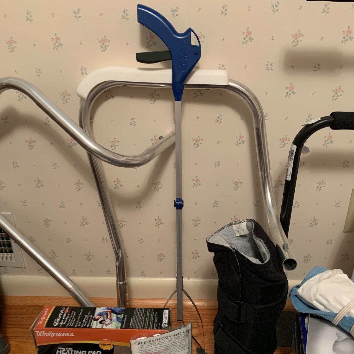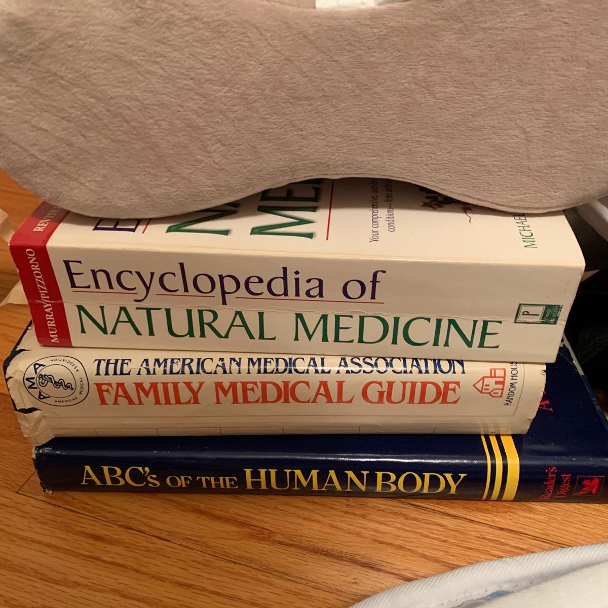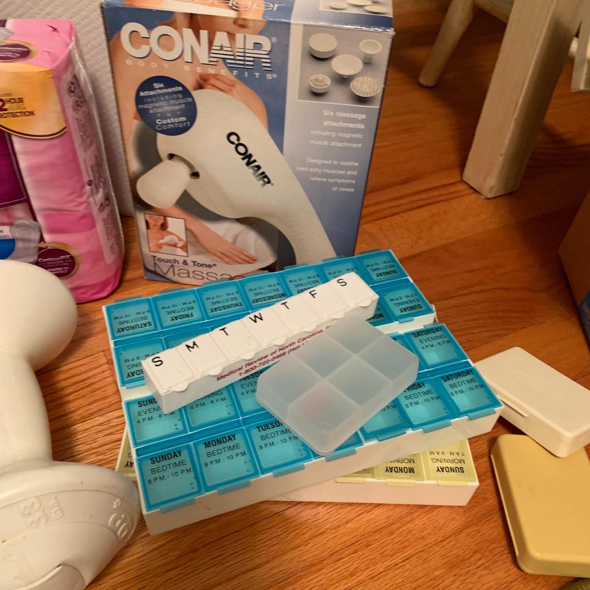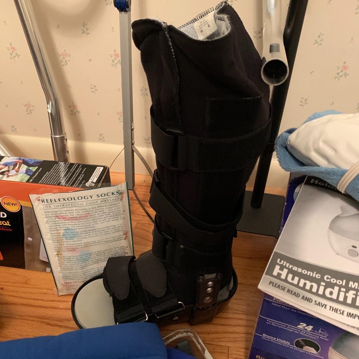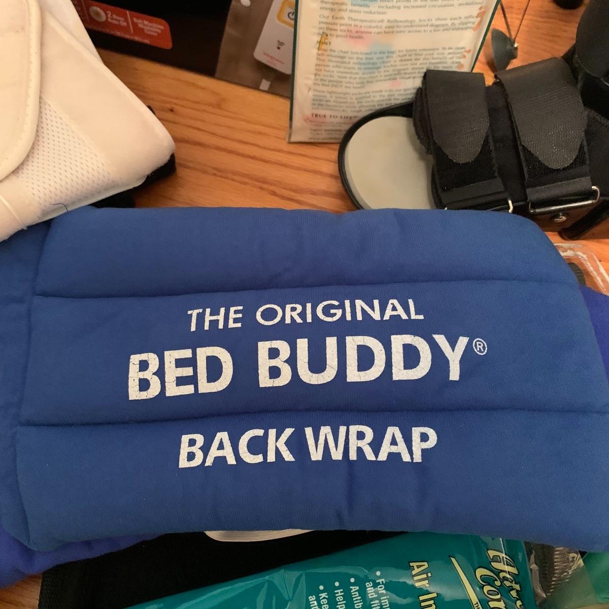 This is an extensive home health lot with lots to offer! Included are health books, a walker, weight belts, two walking canes, a new heating pad, several beaded back wraps, a leg brace, a new humidifacateur, a new consortium massager, a leg pillow, a set of 3.3 lb weights, and more. However the true star of this show is a Soloflex WBV vibrating exercise pad. This item is clean, and in good working condition! It even comes with a manual. See images. black cane and walker stand about 33 high, both are adjustable. Memory foam pillow is roughly 21” x 22” x 7.5”. Local pickup only.