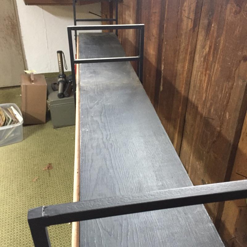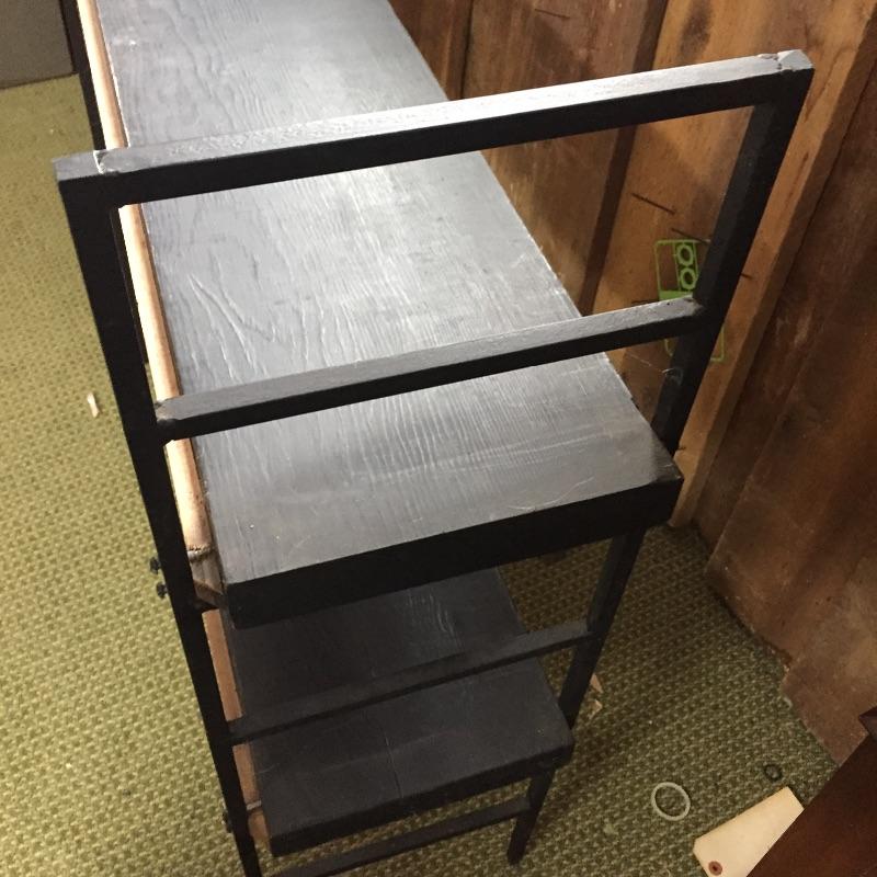 Pair of iron and wooden bookshelves. These are practical and gorgeous bookshelves. They are the same style but different sizes. Largest bookshelf measures 49.25” x 13” x 96”. Smaller bookshelf measures 35” x 10.5” x 68”. Other items pictured are not included. Large bookshelf is on top of tables in the photo. Shelves are blank painted wood with trim attached on side. Local Pickup Only and bring help as items are Heavy!