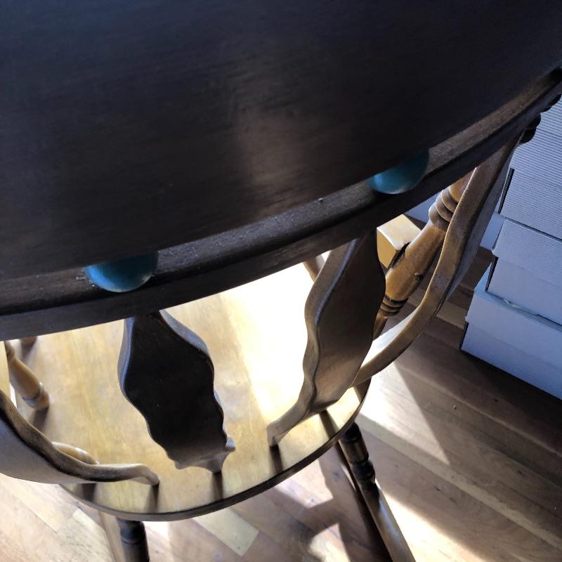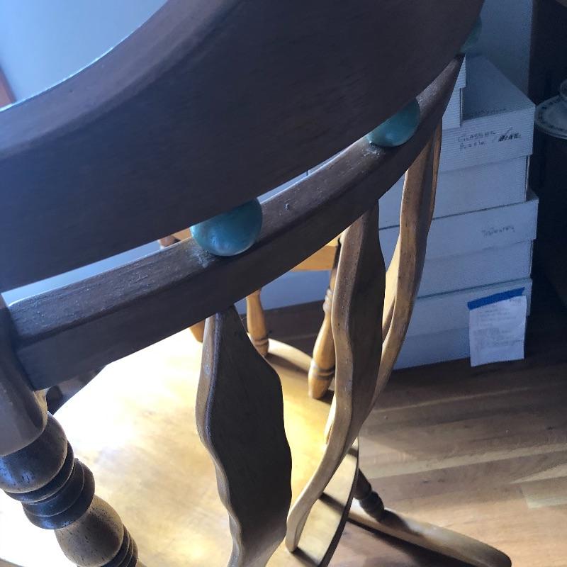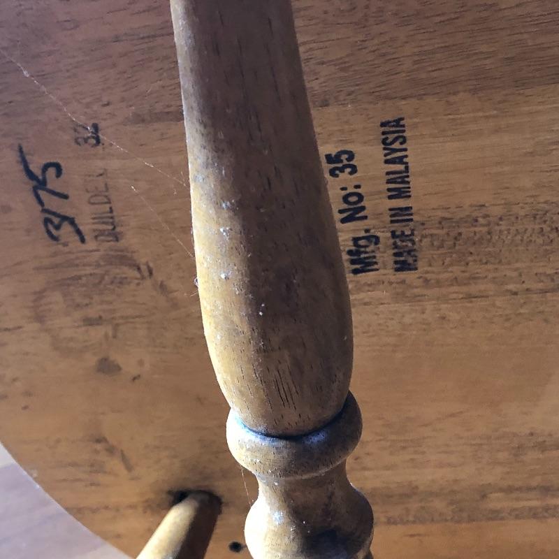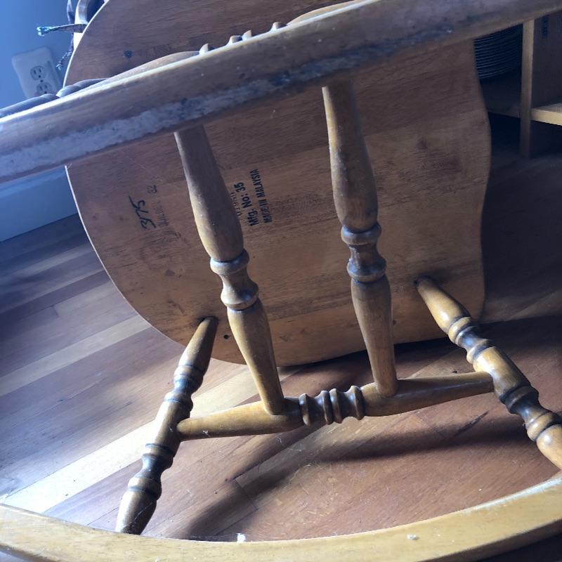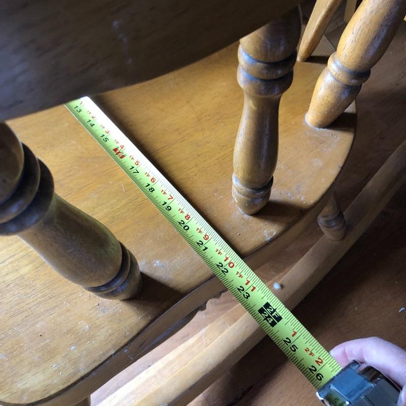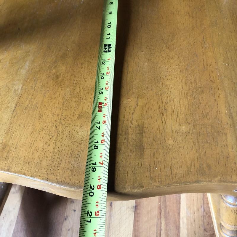 Rock the day away in this large, comfortable, wooden rocker! The seat measures 22” x 20” and the seat is 45” tall. Cushions are included. Local pick up only.