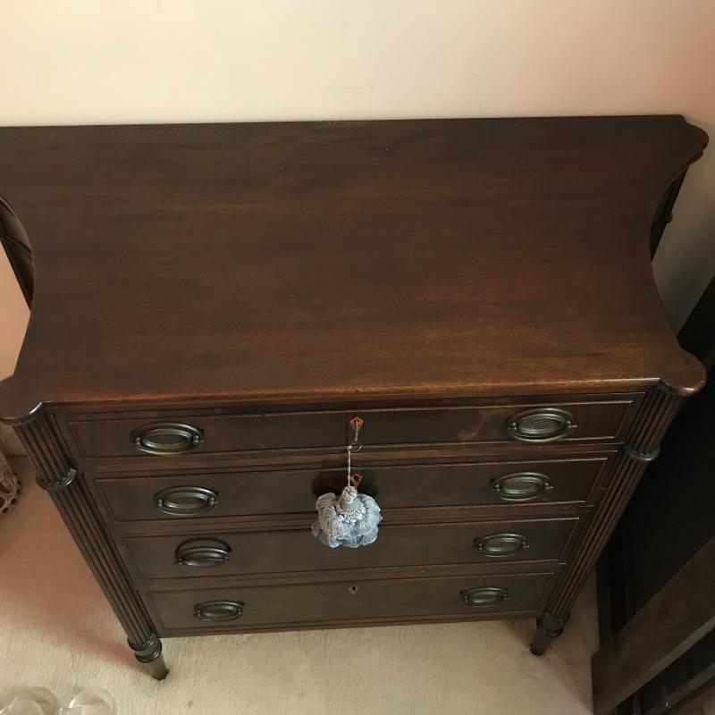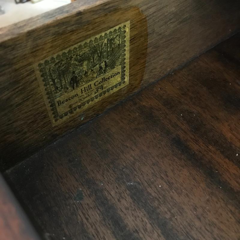 This beautiful, unique antique piece is in excellent condition and includes its skeleton key. Approx. 42” (at longest point) x 19.5 w x 33” h. Tag reads “Beacon Hill Collections”. No shipping available. Local pickup only in Asheville, NC.
