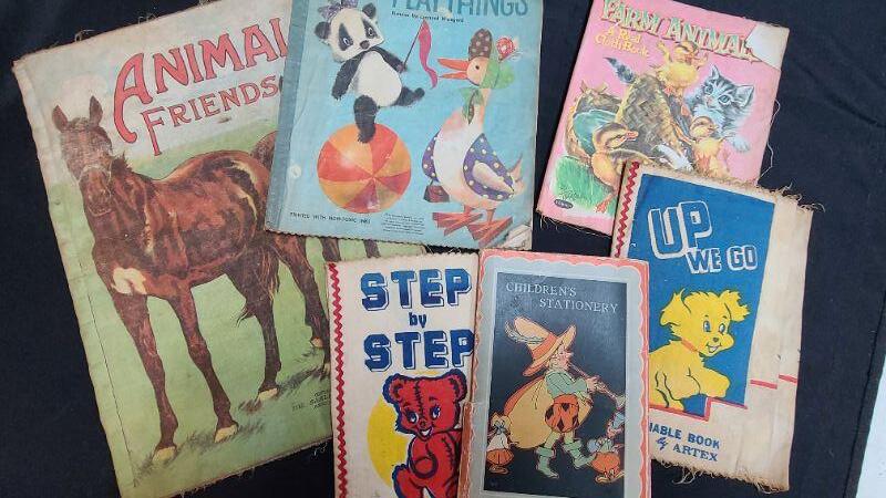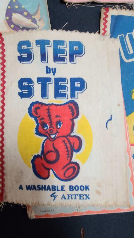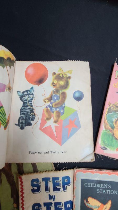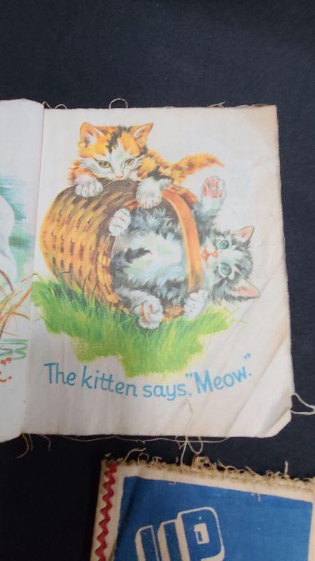 Vintage cloth books and one baby softback book. Please see all pictures for measurements, condition of the item/s, and the contents if listed as a lot. Pictures are the best representation of the item. Thank you for looking and have fun bidding! We appreciate our Treasure Hunters!