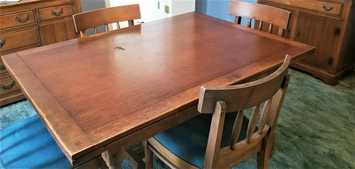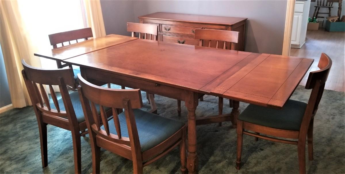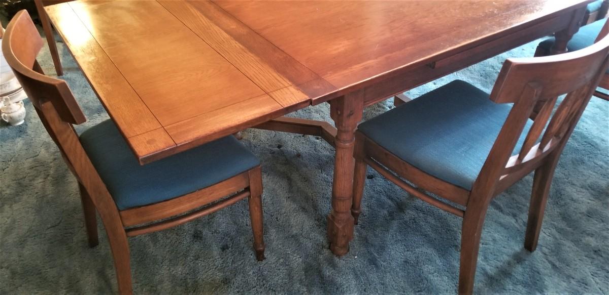 Lot #106  Vintage Oak Dining Room Table and Six Chairs
