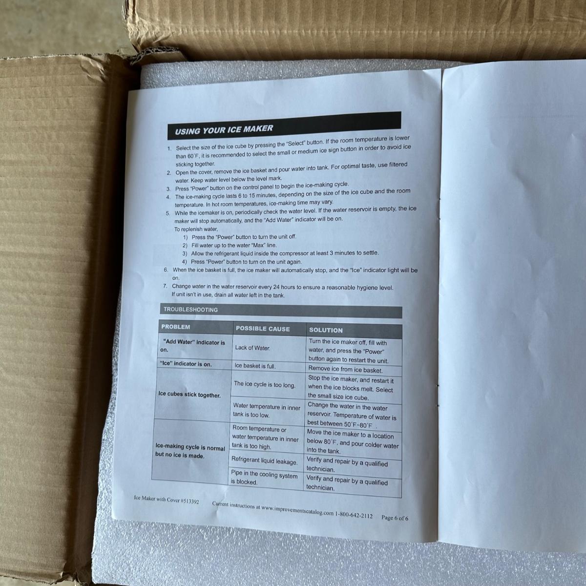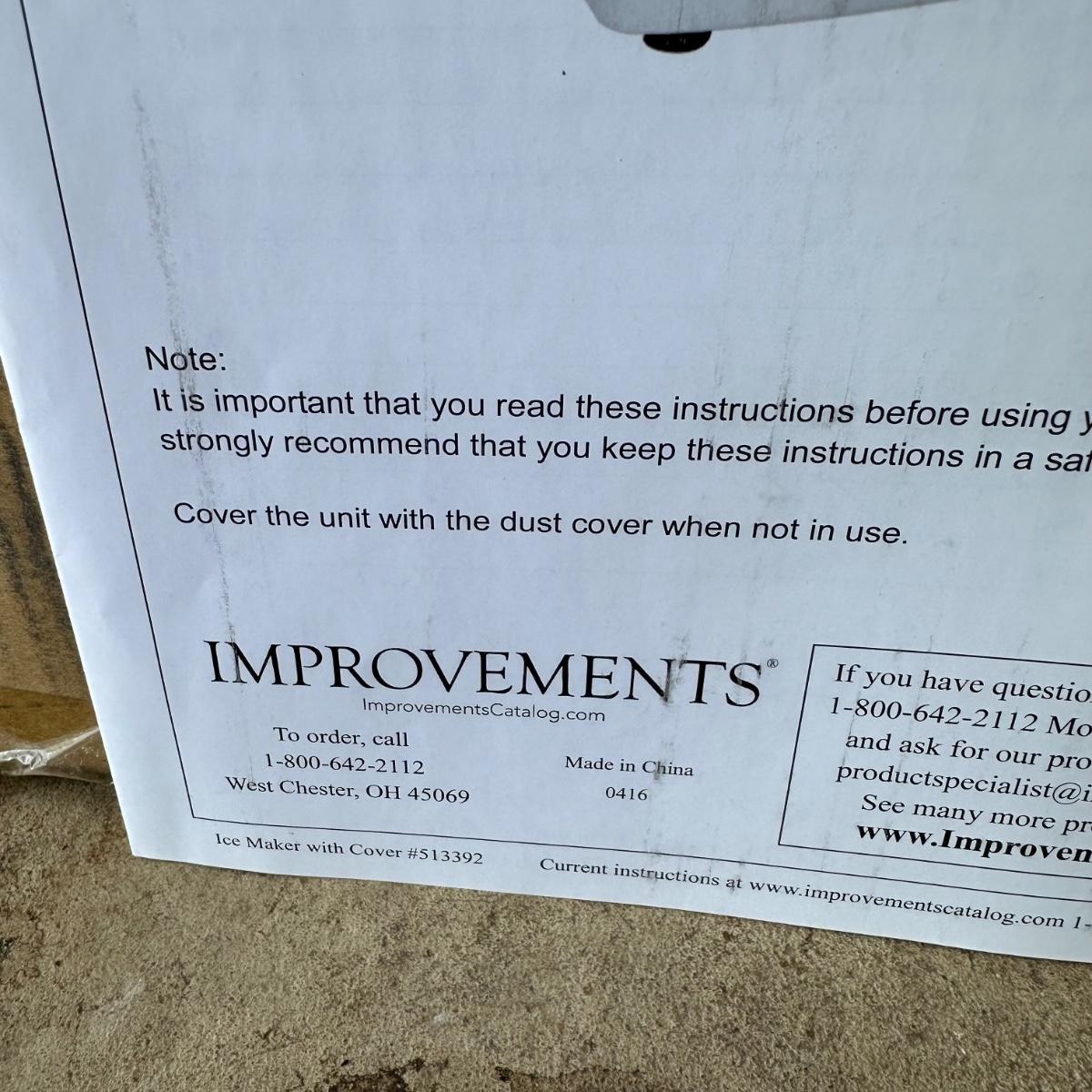 LOT 9G: New In Box Improvements Ice Maker With Cover 513392