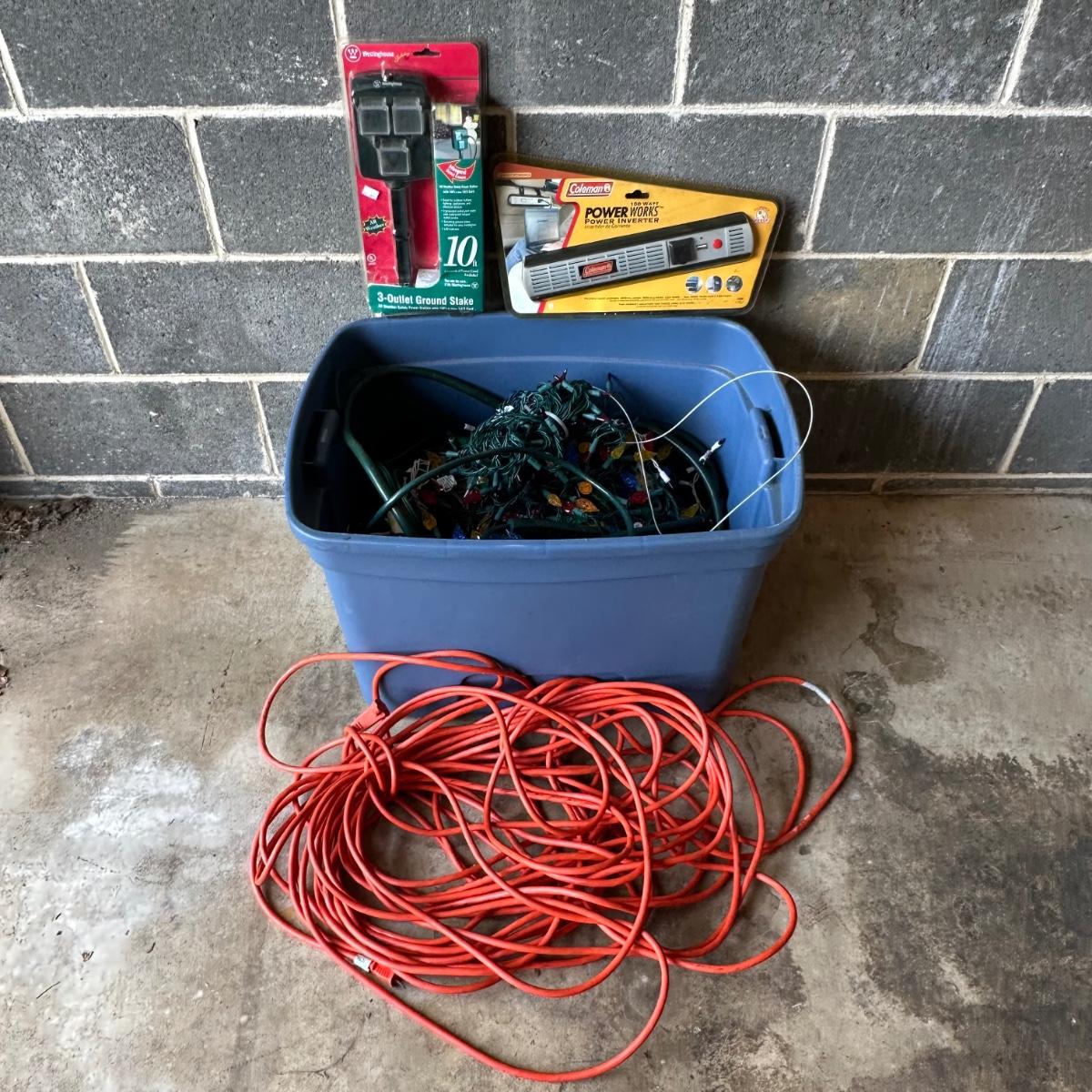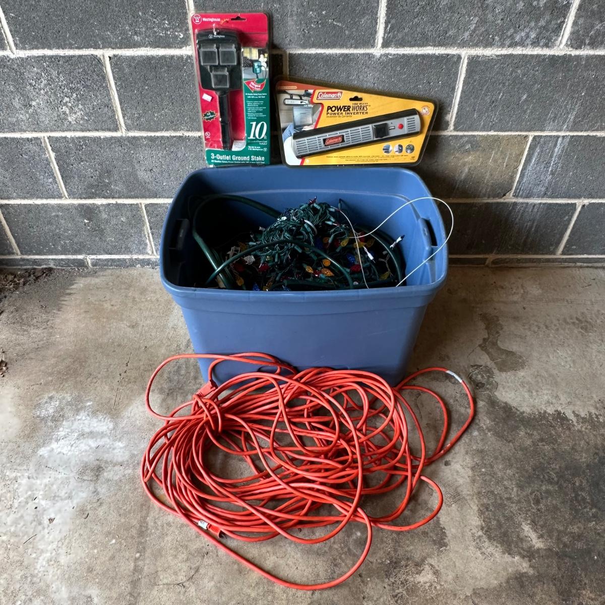 LOT 14G: Christmas Lighting! Lights, Extension Cords, Inverter & More