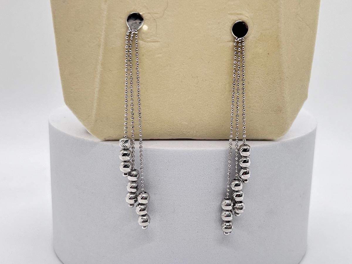 LOT 33J: 14K White Gold Long Dangling Earrings - 4.5 g