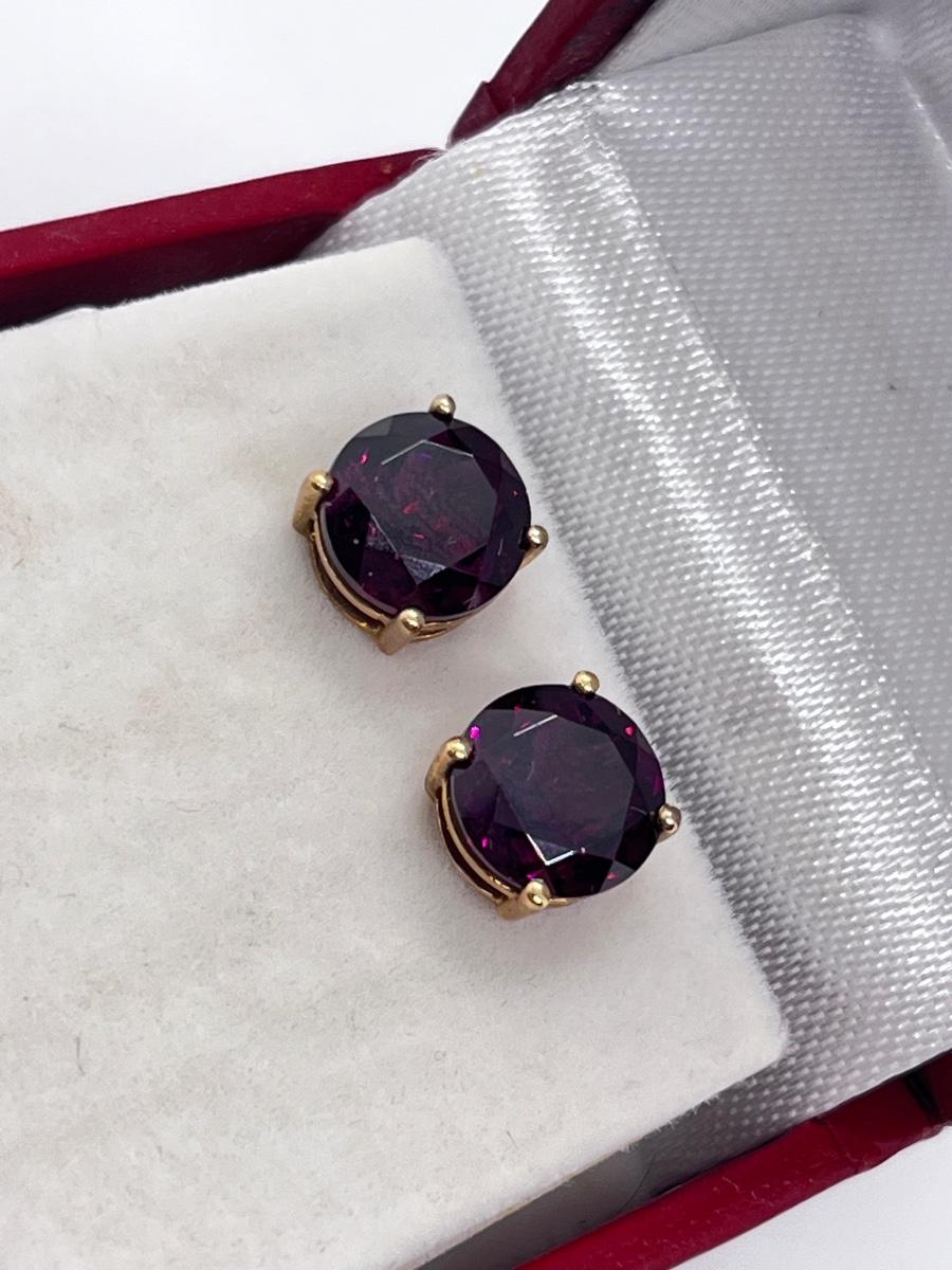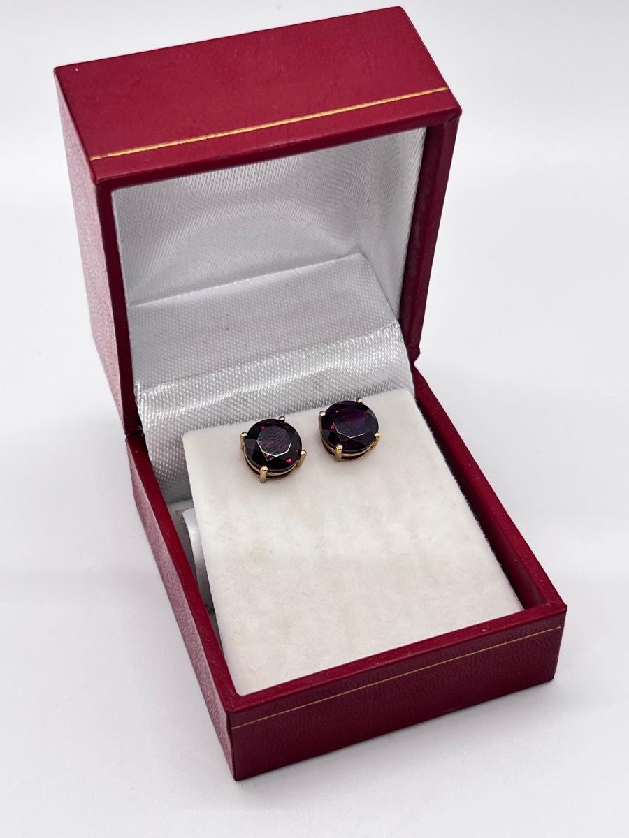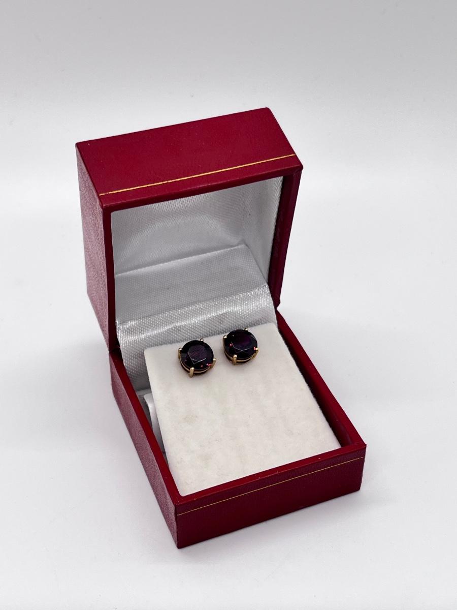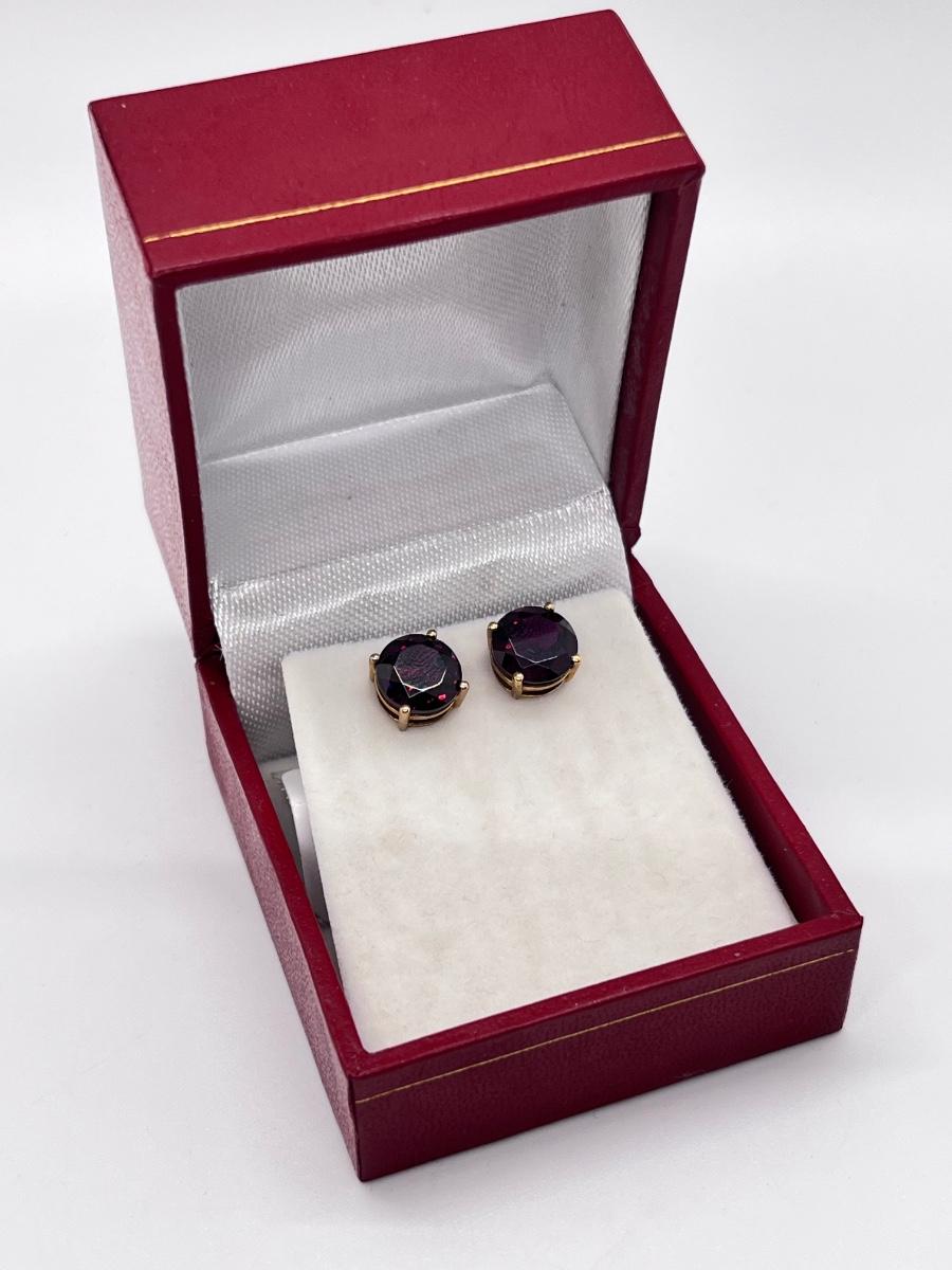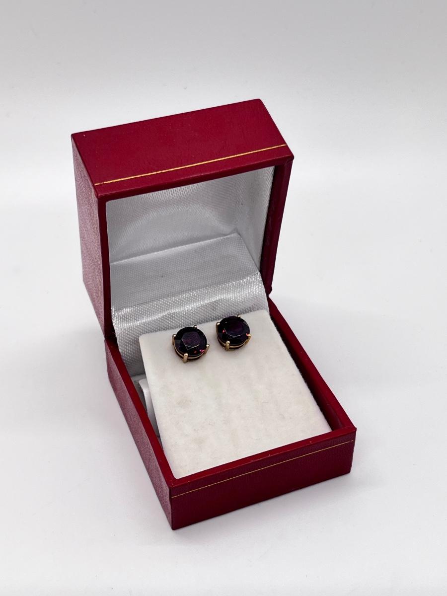 LOT 34J: 14K Rhodolite Garnet Pierced Earrings - 2.48 gtw