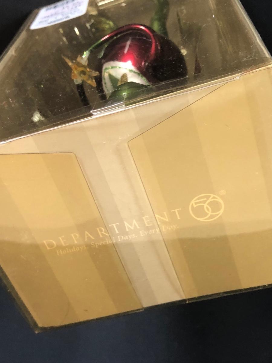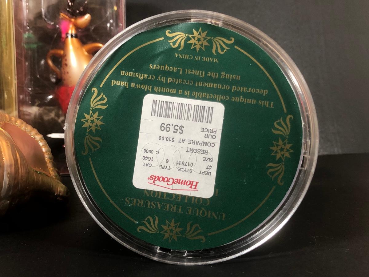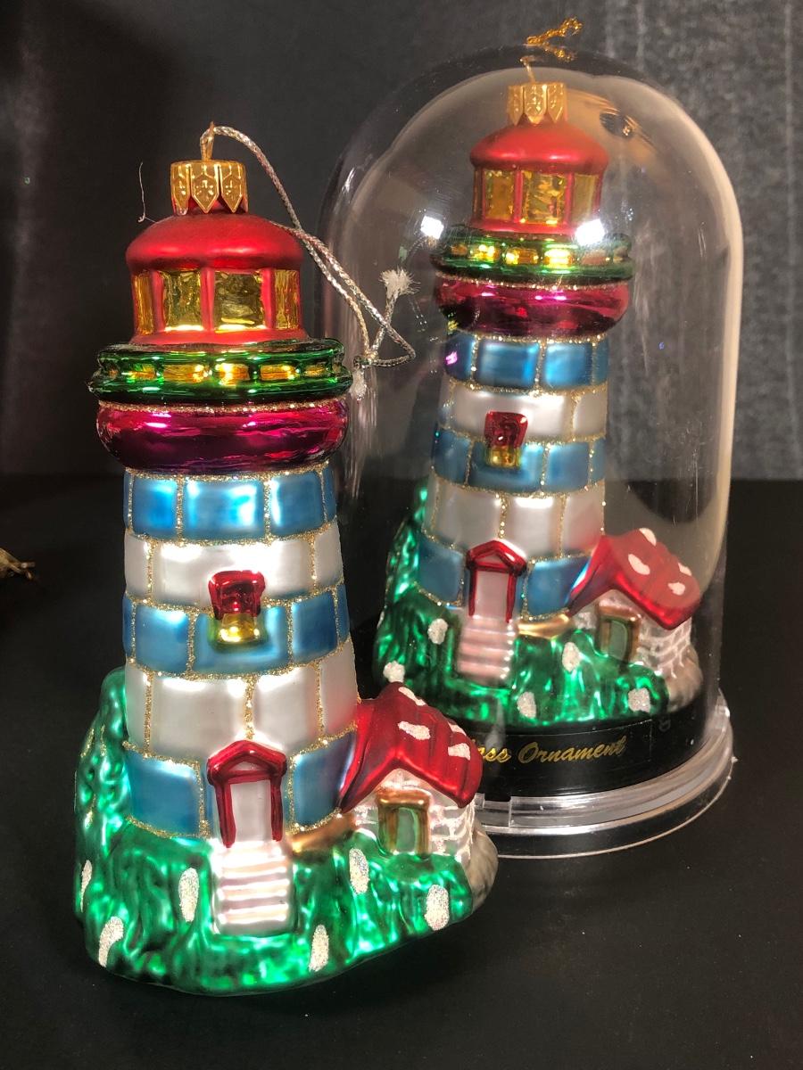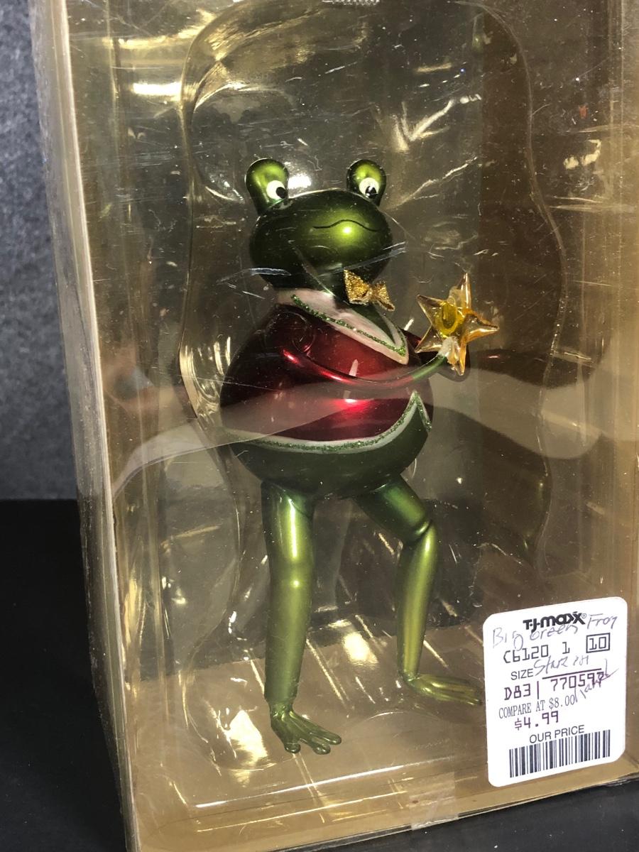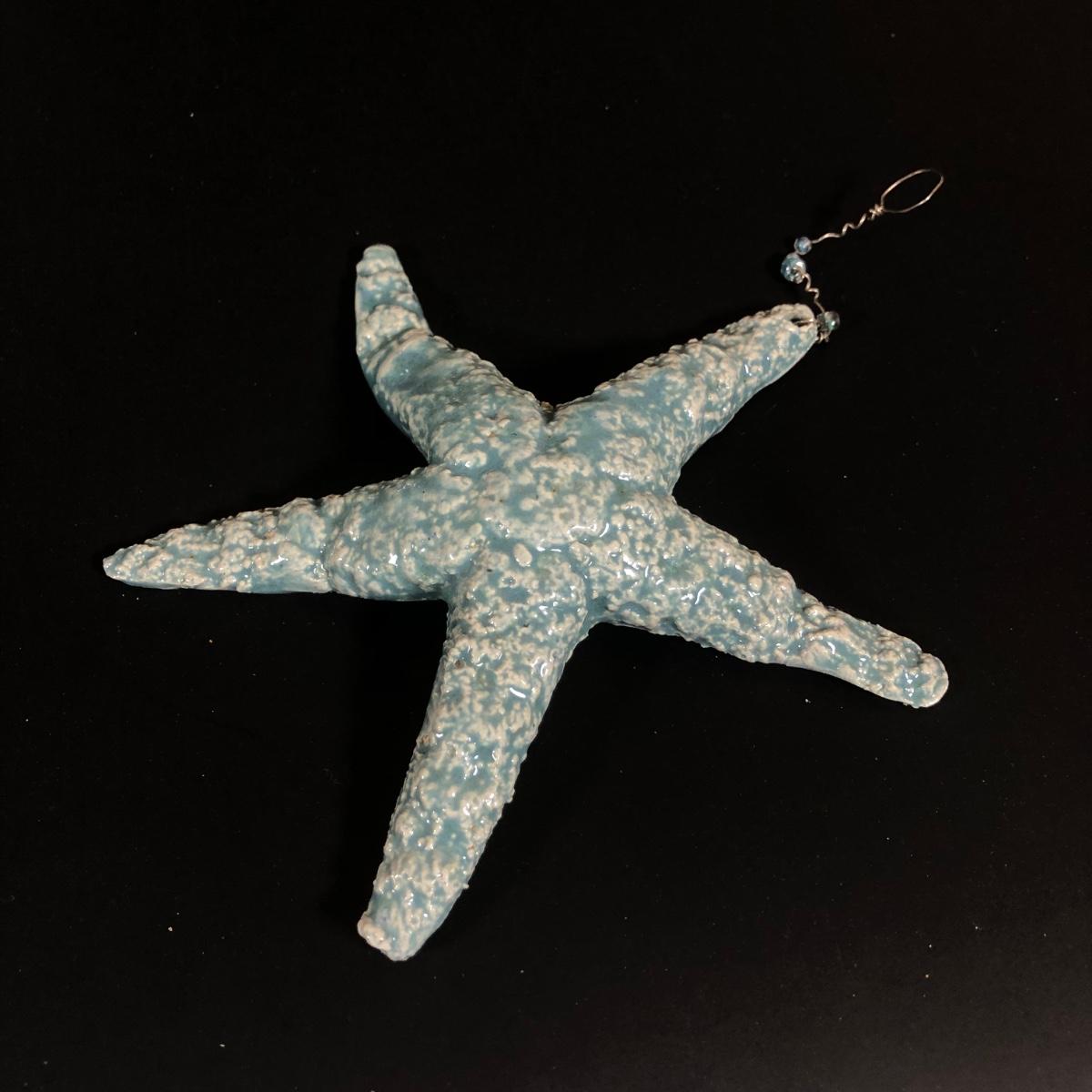 LOT 41: Collection of Aquatic Themed Christmas Ornaments - Signed Ceramic Starfish, Hand Blown Glass Seahorse, Department 56 Glass Dressed Frog & More