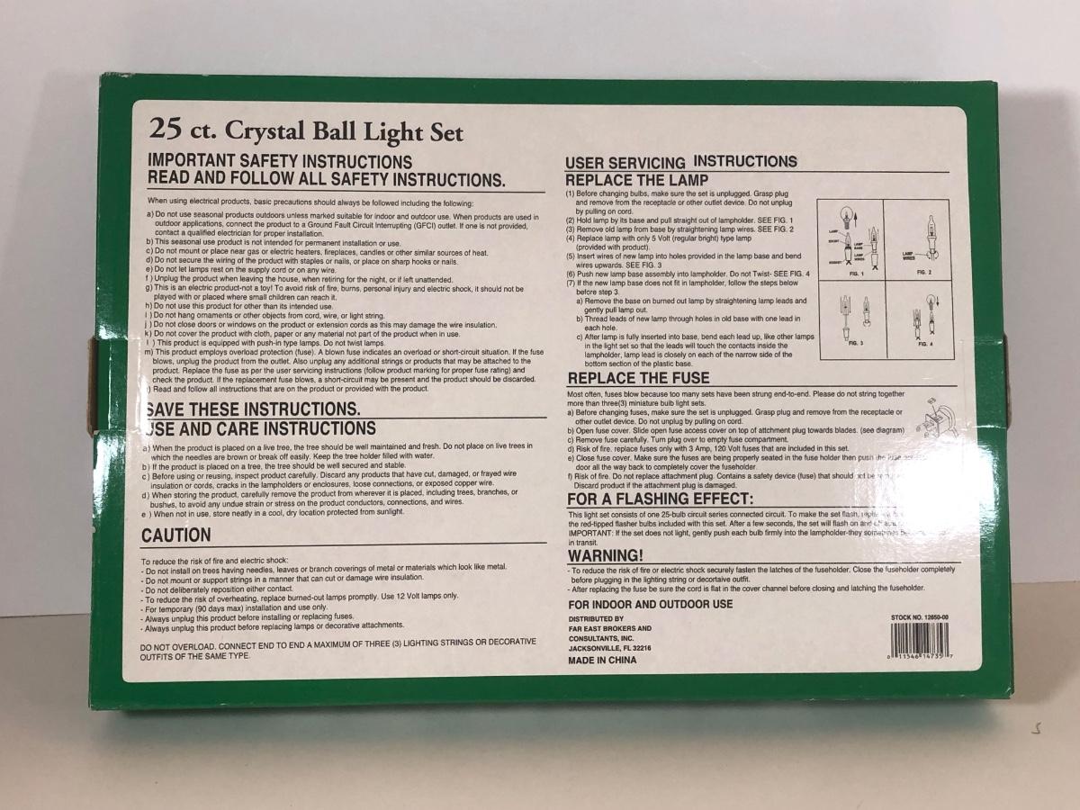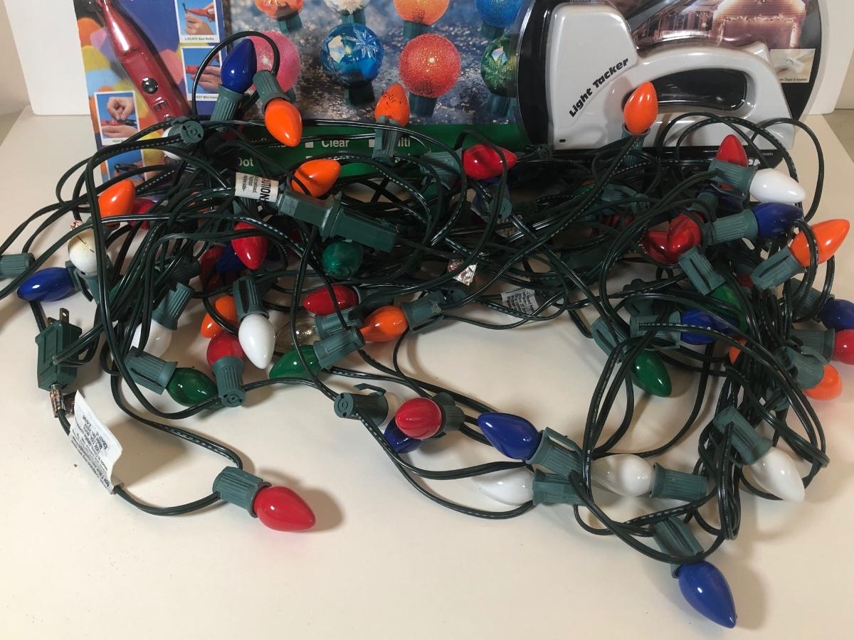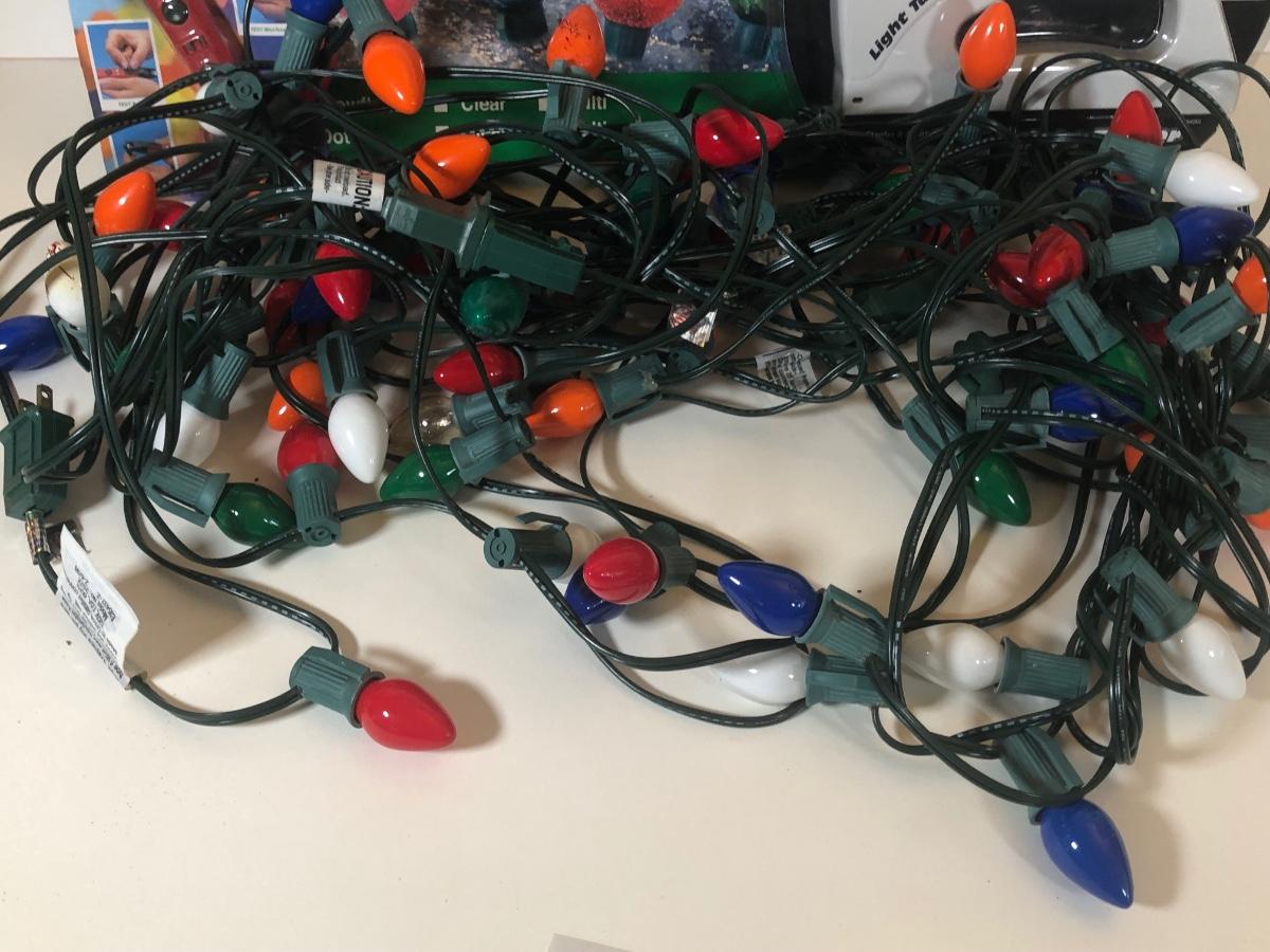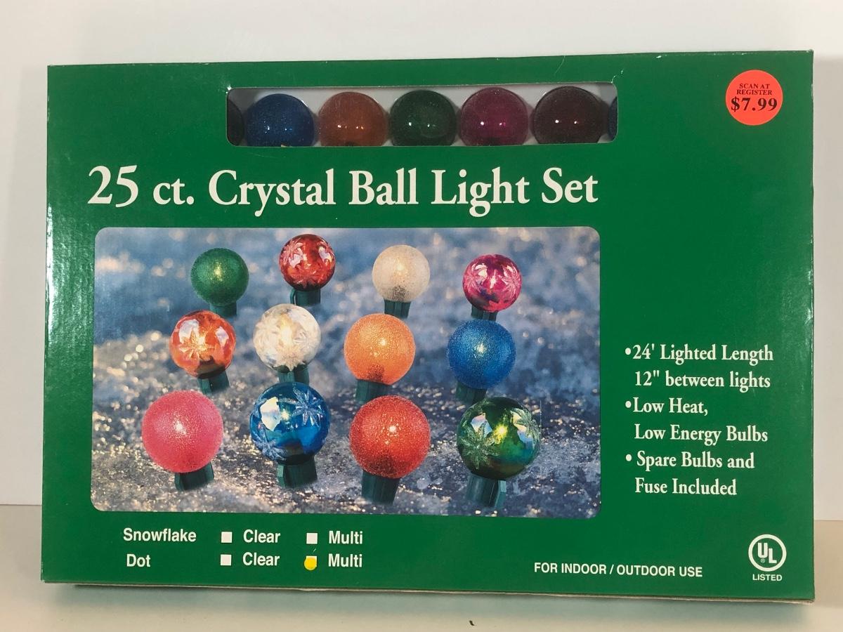 LOT 43: Three Strands of Multi-Color Big Bulb Holiday Lights, NIB Crystal Ball Light Set, Green Extension Cord w/ On/Off Button & More