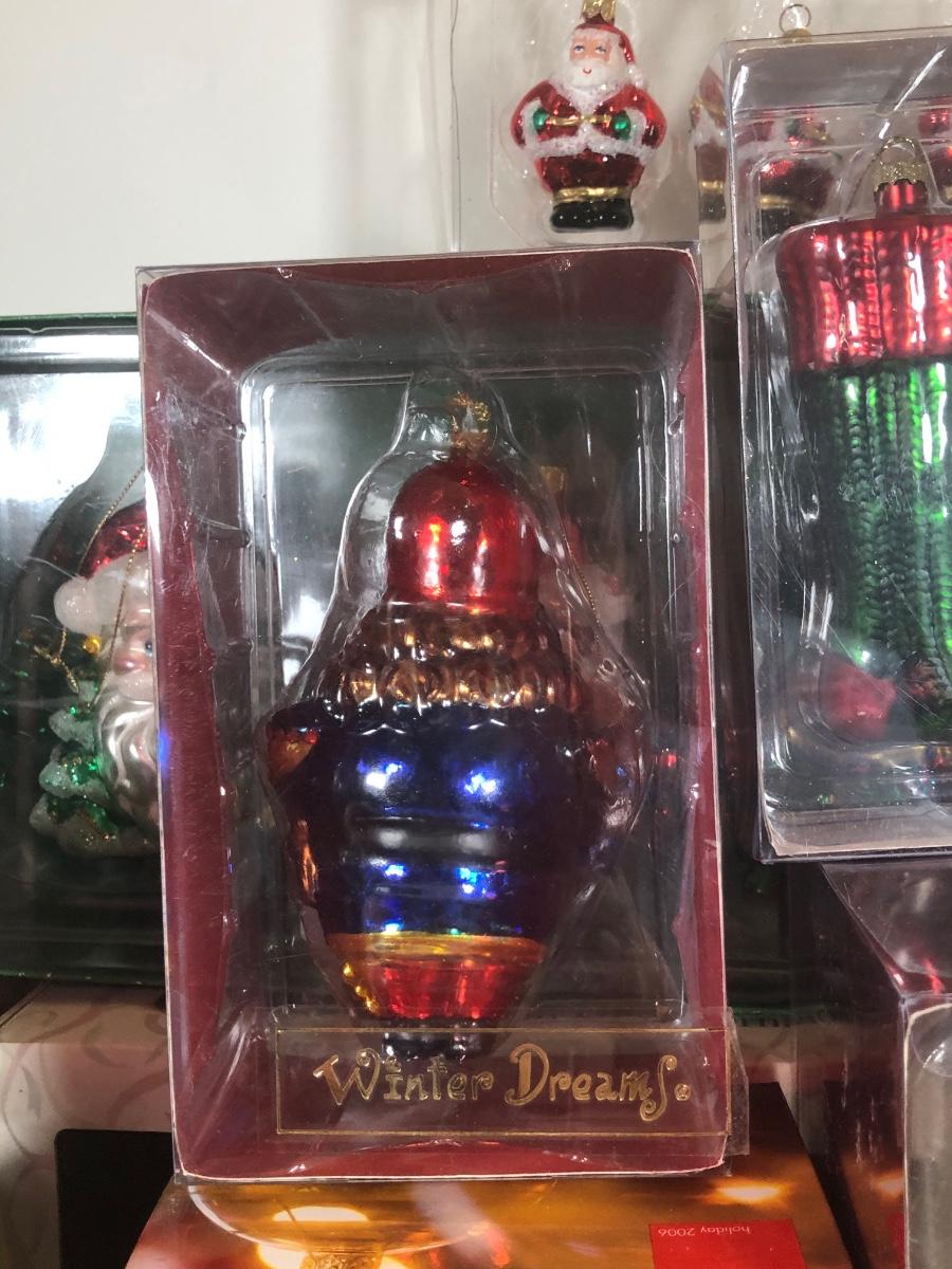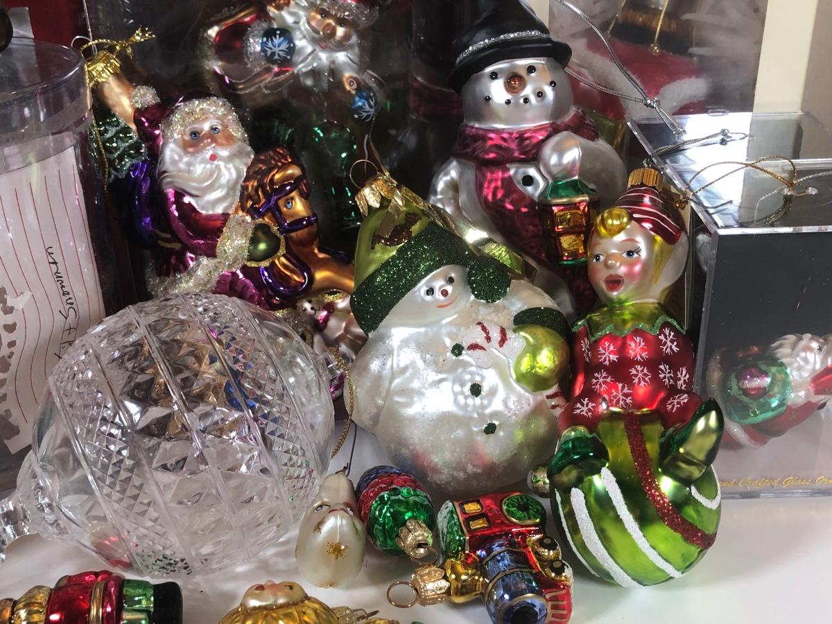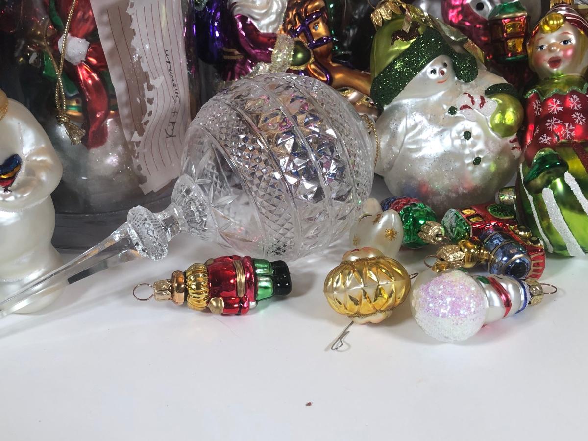 LOT 49: Large Collection of Glass Christmas Ornaments - Some w/ Boxes - Sur la Table, Golden Grandeur, Polonaise Collection by Komozja Cowardly Lion, Christopher Radko & More