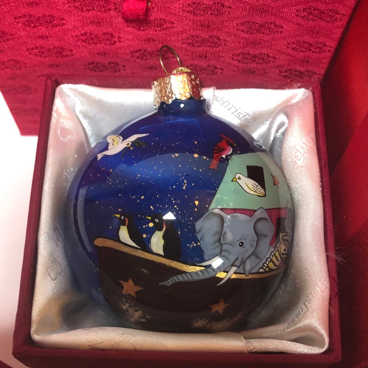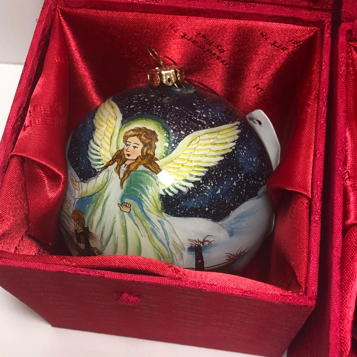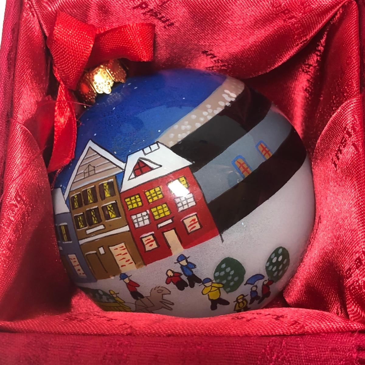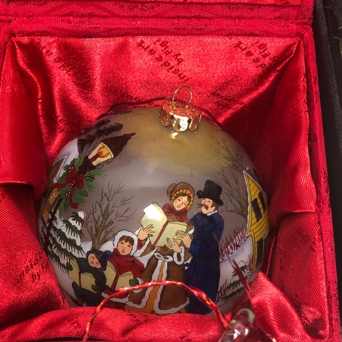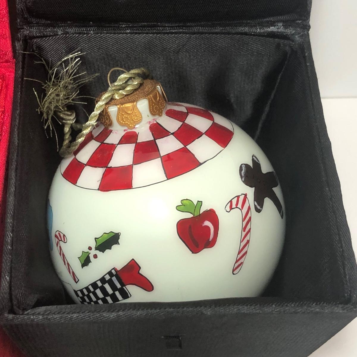 LOT 50: Frosted Glass Santa Head Ornament w/ Collection of Hand Painted Glass Ball Ornaments w/ Cushioned Boxes