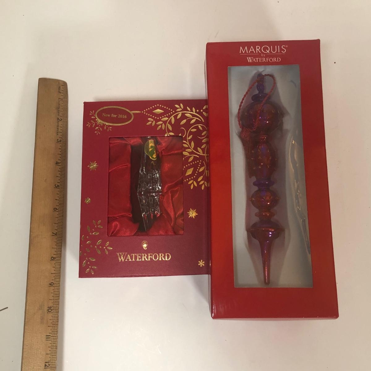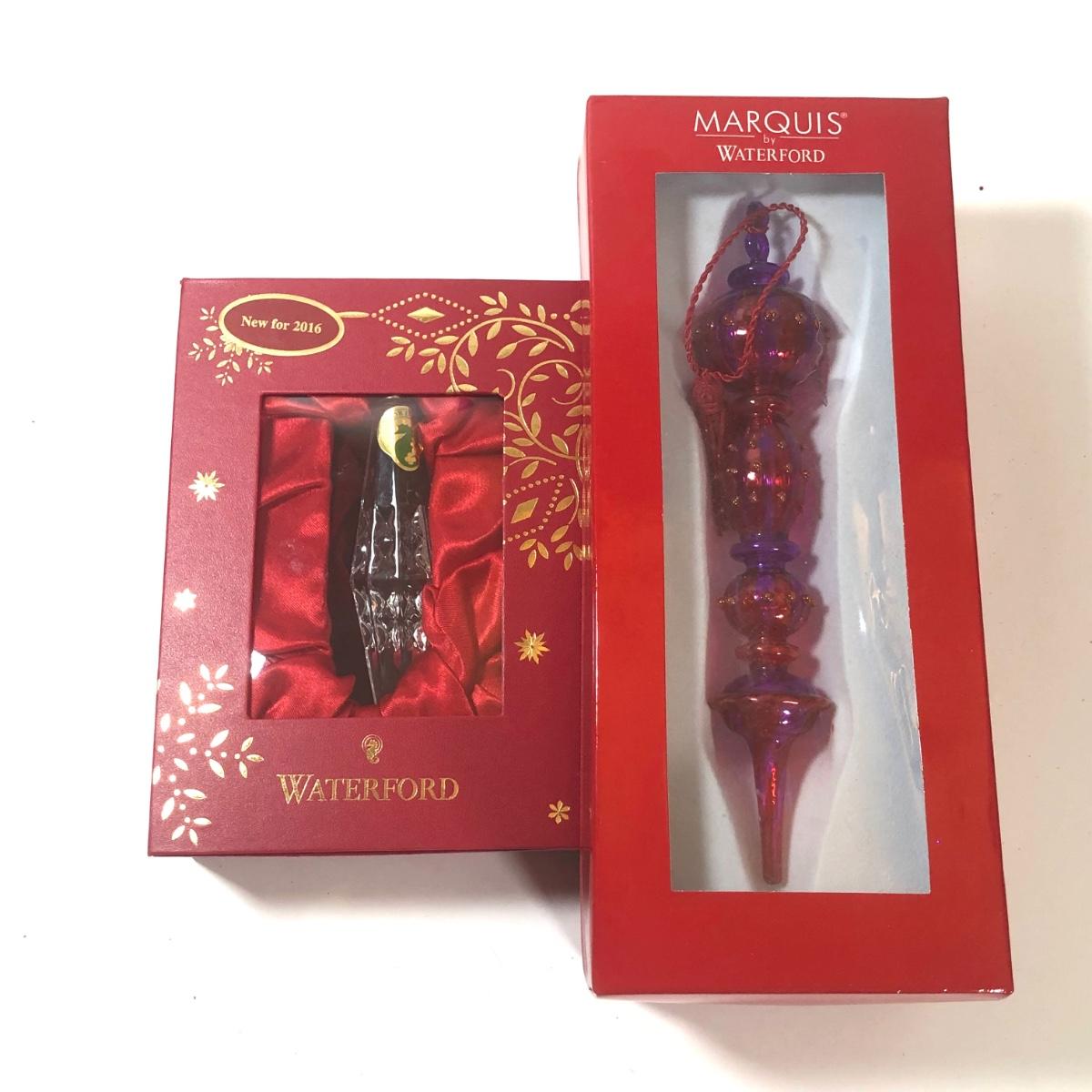 LOT 55: Waterford Christmas Ornaments w/ Boxes - 2016 Crystal & Marquis Venetian Fuschia Spire
