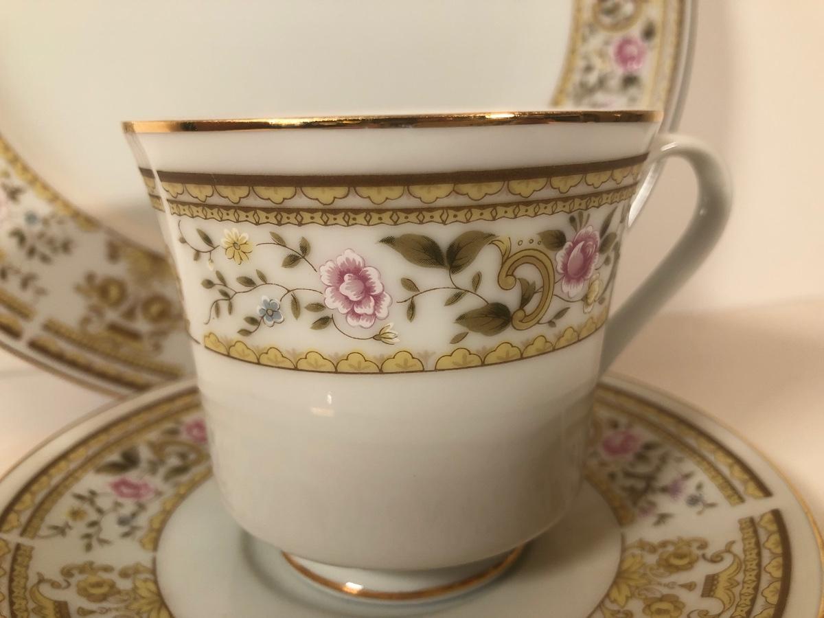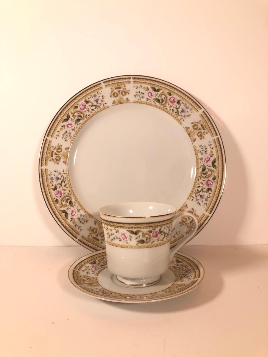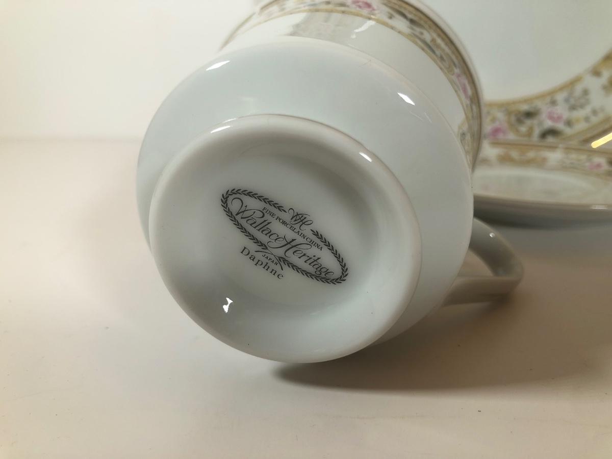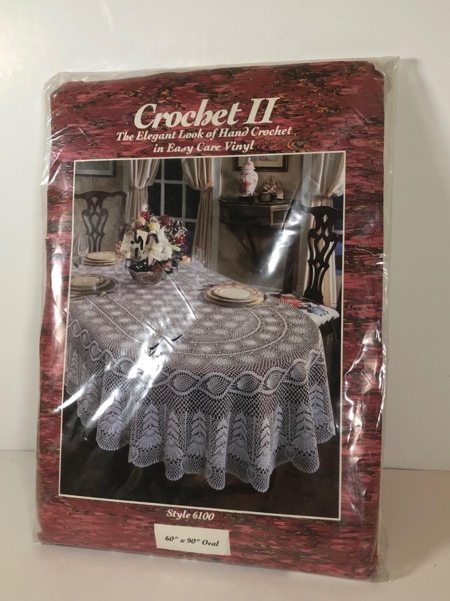 LOT 63: Two Wallace Heritage Daphne China 4pc Place Settings in Boxes, NIP Crochet II Vinyl Table Cover & More