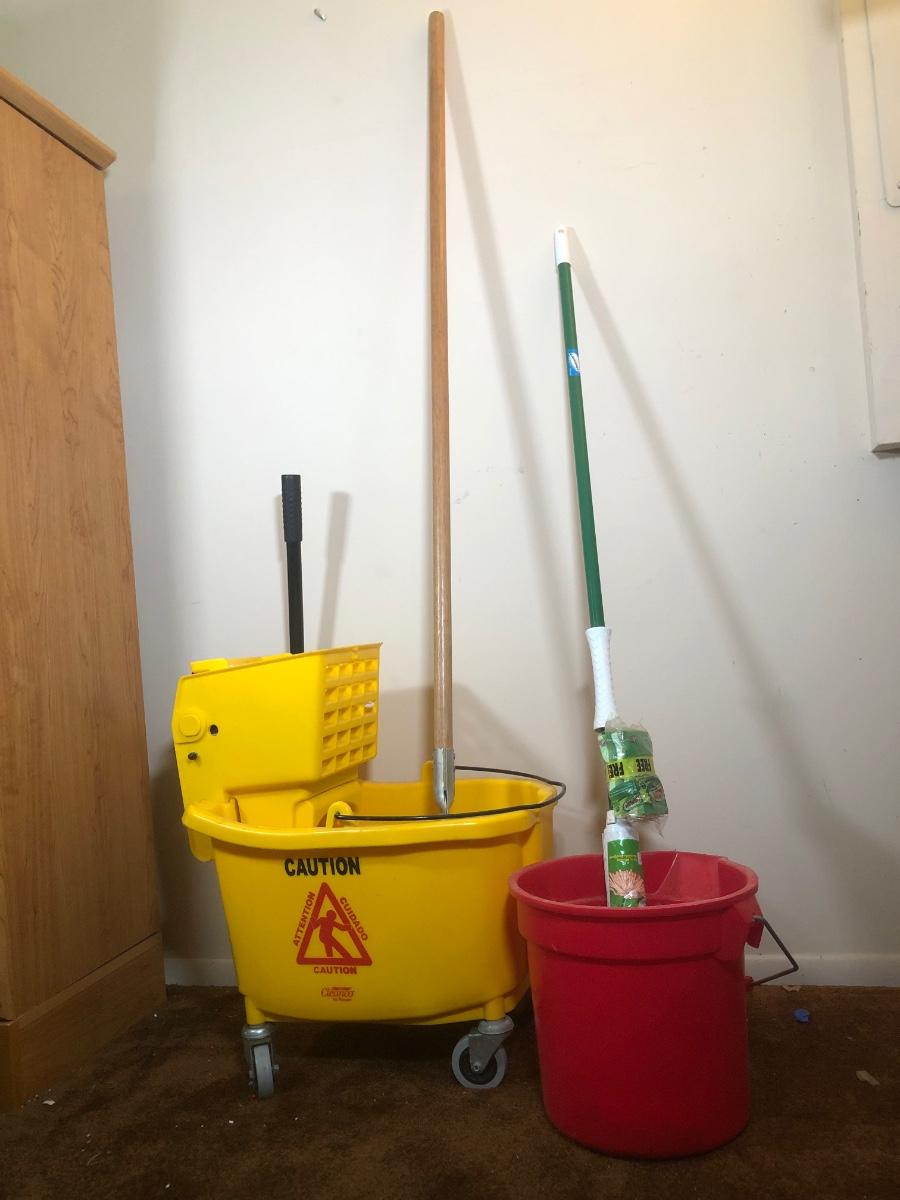 LOT 65: Industrial Mop Bucket w/ Mop & More
