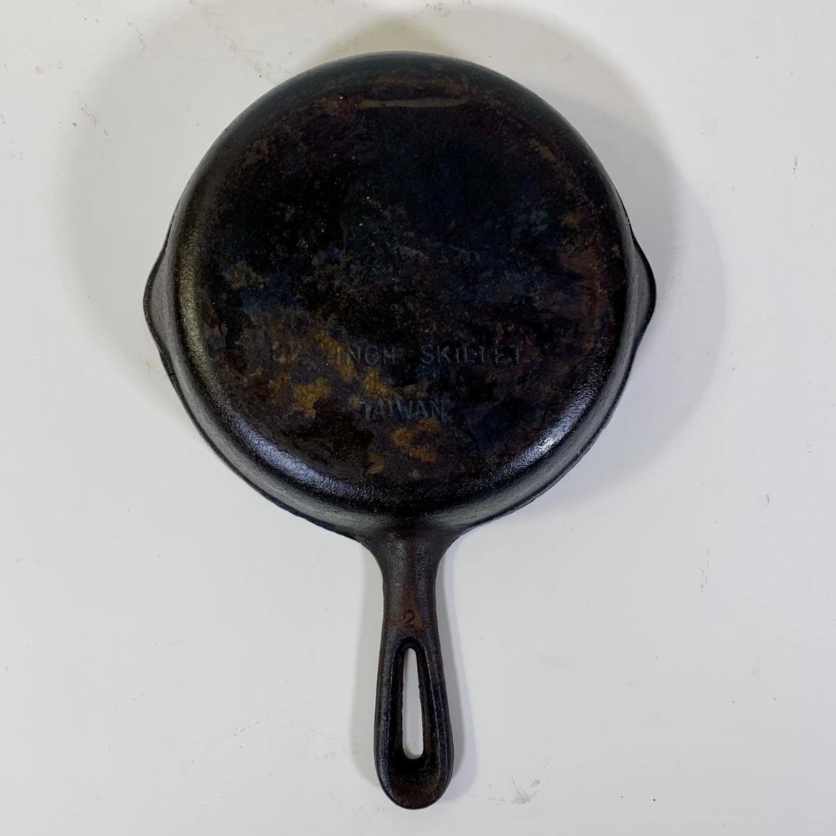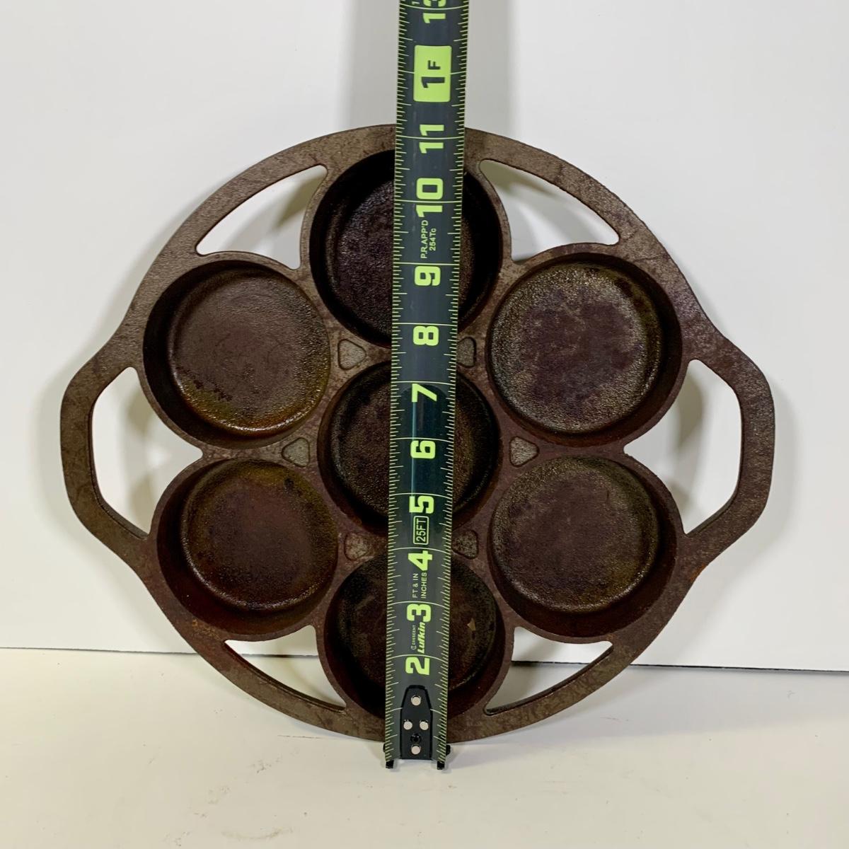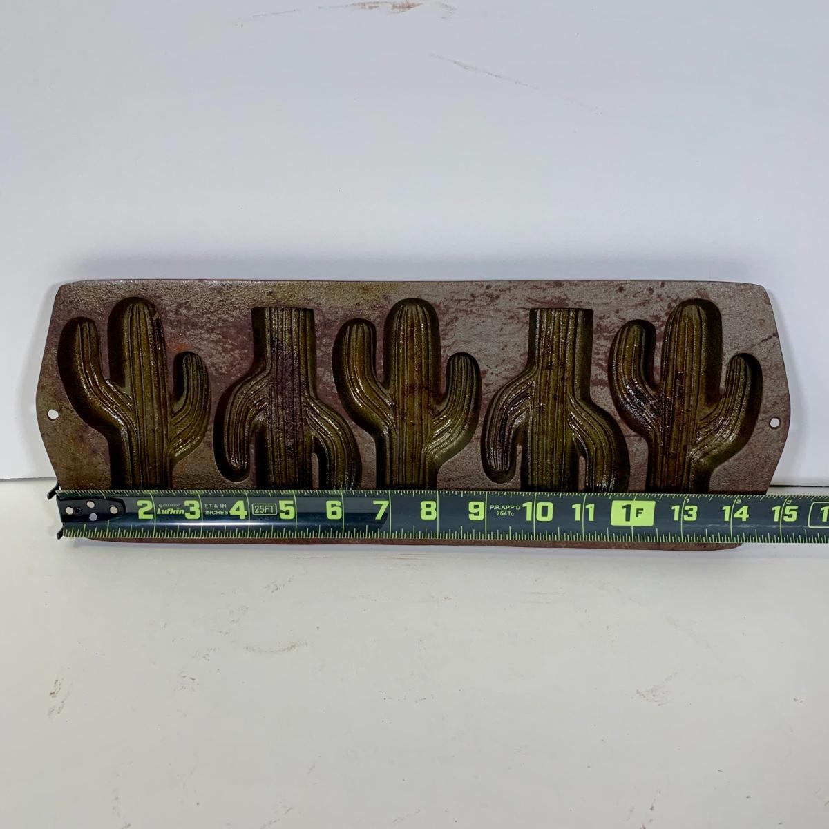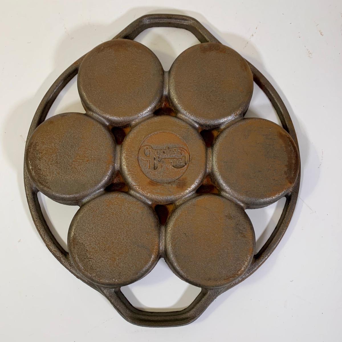 LOT 84: Cast Iron Collection: Cracker Barrel Biscuit Pan, Lodge Cactus Pan, 5.5" Skillet, & Wedge/ Scone Pan