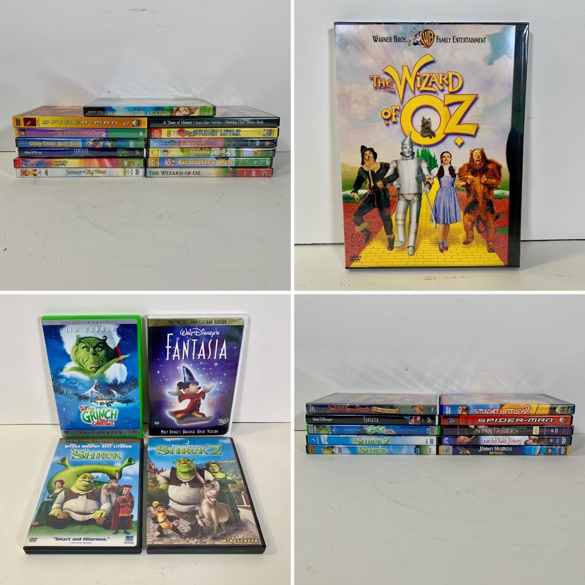 LOT 85: NIP & Used DVD's: The Wizard Of Oz, Willy Wonka & The Chocolate Factory, Fantasia 2000, & More