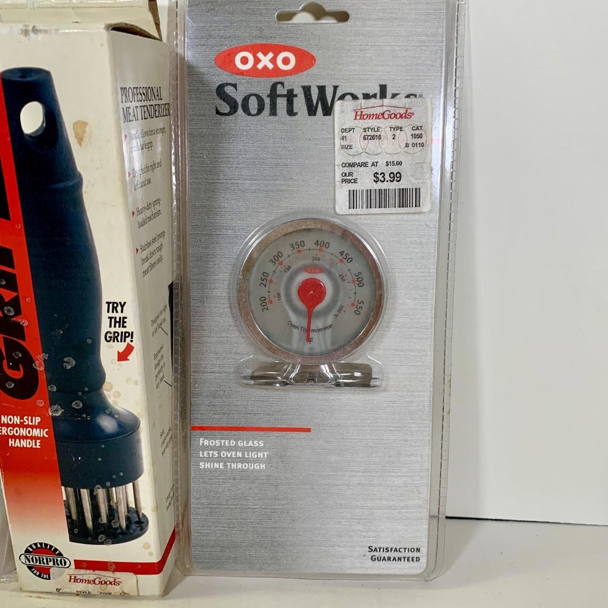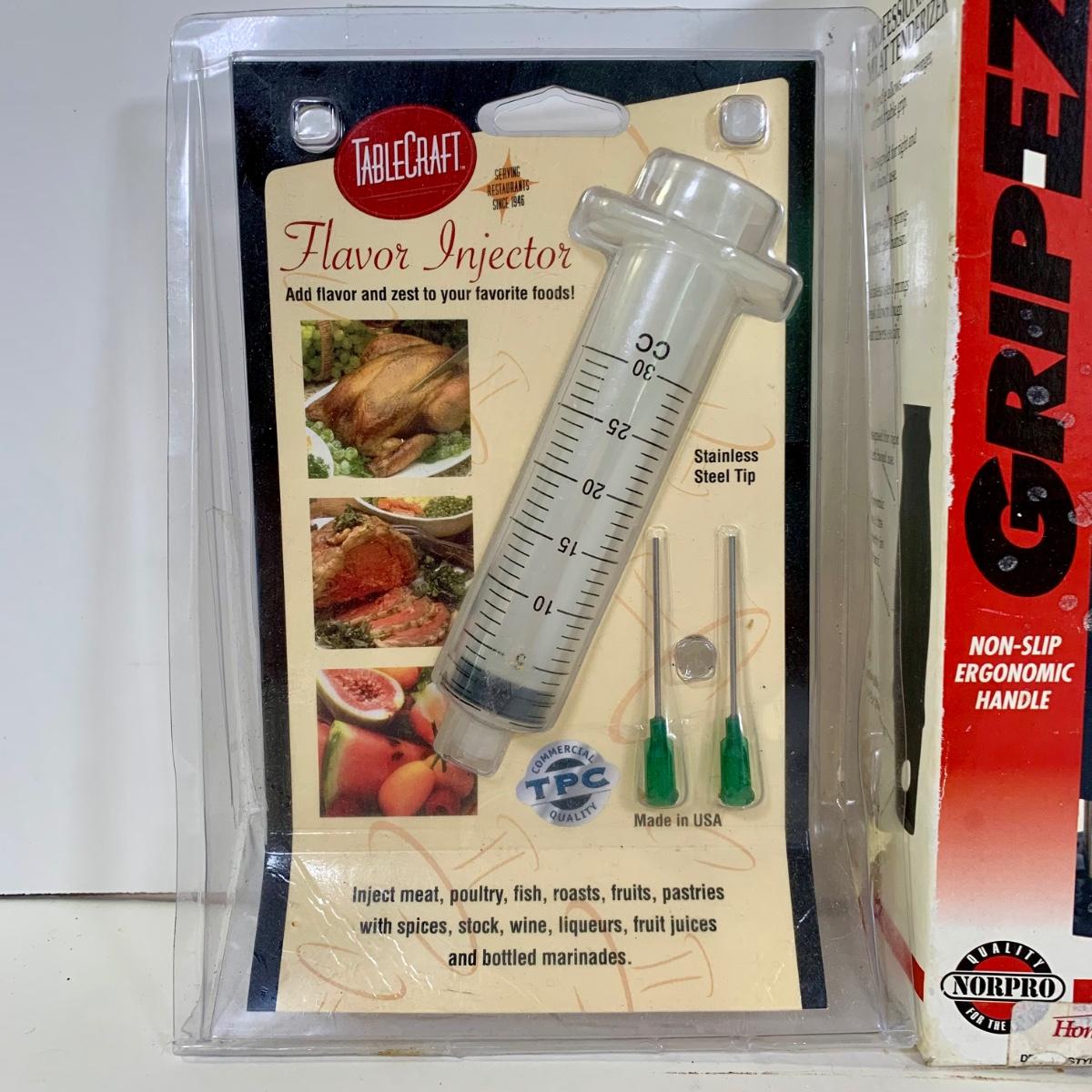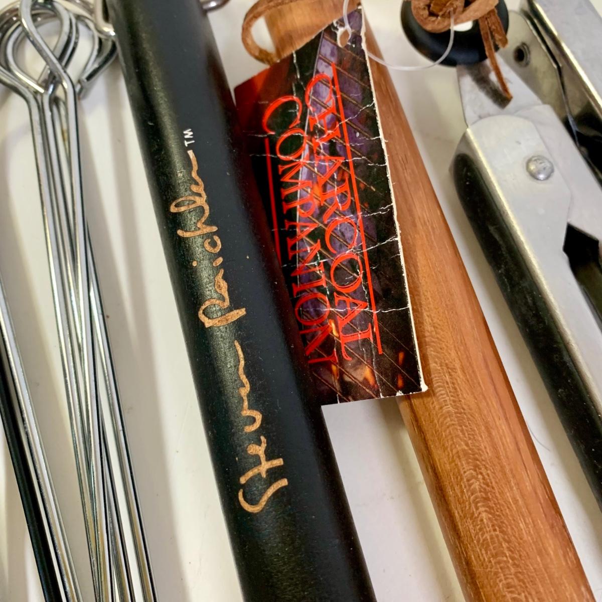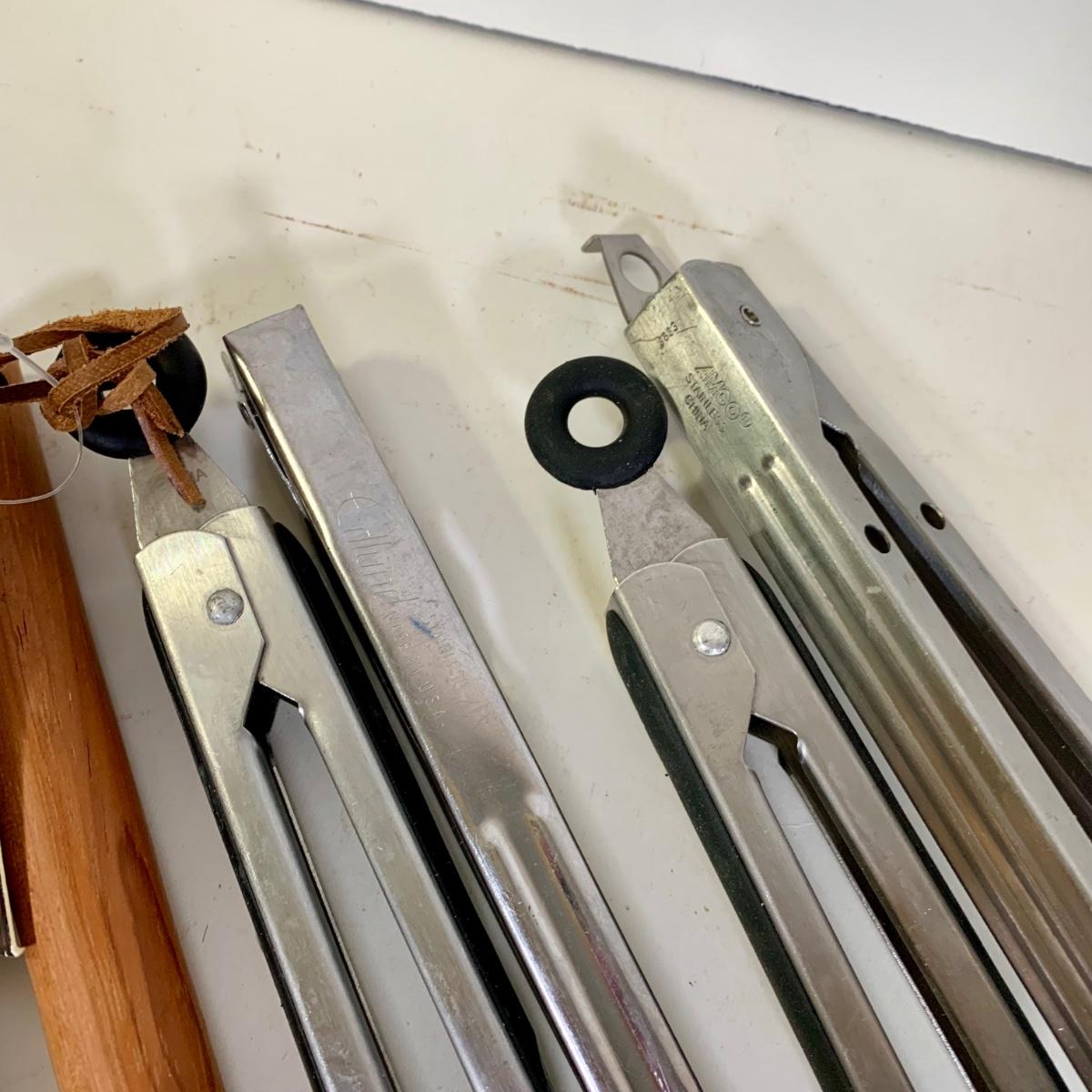 LOT 87: French Cafe Grilling Tongs w/ Thermometer & Timer, Corn Skewers, Flavor Injector, Meat Tenderiser, Oven Thermometer & More
