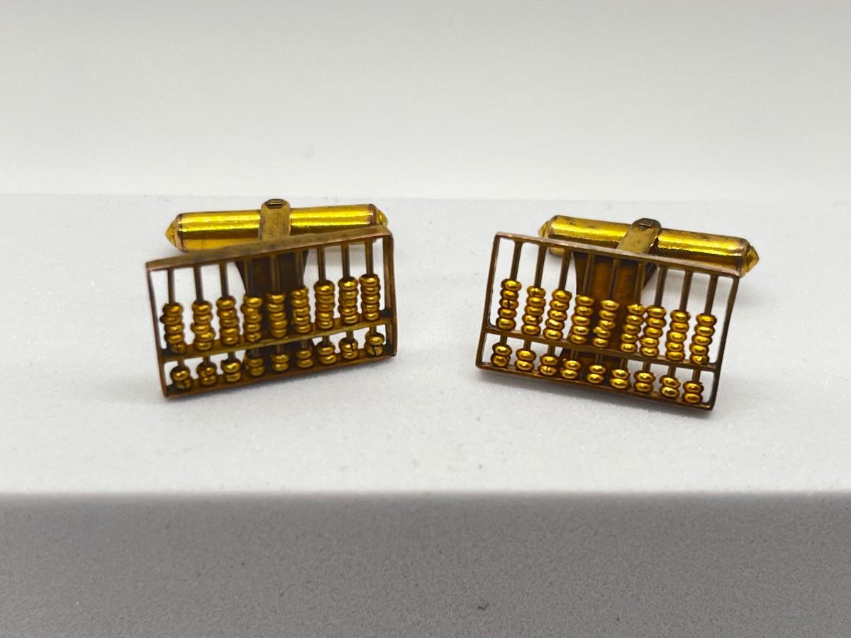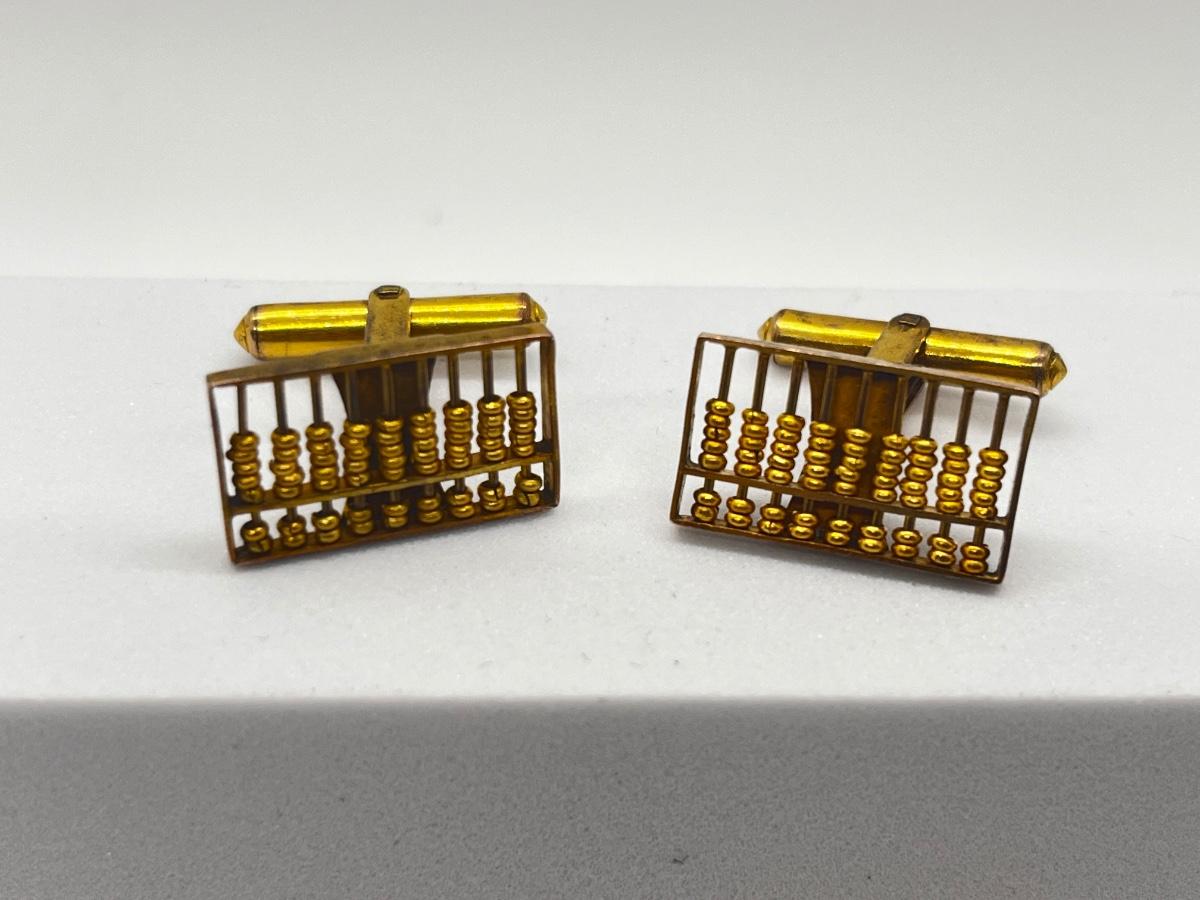 LOT 94J: Unique 14K Gold Vintage Abacus Cufflinks - 6.3 g