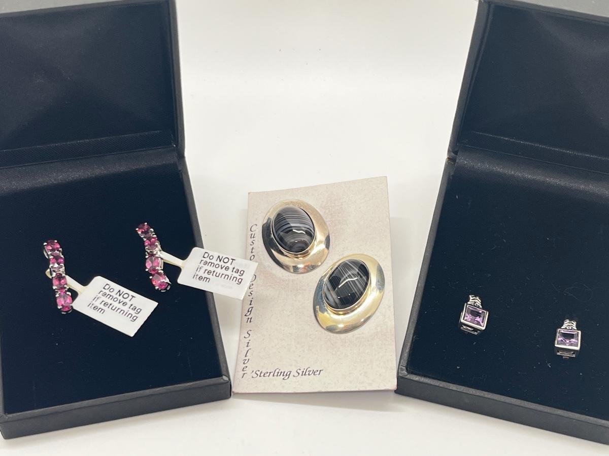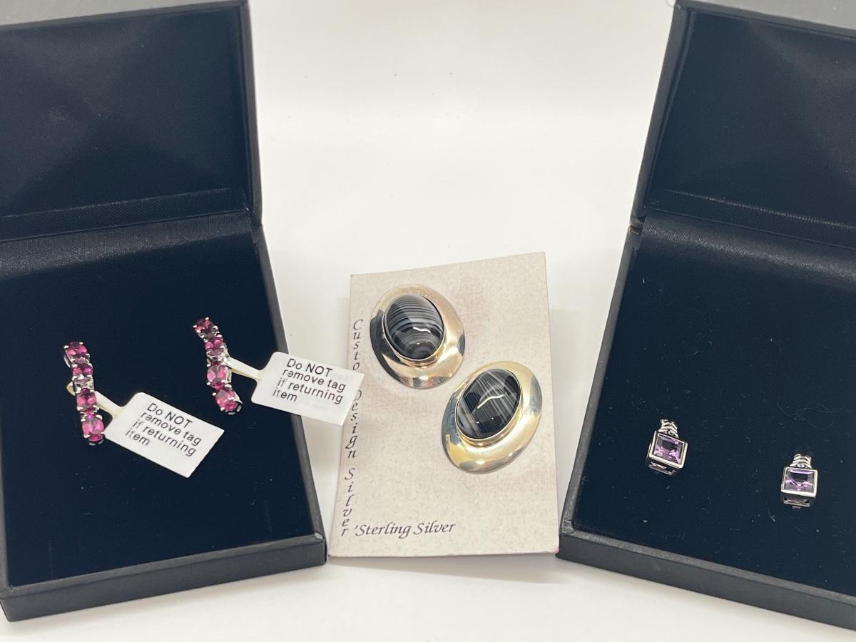 LOT 101J: New! Sterling Silver Earrings - Pink Topaz, Amethyst & White Sapphire & More