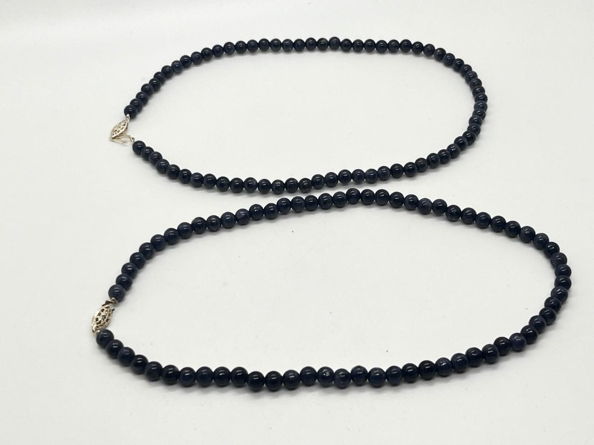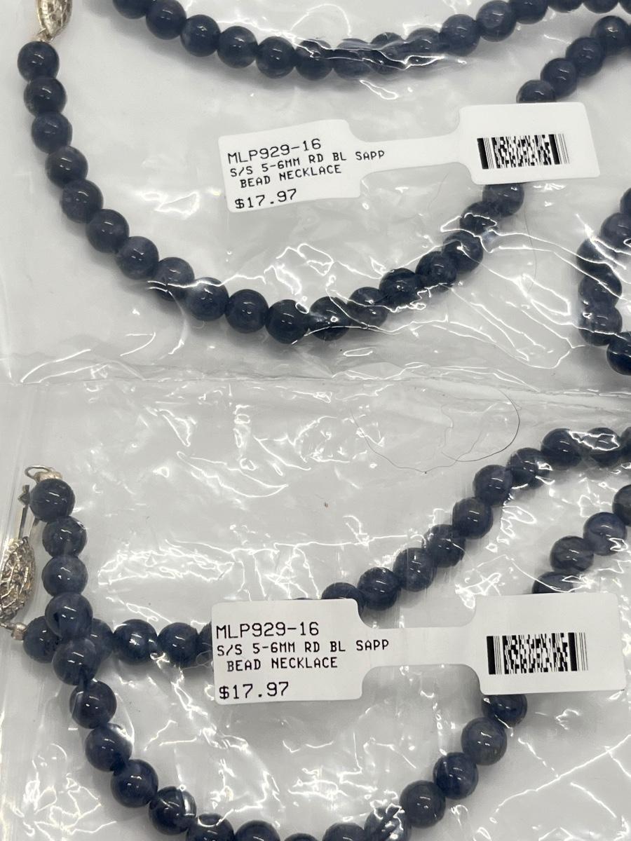 LOT 105J: Two NEW 17” Blue Sapphire Bead Necklaces w/ Sterling Silver Clasps