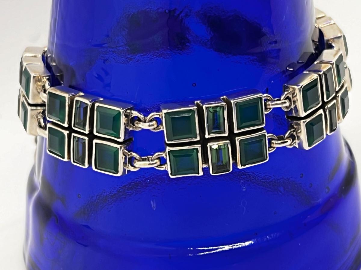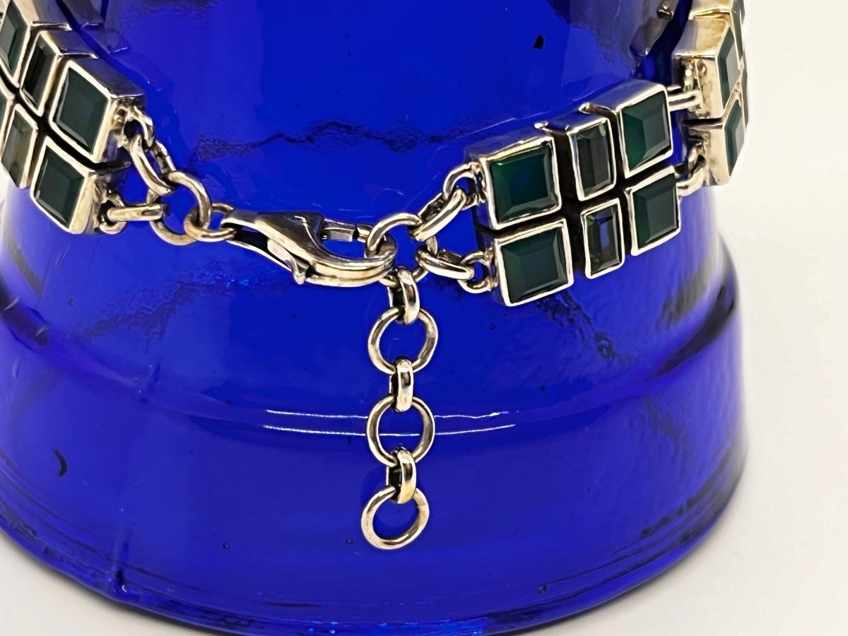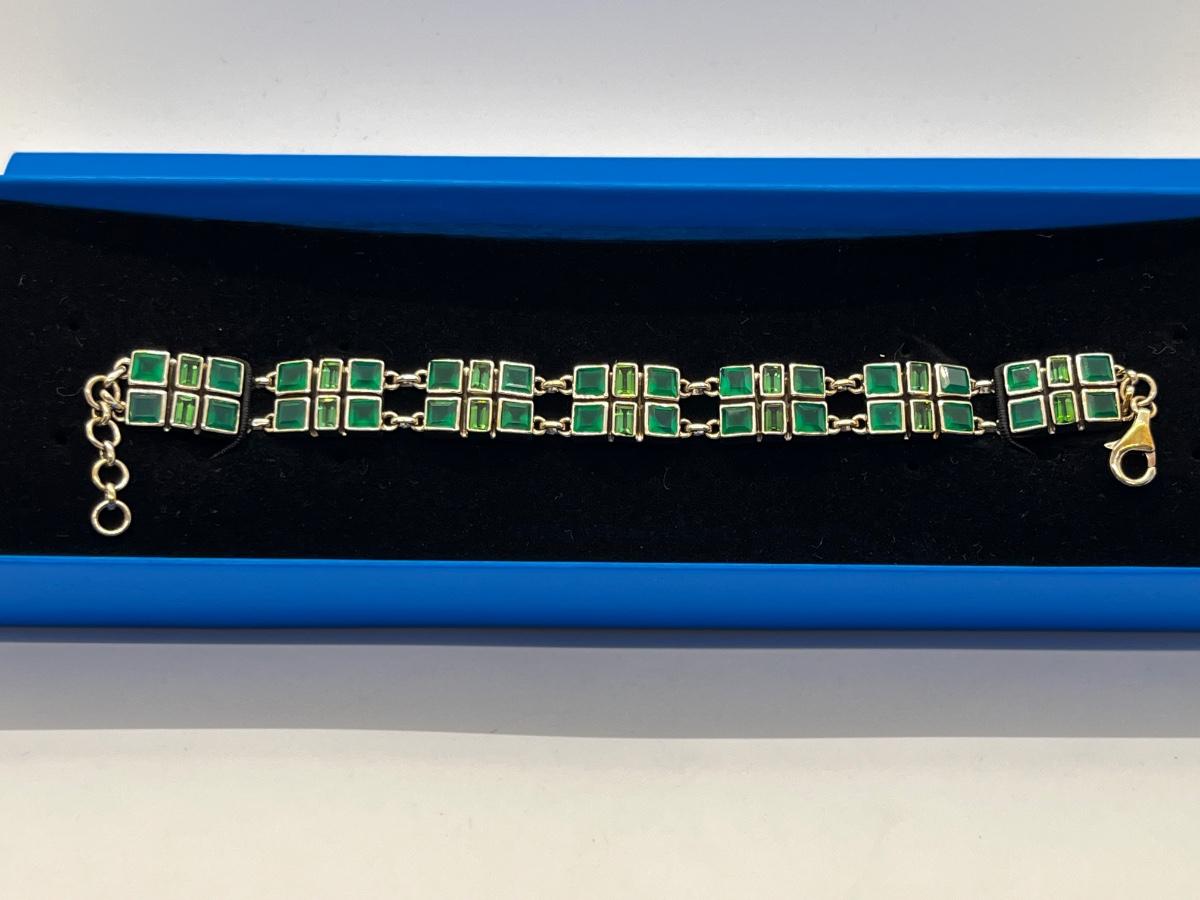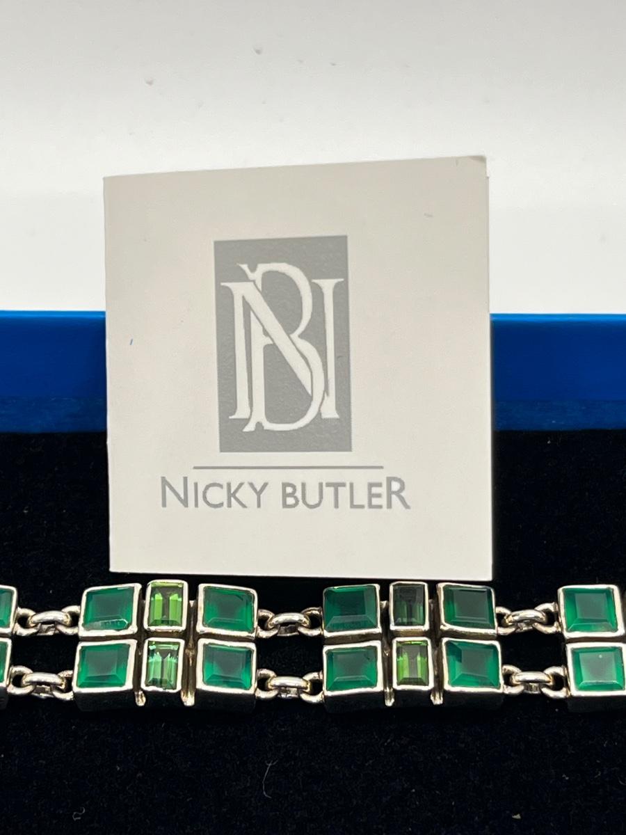 LOT 107J: NEW! Stunning Sterling Silver 925 Nicky Butler Green Gemstone Link Bracelet - Adjusts 7-8”
