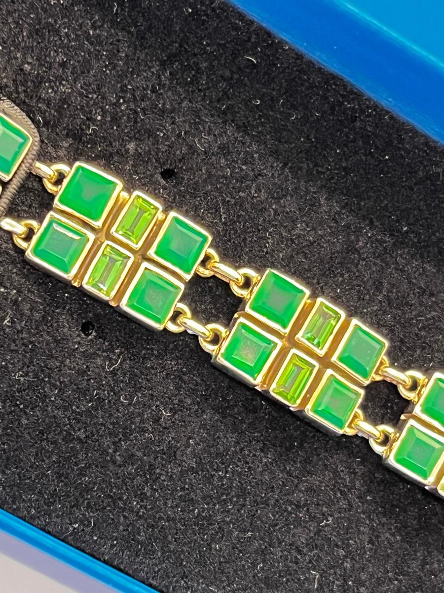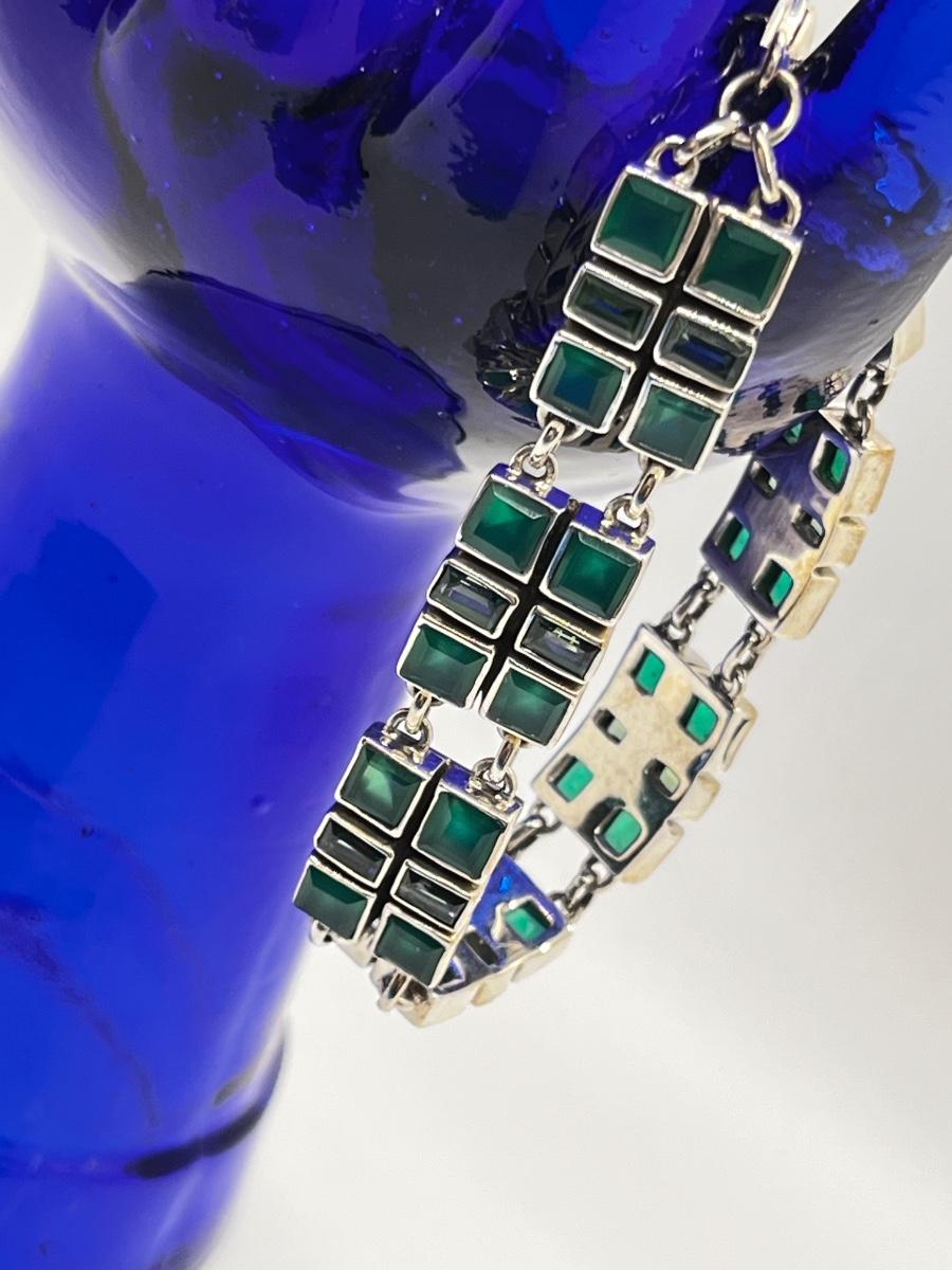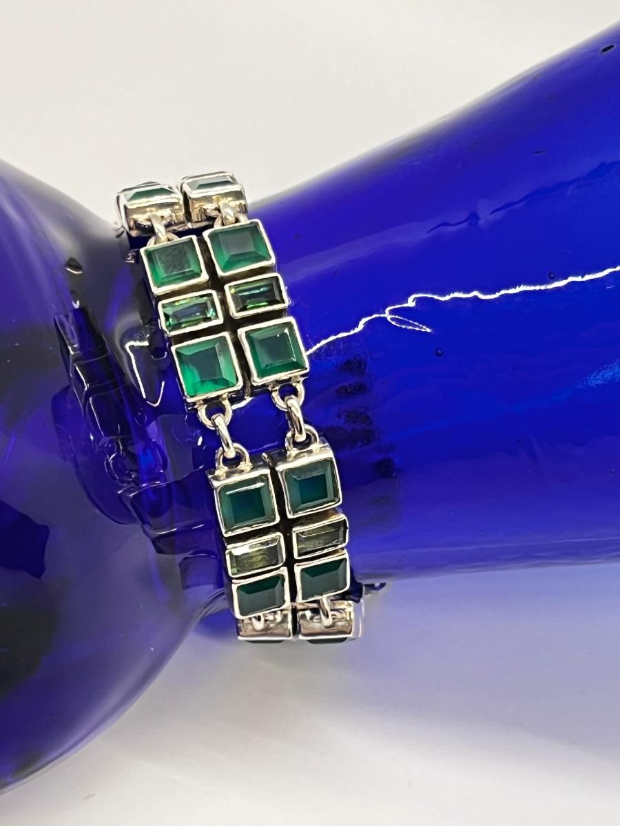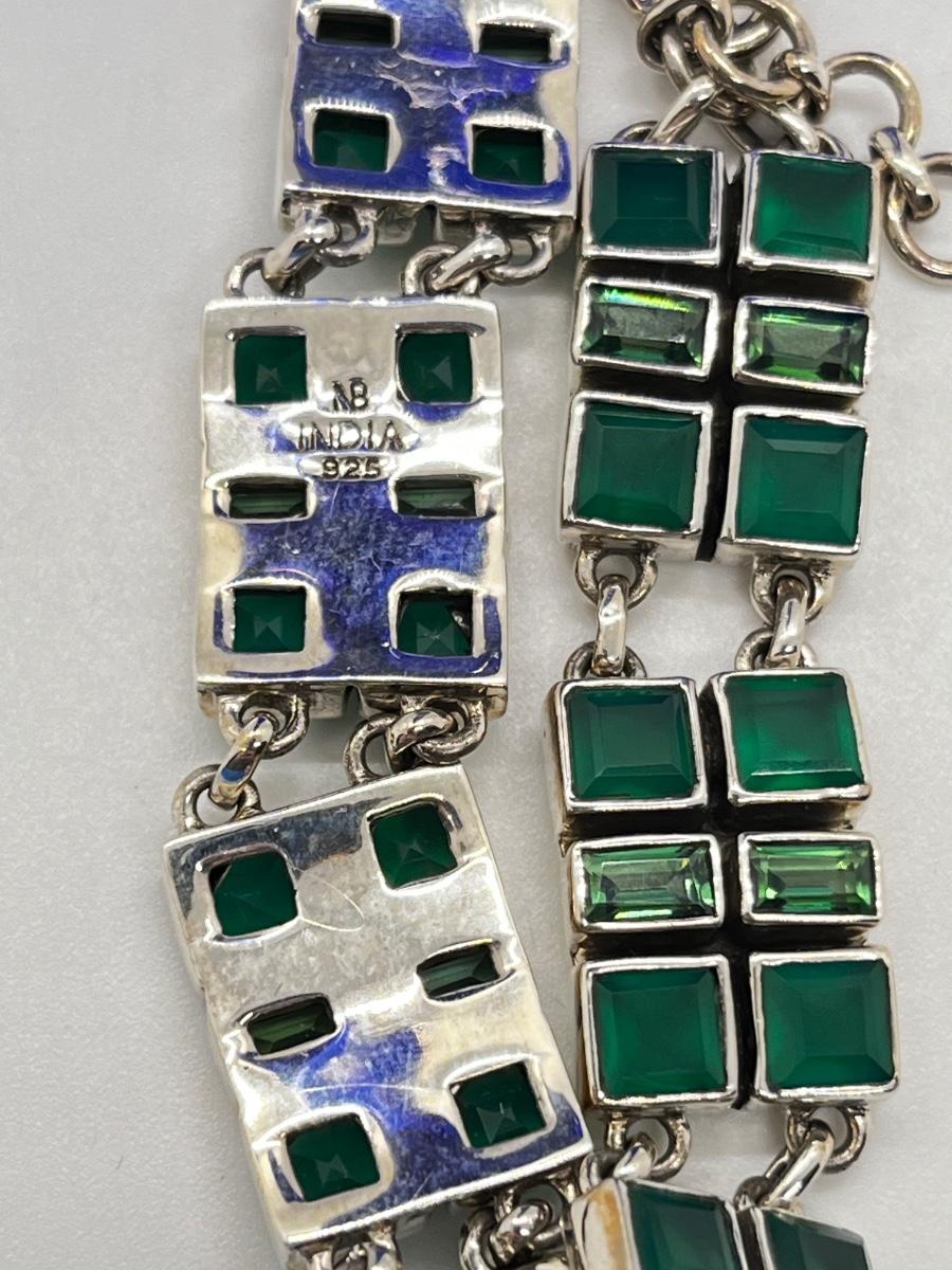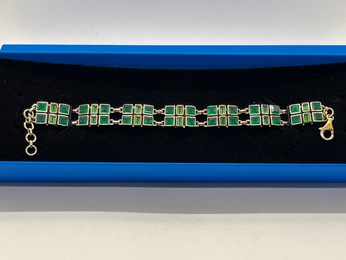 LOT 107J: NEW! Stunning Sterling Silver 925 Nicky Butler Green Gemstone Link Bracelet - Adjusts 7-8”