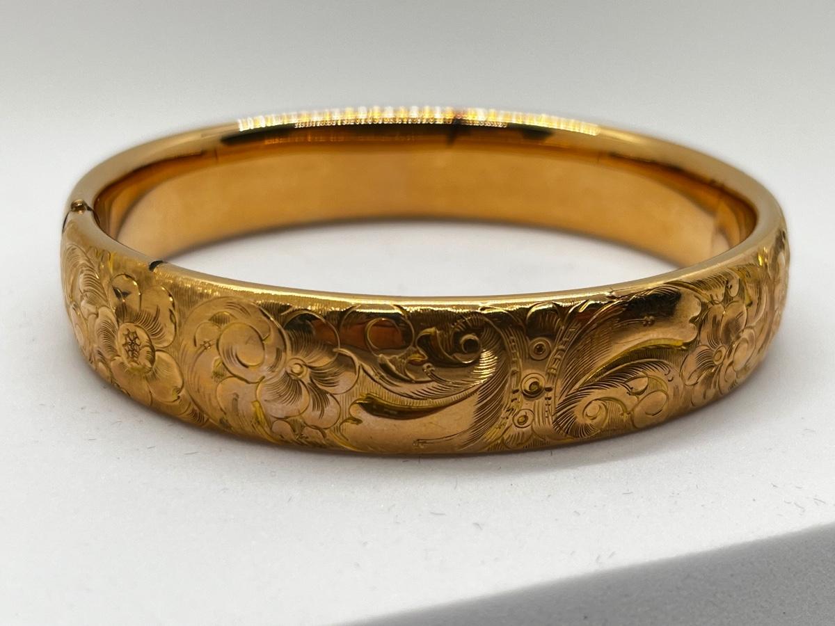 LOT 108J: Vintage Bangle Bracelet - Sterling Silver Gold Vermeil