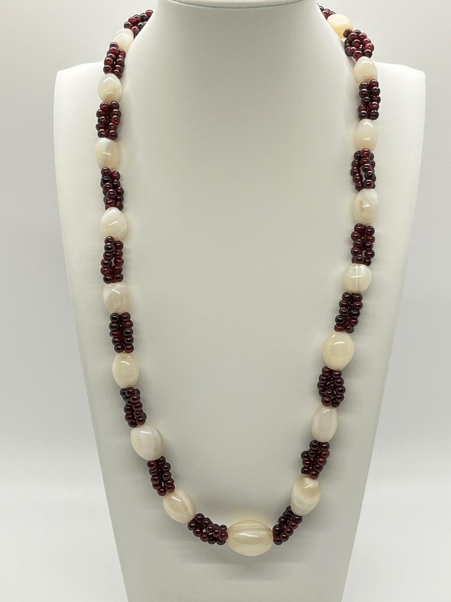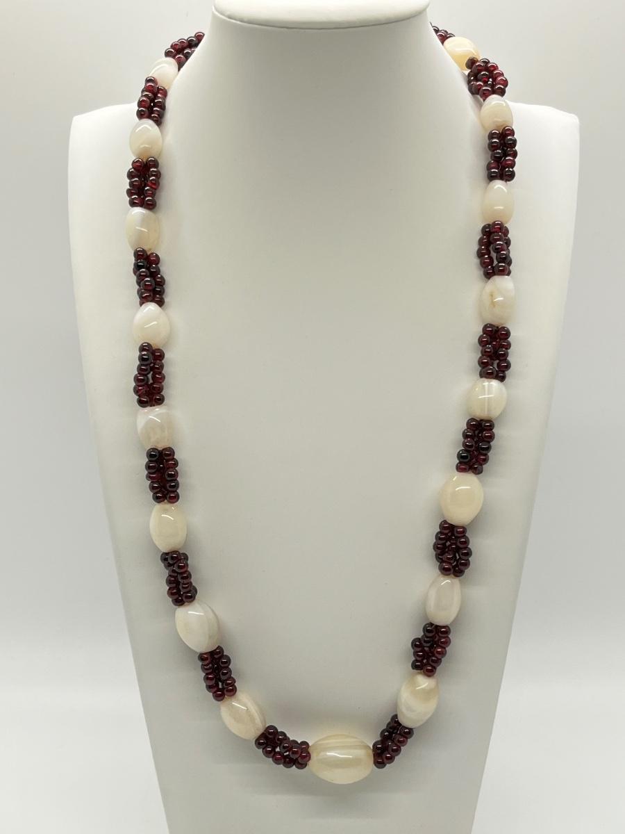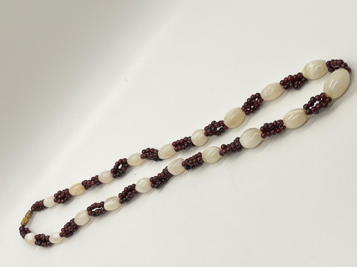 LOT 110J: Vintage Garnet & White Agate Gemstone Necklace - 24”