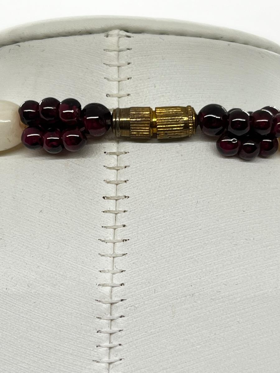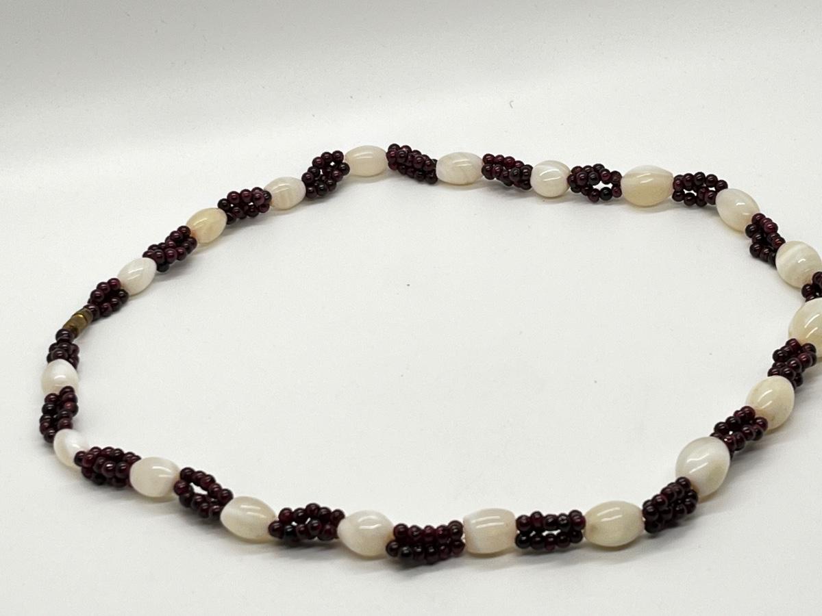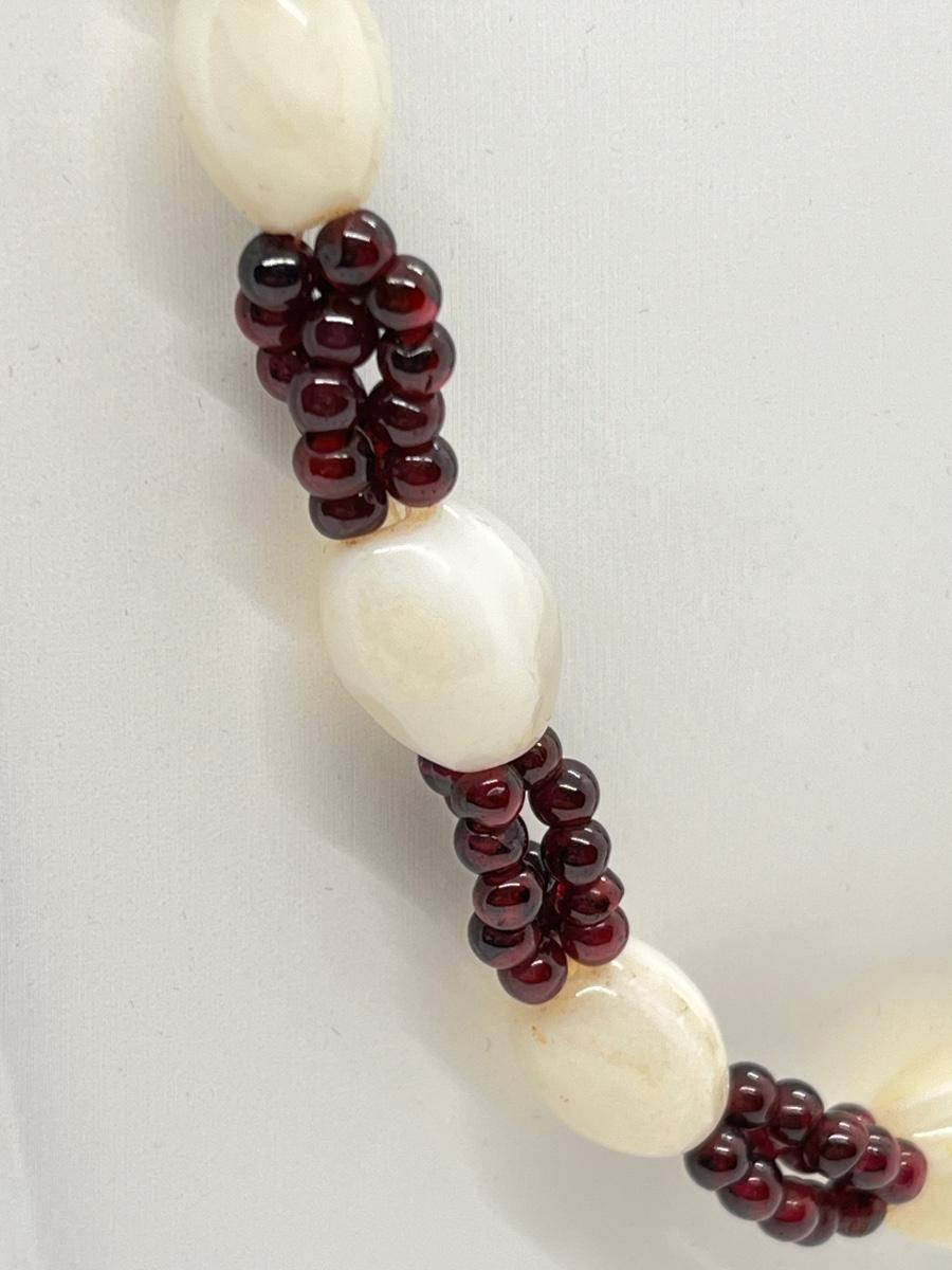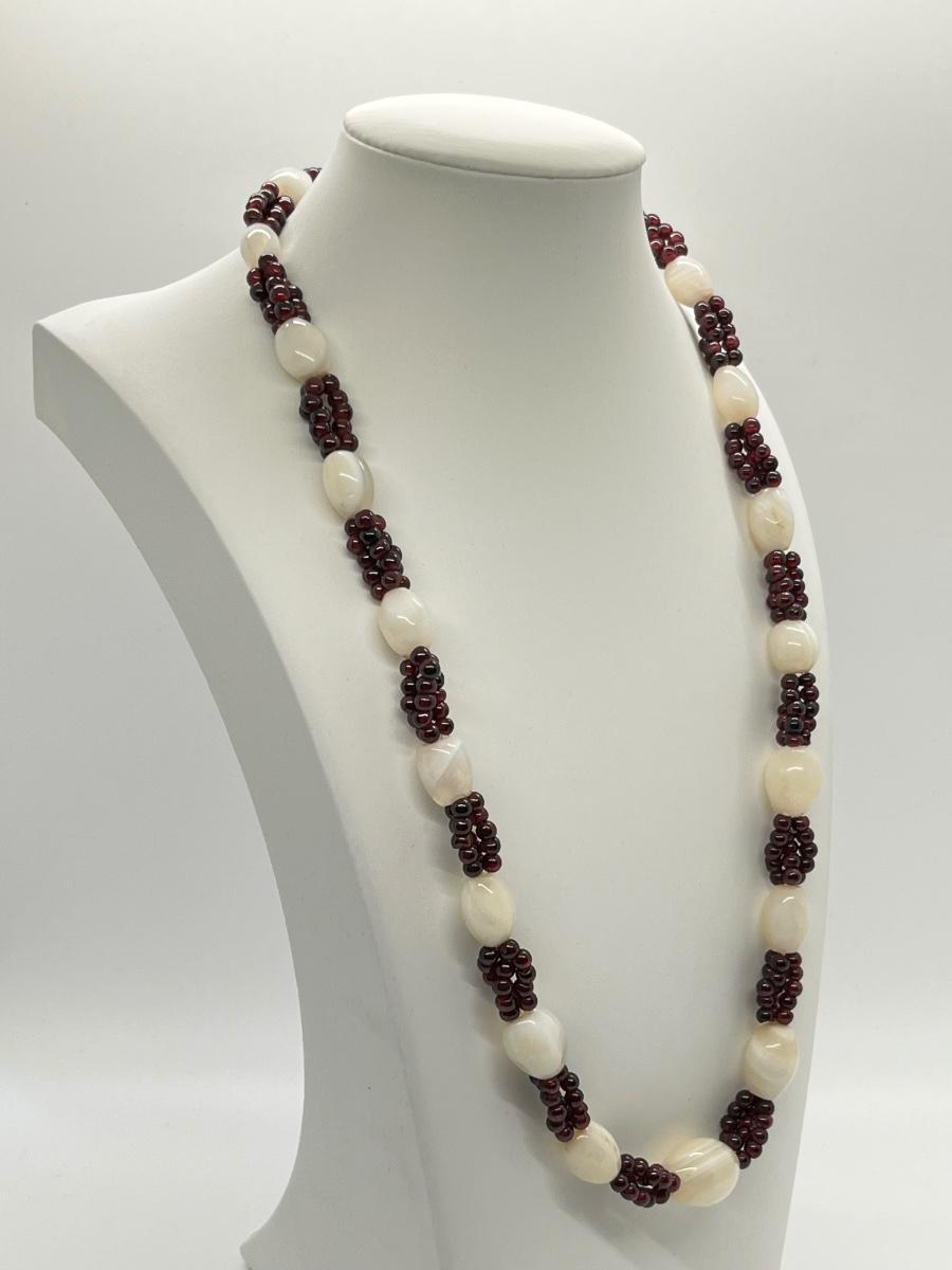 LOT 110J: Vintage Garnet & White Agate Gemstone Necklace - 24”