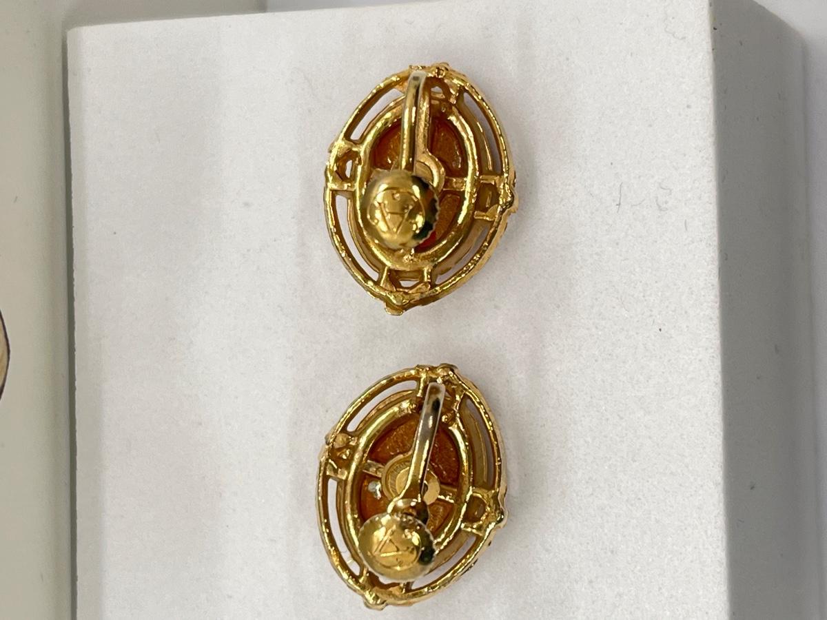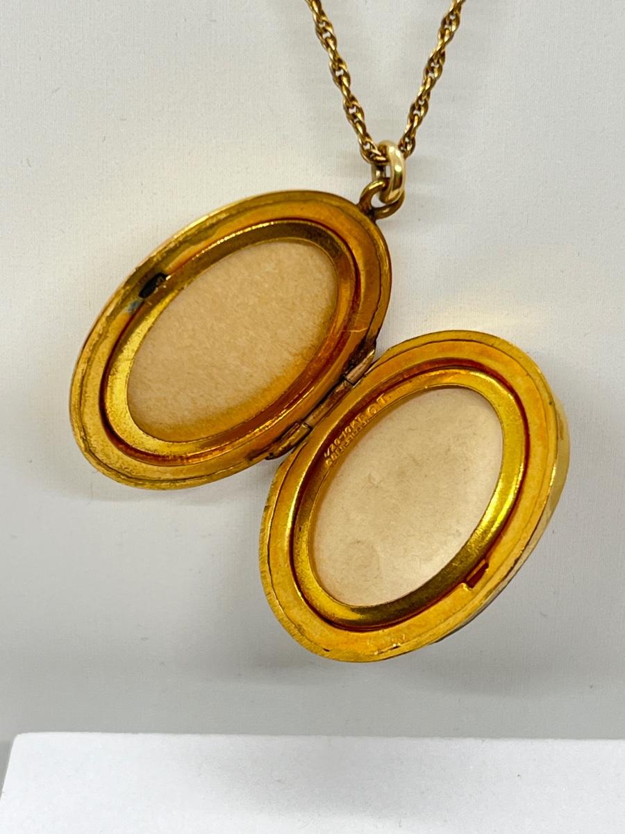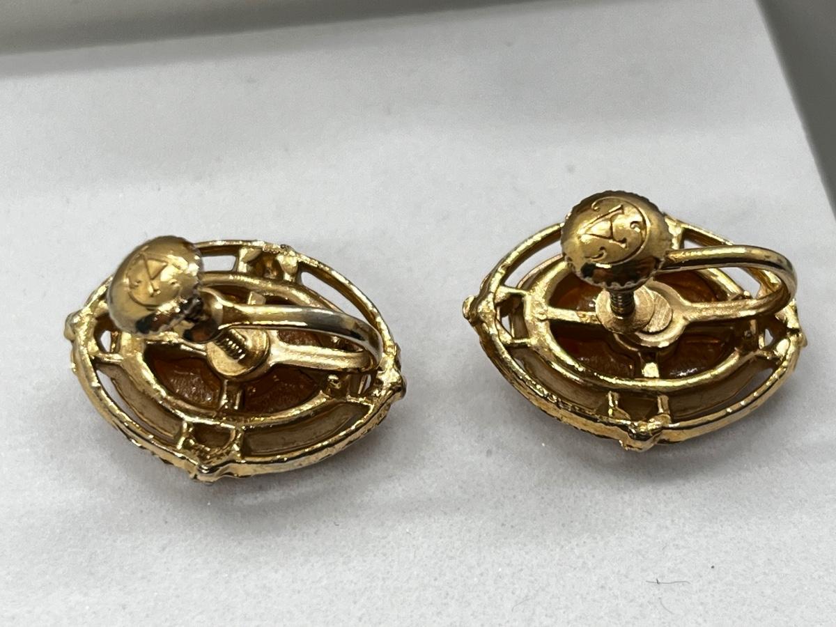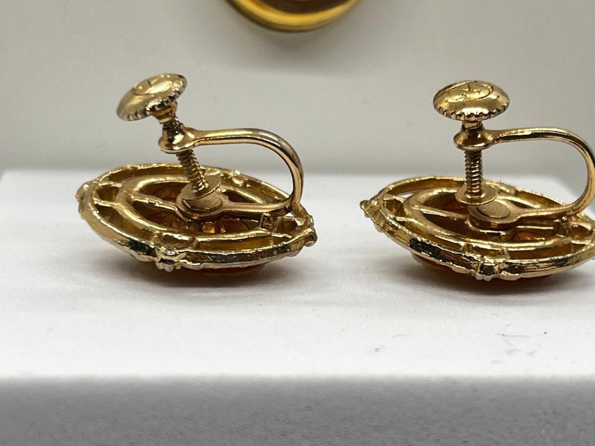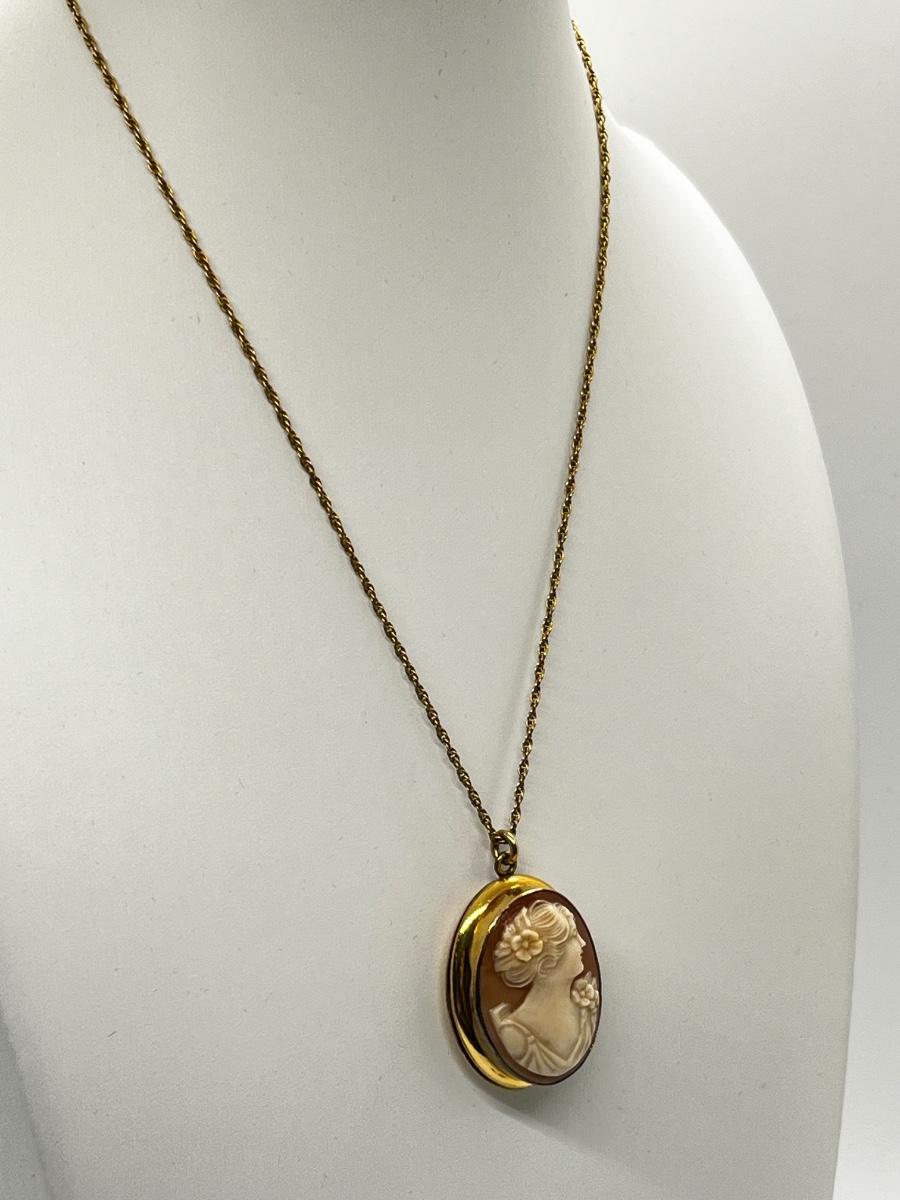 LOT 112J: 1/20 10K Gold Filled Vintage Cameo Locket w/ Costume Screwback Earrings