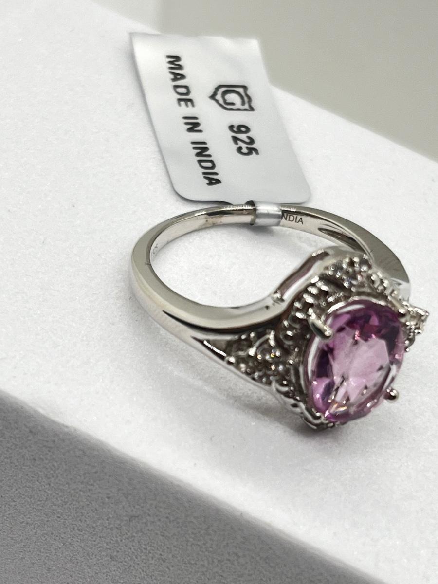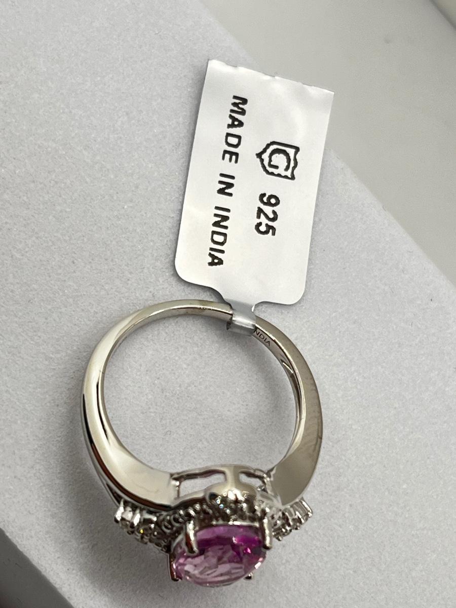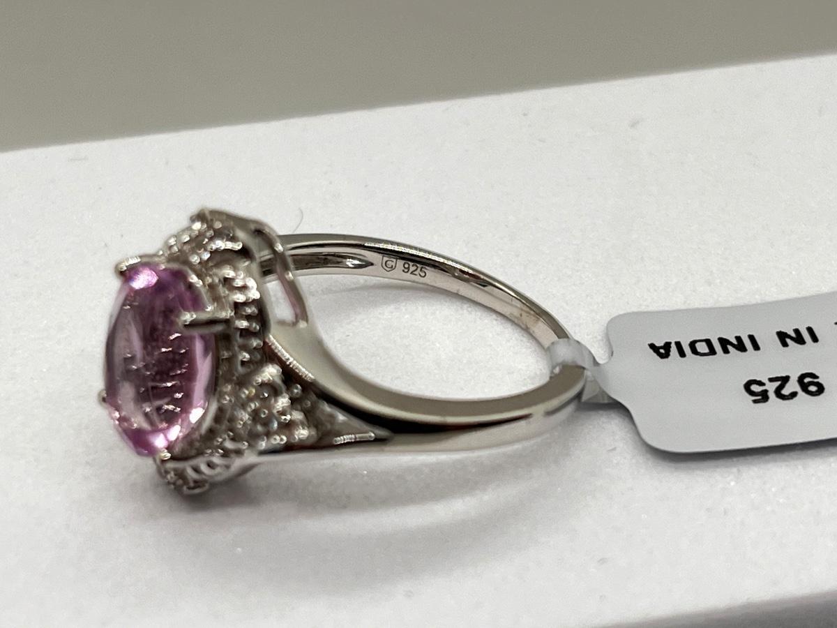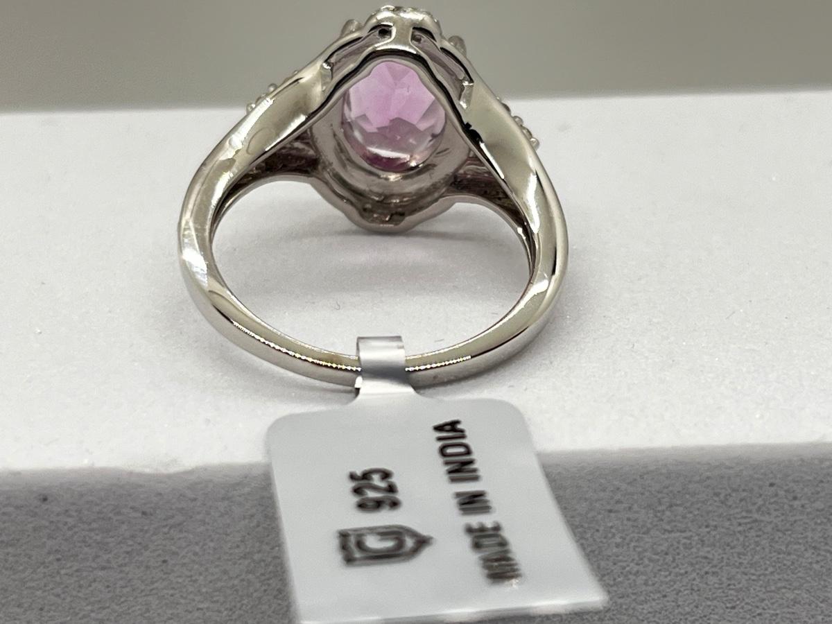 LOT 114J: NEW! Gemporia Platinum Plated Sterling Silver Pink Fluorite Jewelry Set - Size 8 Ring and Pendant on Adjustable-Length Chain