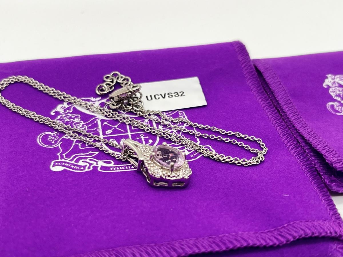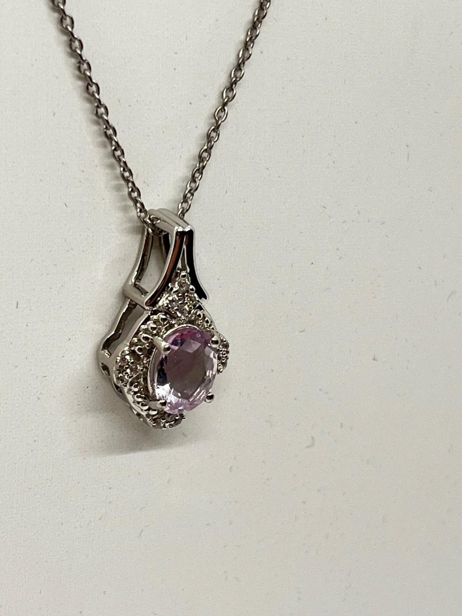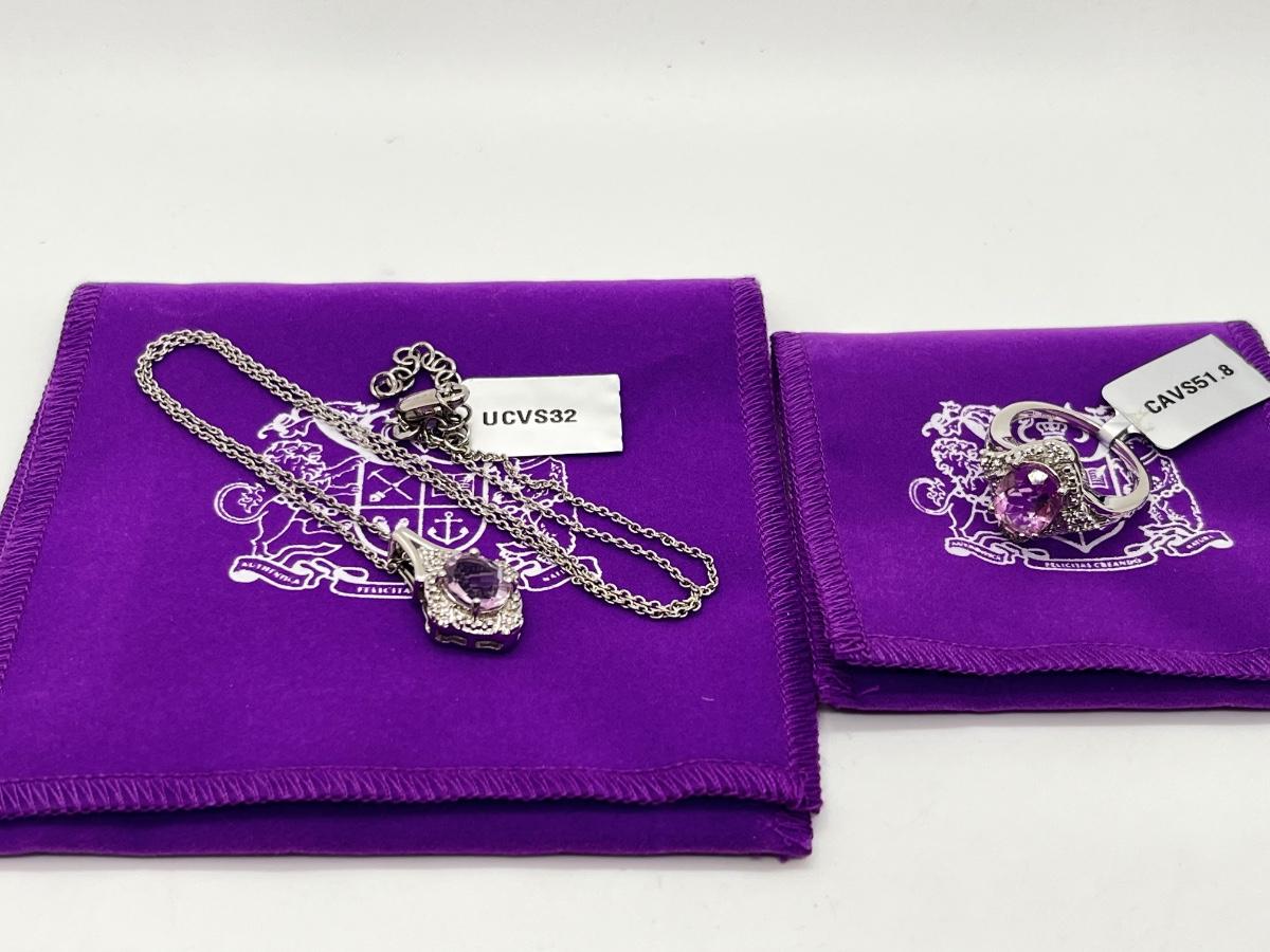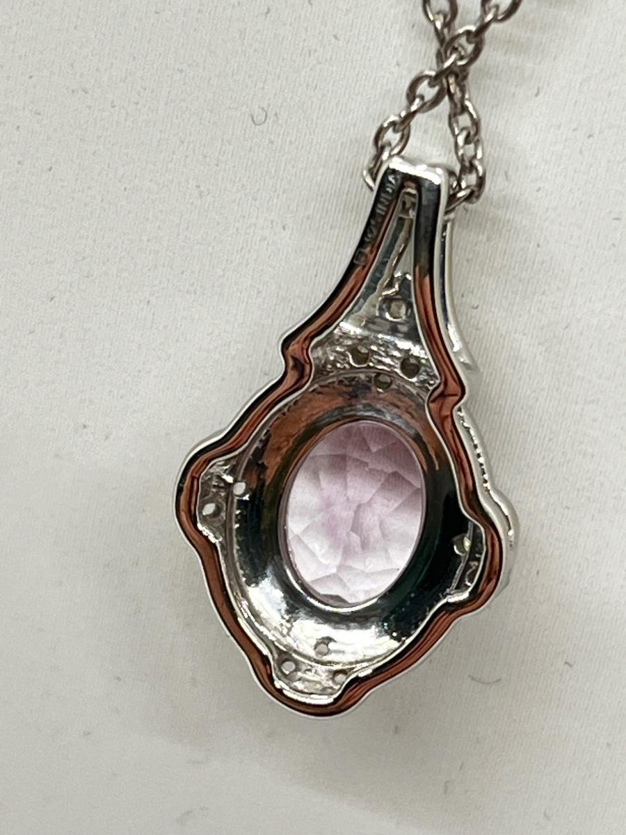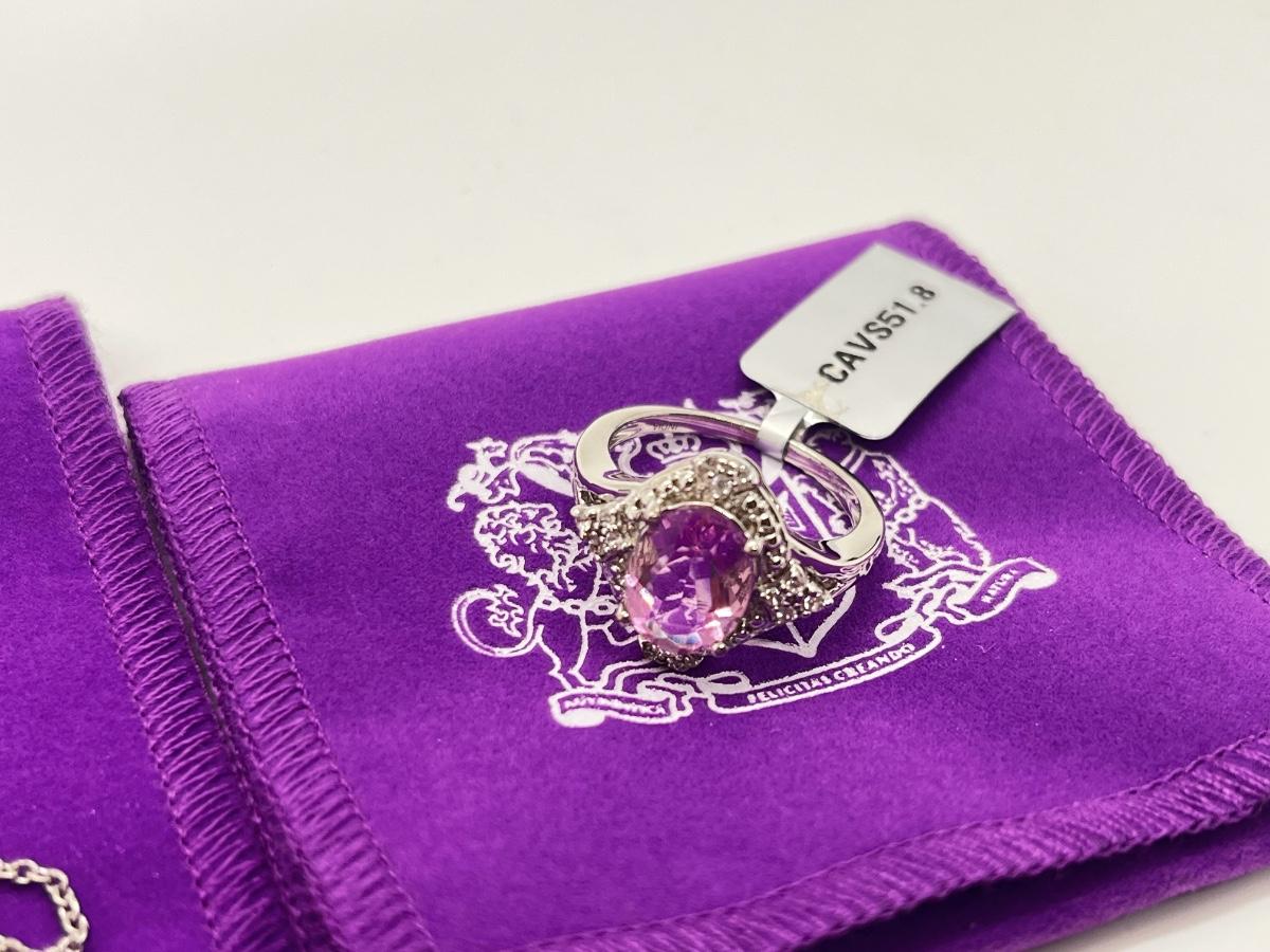 LOT 114J: NEW! Gemporia Platinum Plated Sterling Silver Pink Fluorite Jewelry Set - Size 8 Ring and Pendant on Adjustable-Length Chain