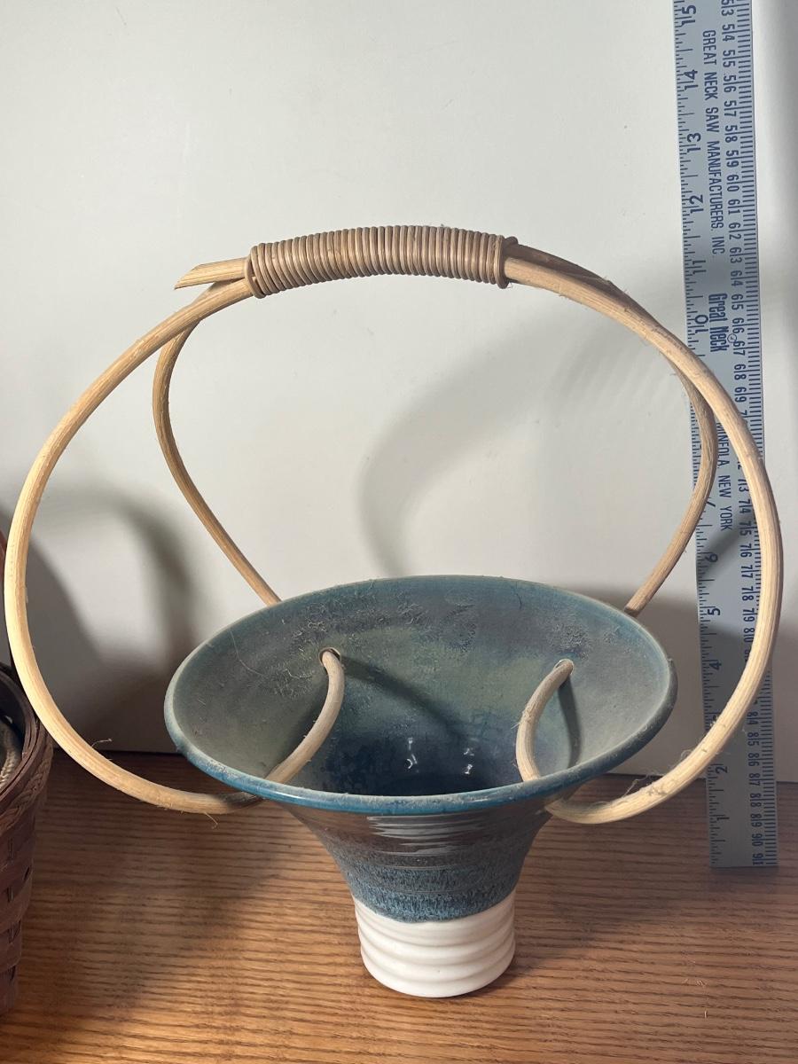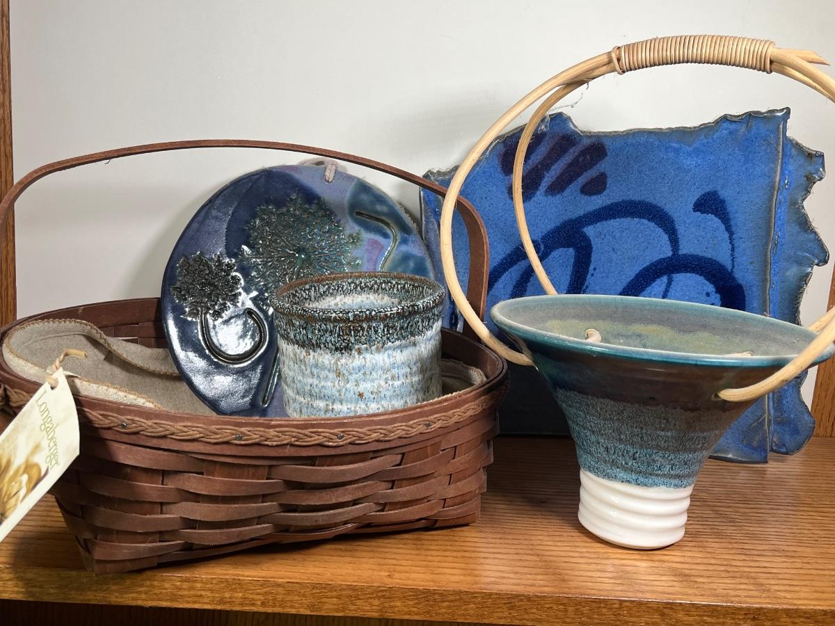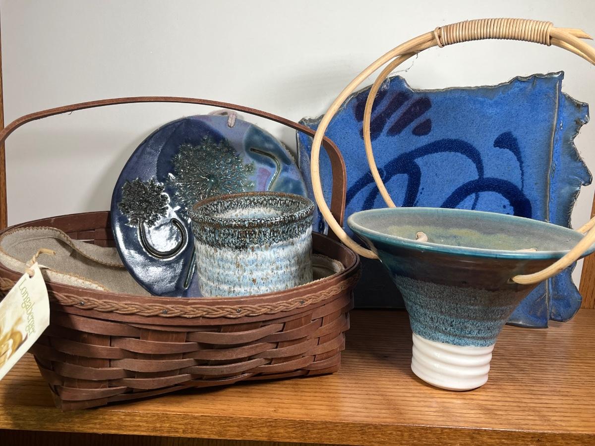 LOT 123: Home Decor Collection, Signed, Hand-Made Pottery Pieces, Longaberger Basket and More