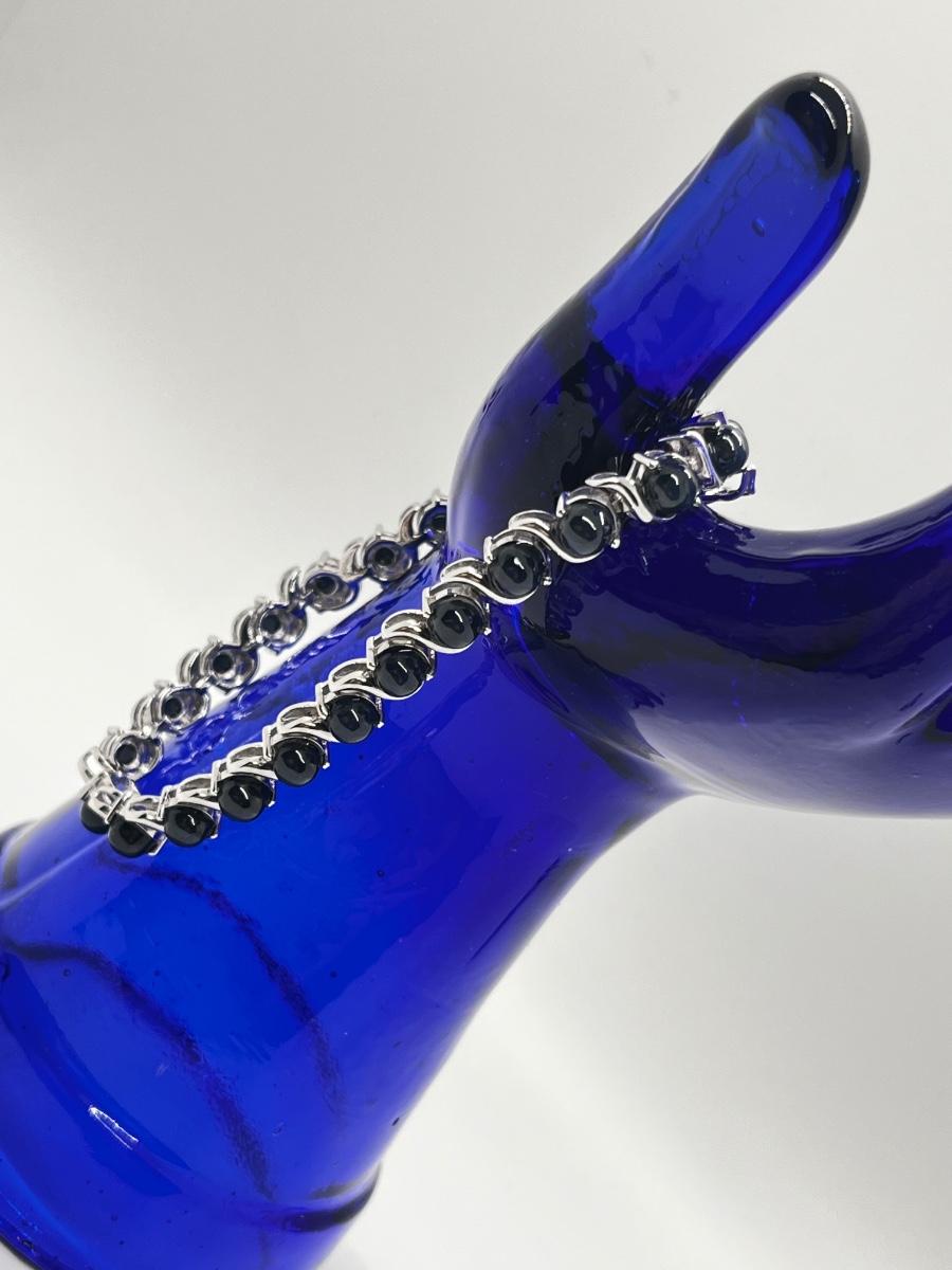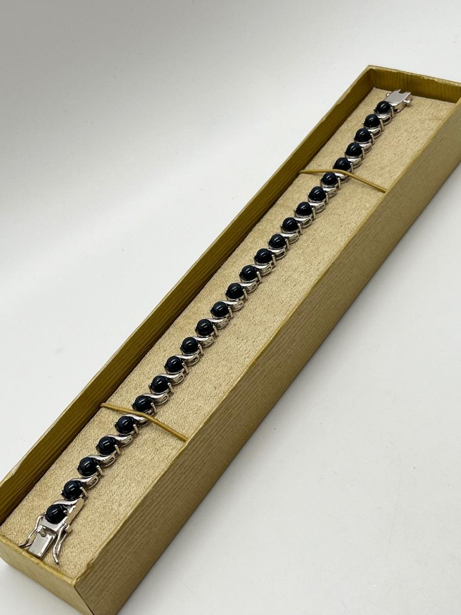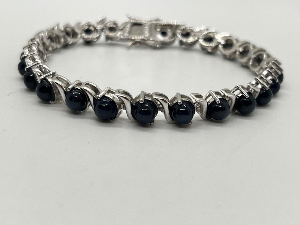 LOT 130J: Sterling Silver Blue Star Sapphire Tennis Bracelet - 8" - 23 gtw