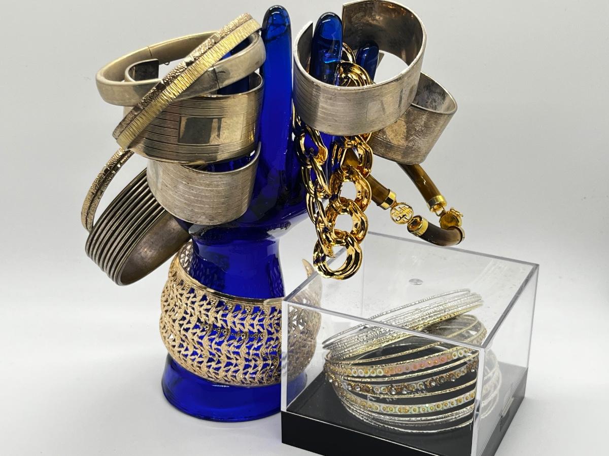 LOT 134J: Various Costume Bangle & Cuff Bracelets Curved tigers eye and more!
