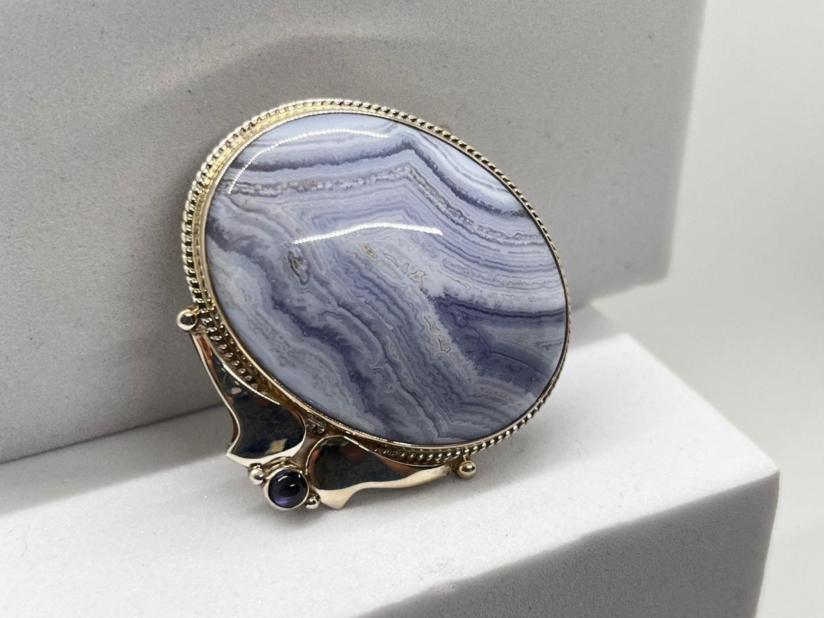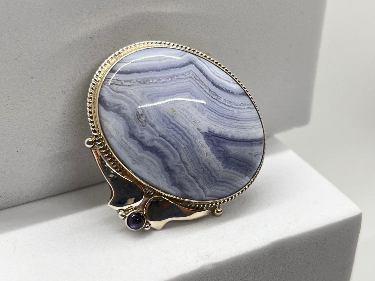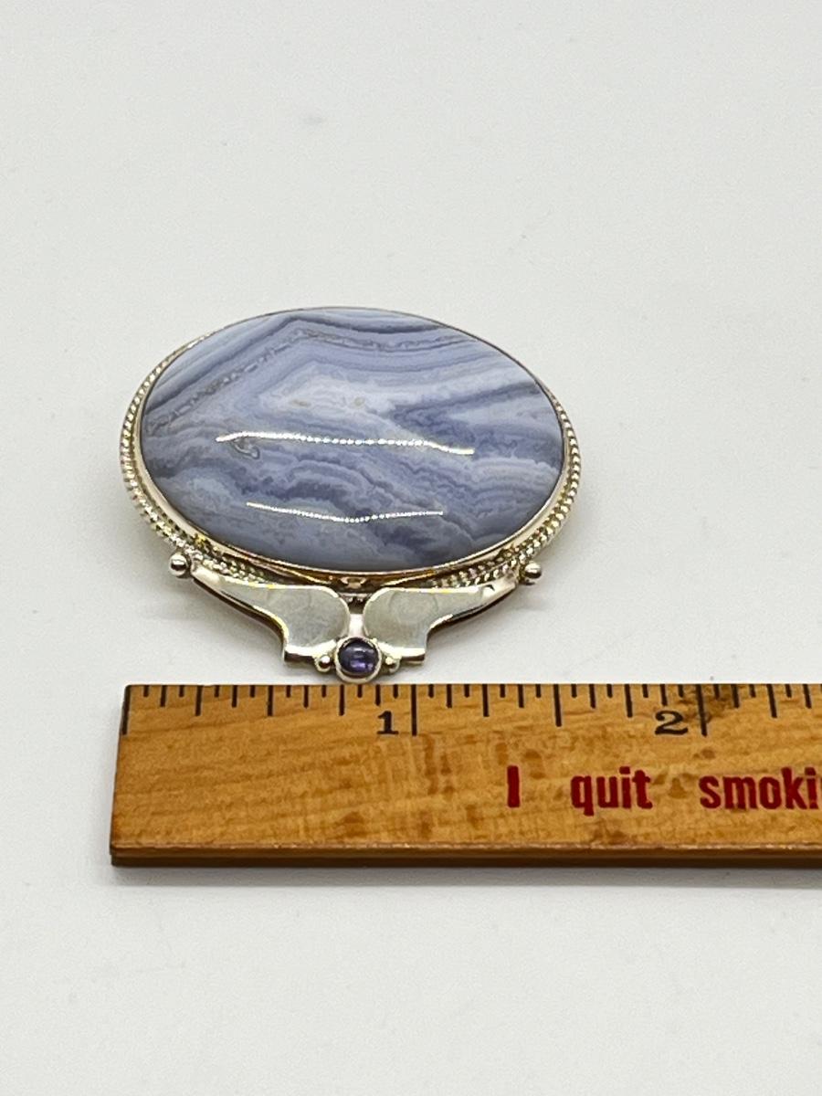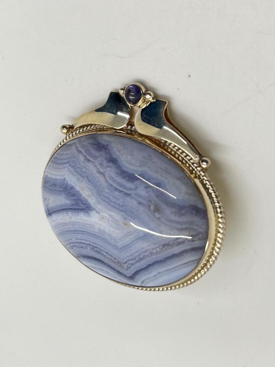 LOT 138J: J. Hemmel Sterling Blue Lace Agate Pendant/Brooch - 23.7 g