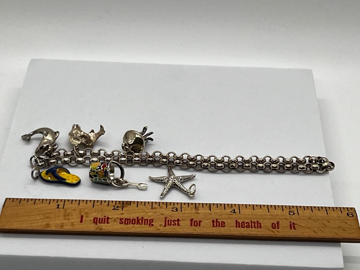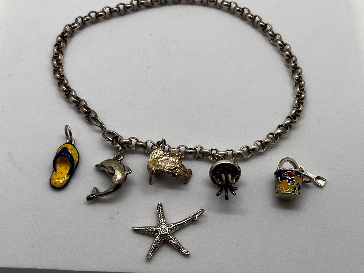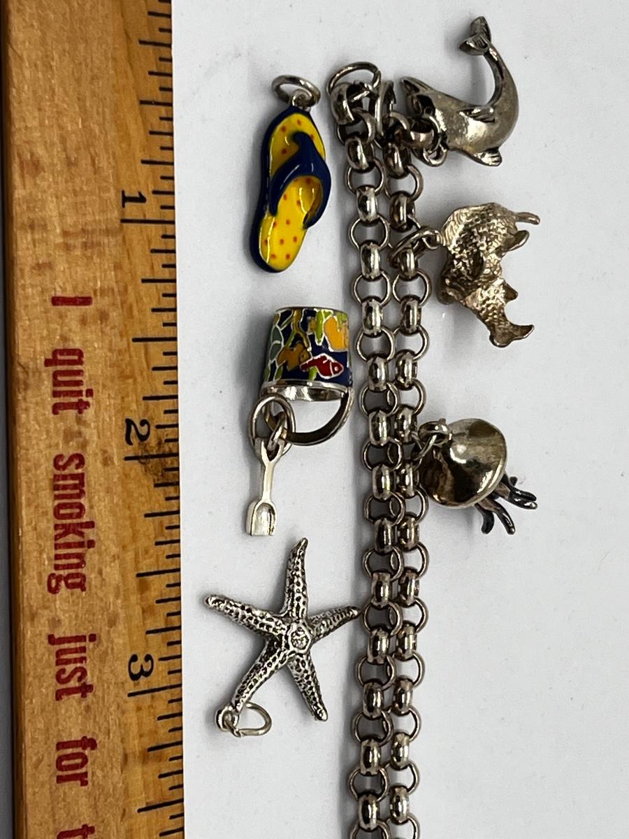 LOT 141J: Beach Themed Sterling Silver 925 Charm Bracelet - 35.6 g