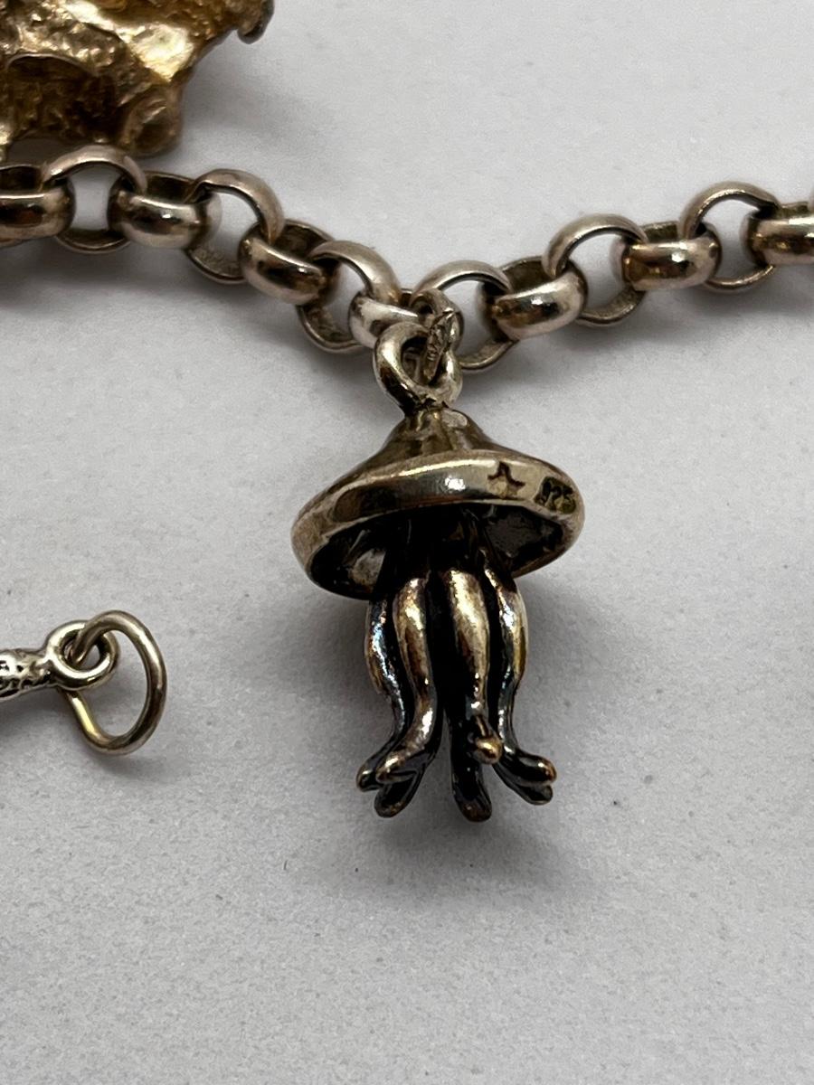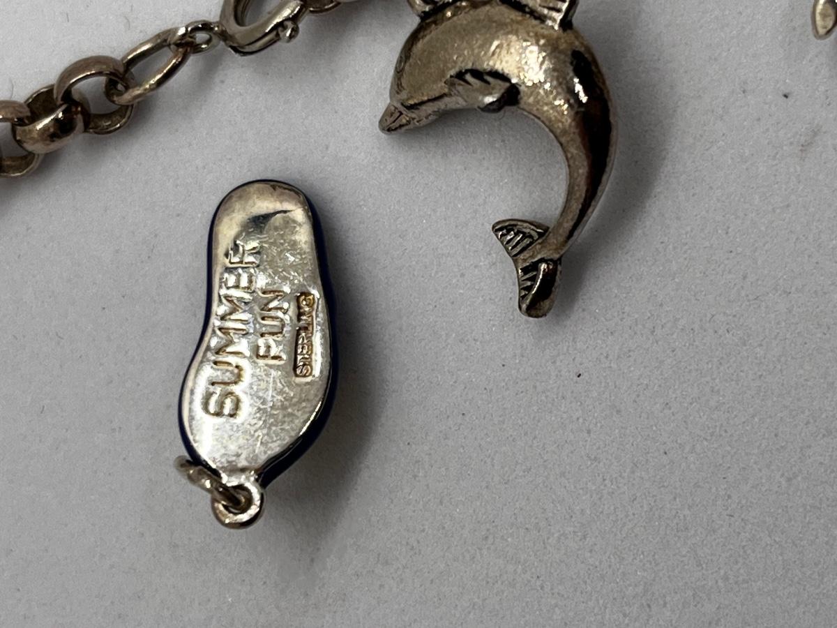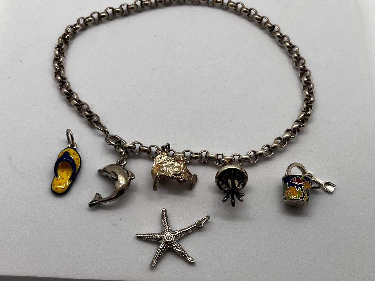 LOT 141J: Beach Themed Sterling Silver 925 Charm Bracelet - 35.6 g