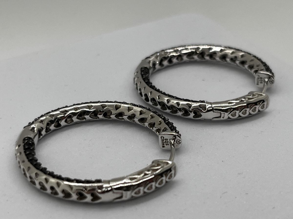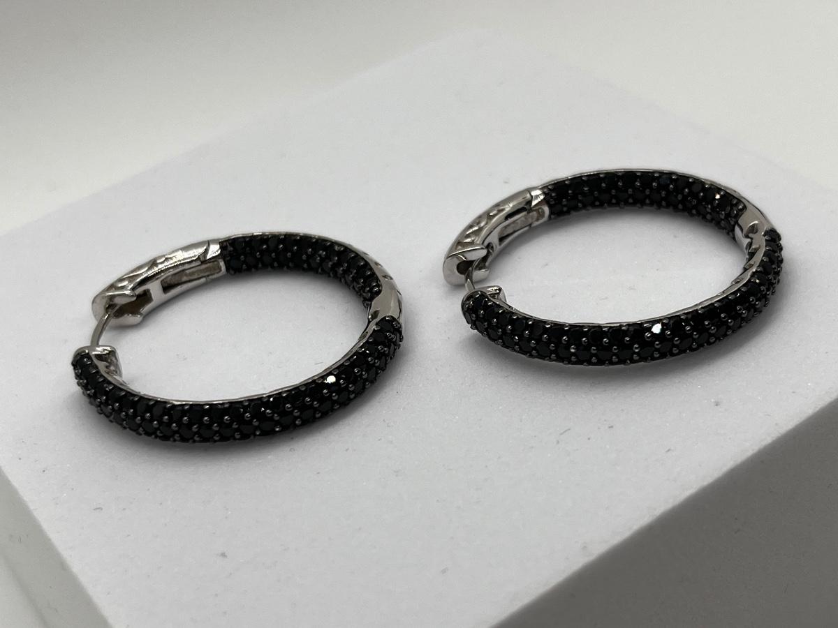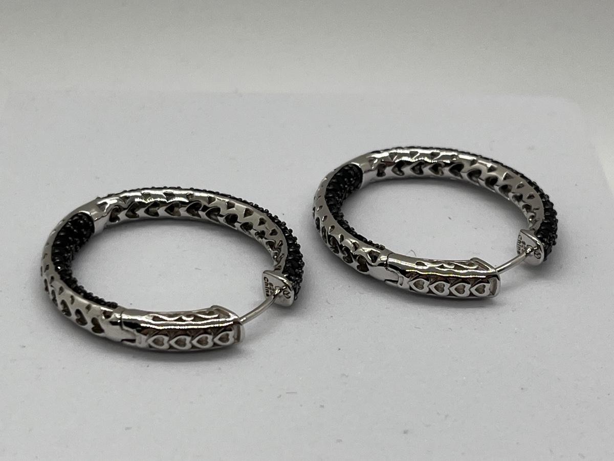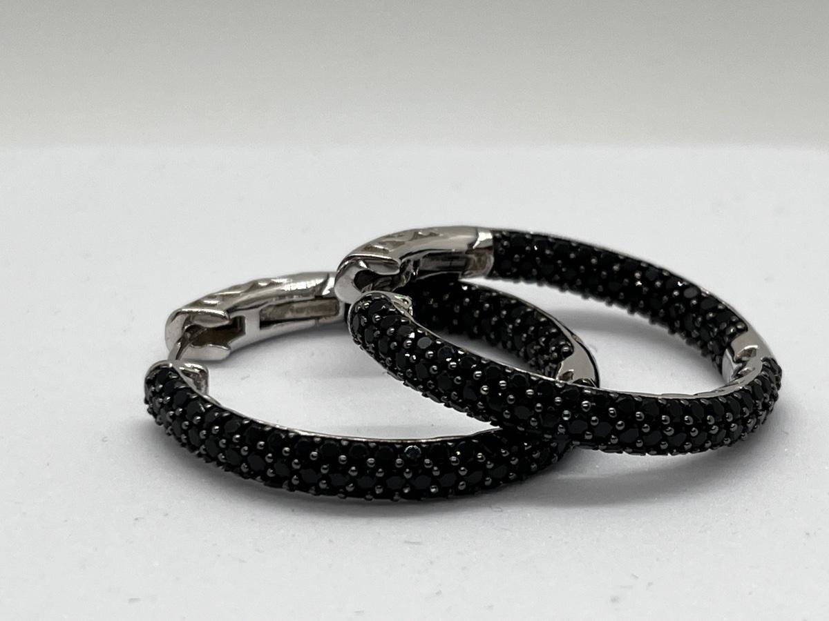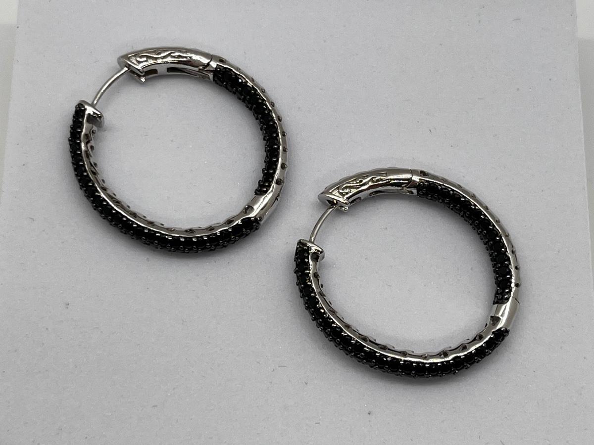 LOT 149J: Sterling Silver and Black Spinel Hoop Earrings