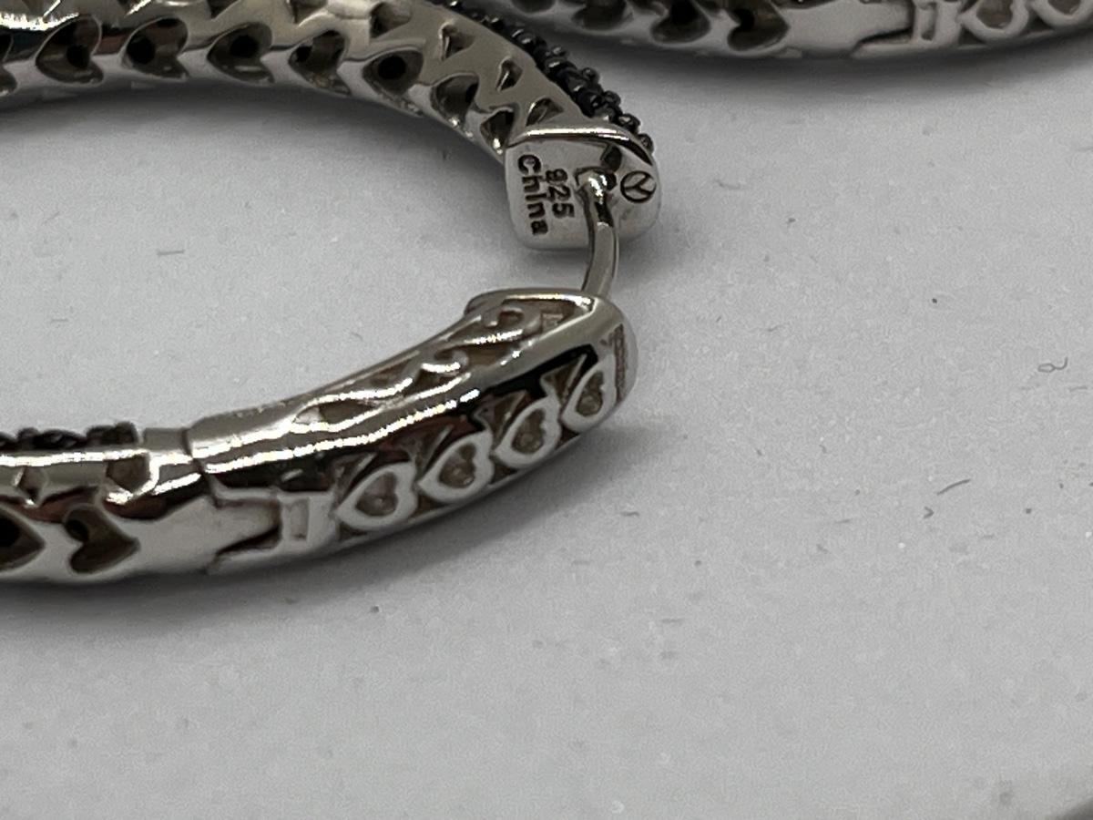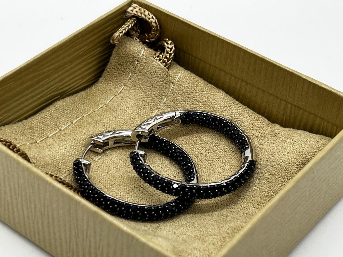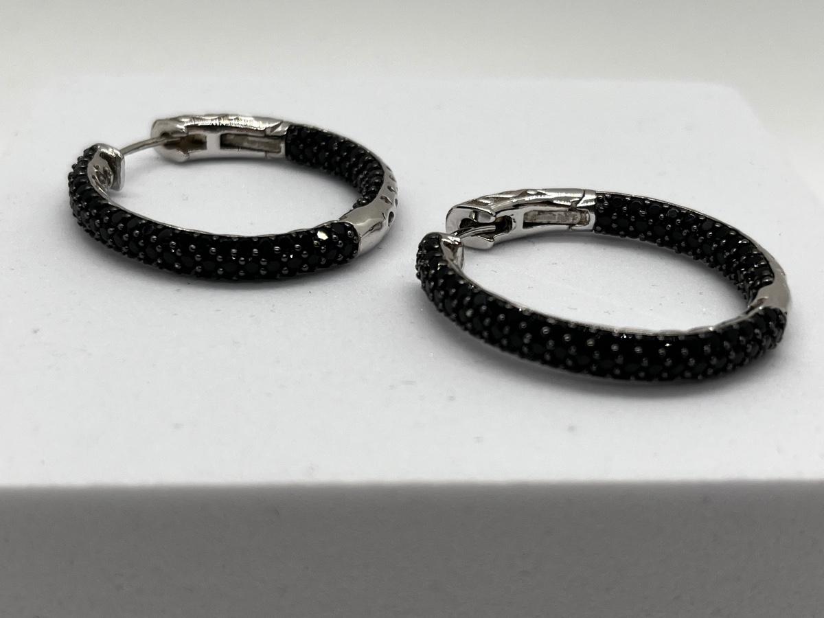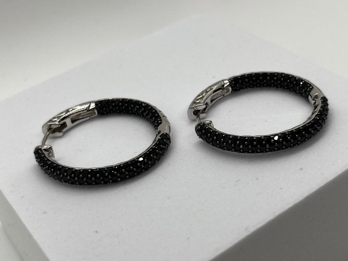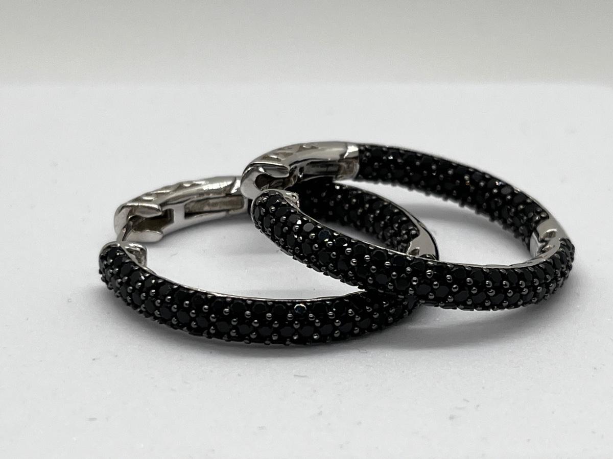 LOT 149J: Sterling Silver and Black Spinel Hoop Earrings
