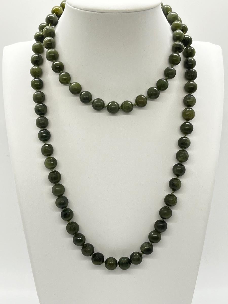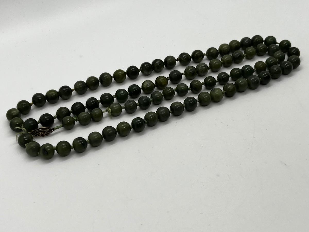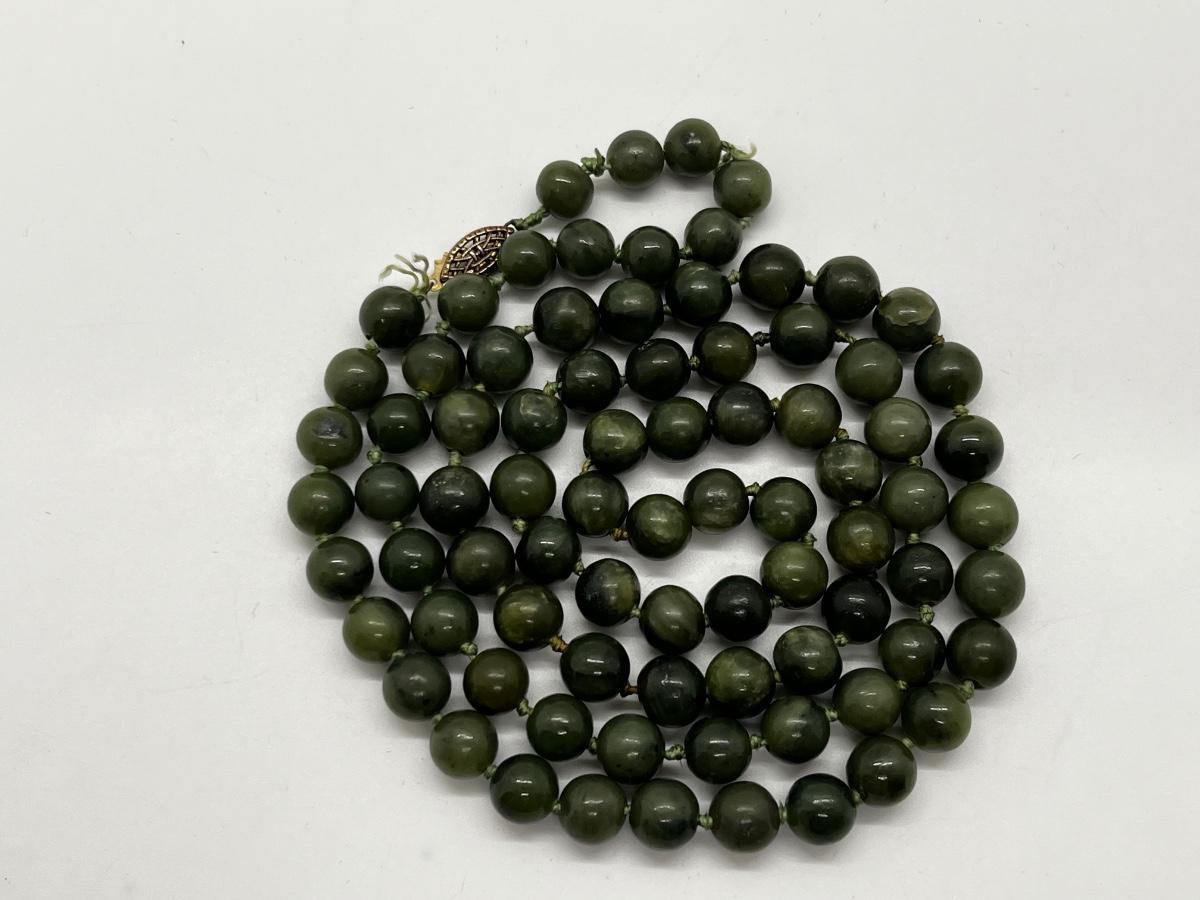 LOT 150J: Vintage 30" Nephrite Jade Beaded Necklace