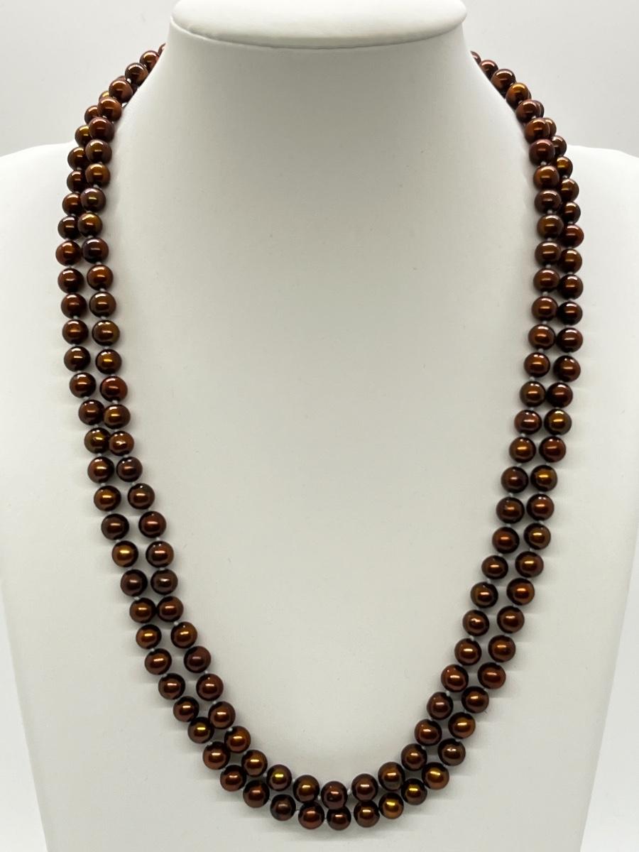 LOT 152J: Double Strand - 20" - Chocolate Freshwater Cultured Pearl Necklace