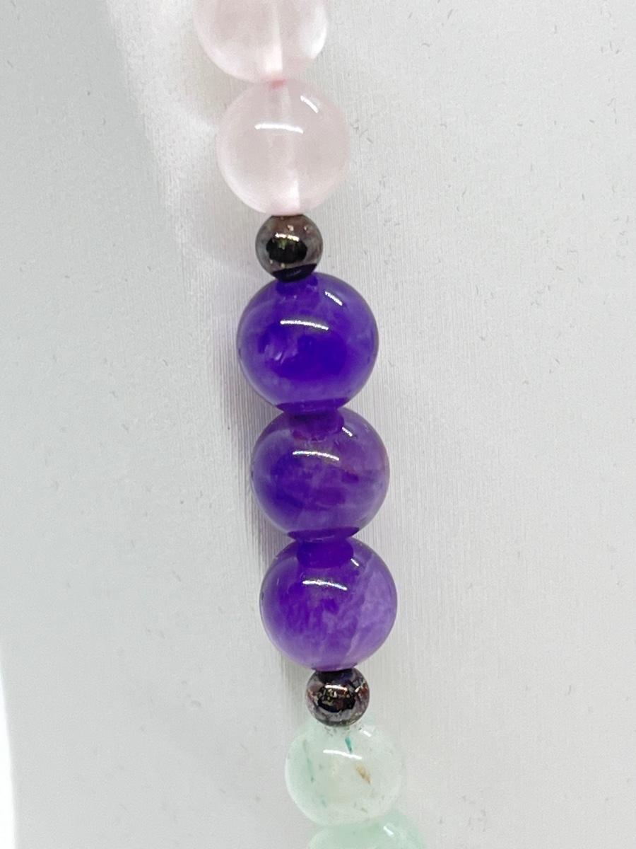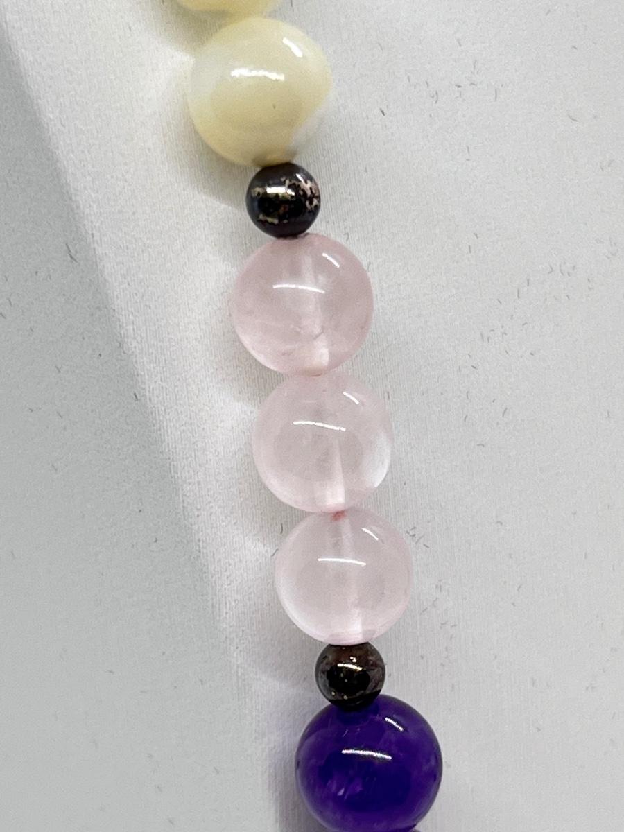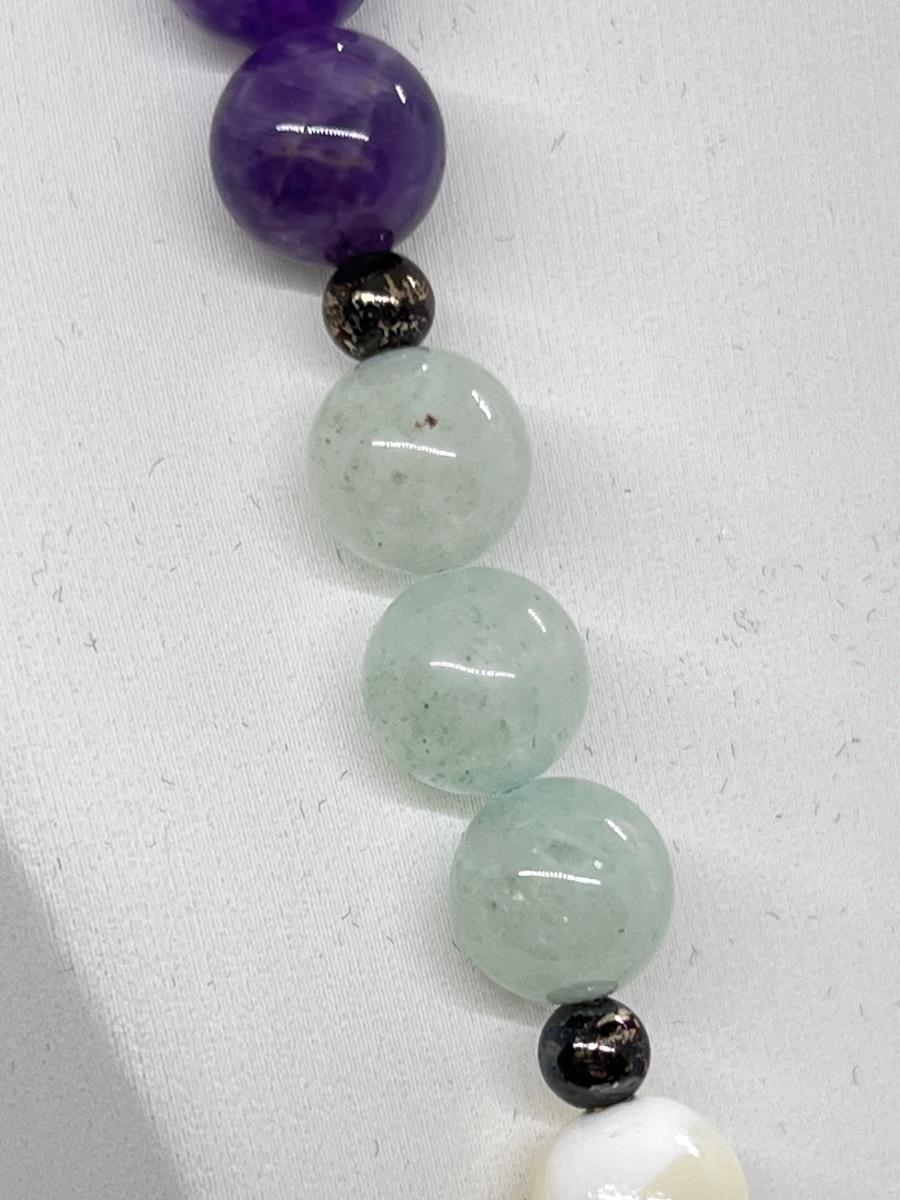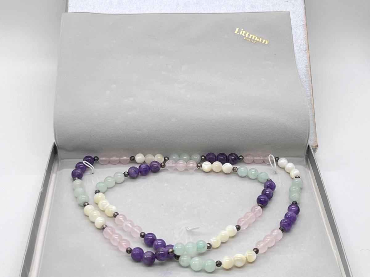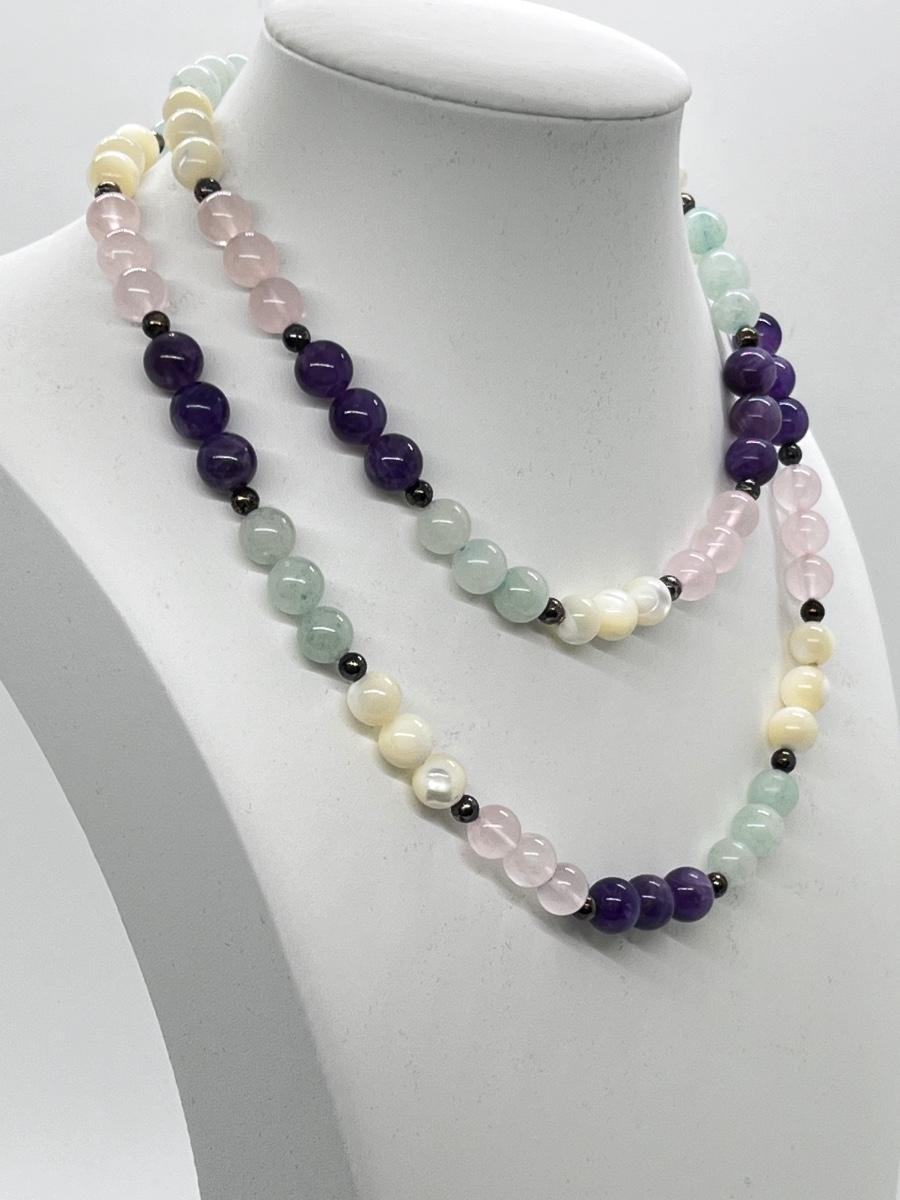 LOT 170J: Pretty Lavender Jade Ring Size 8 + 30" Multi-Gemstone Necklace